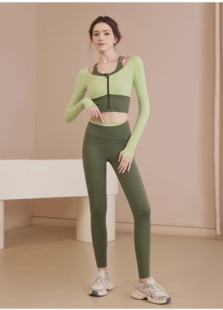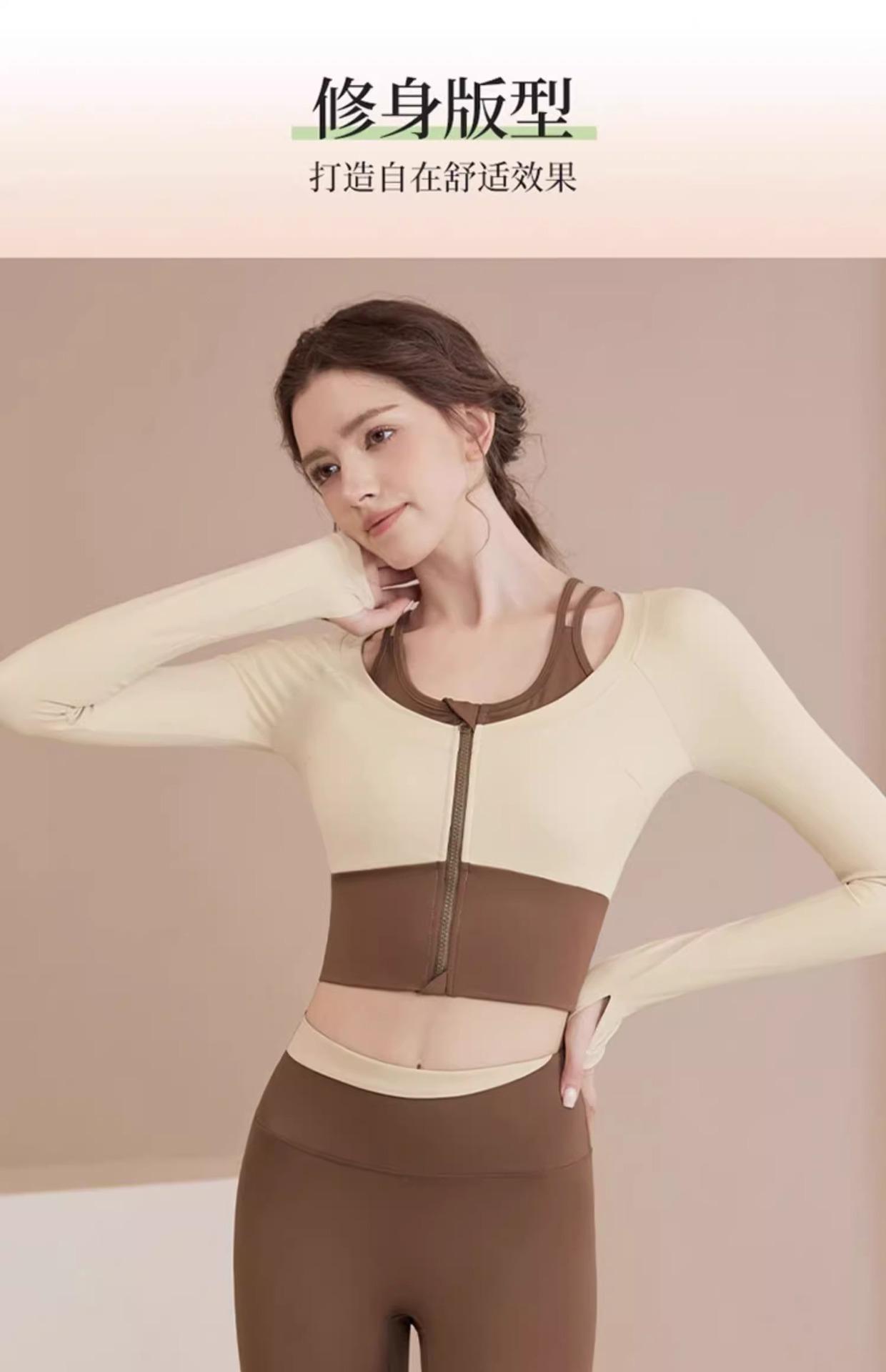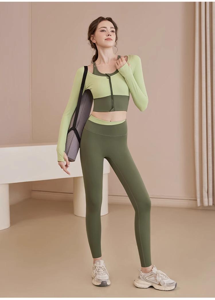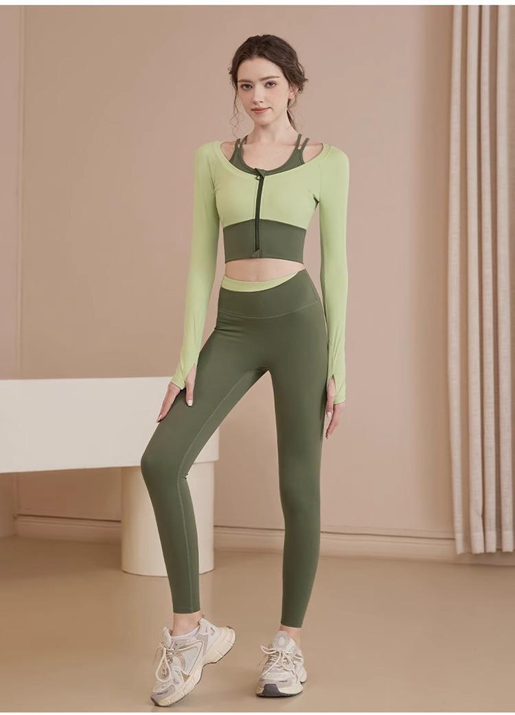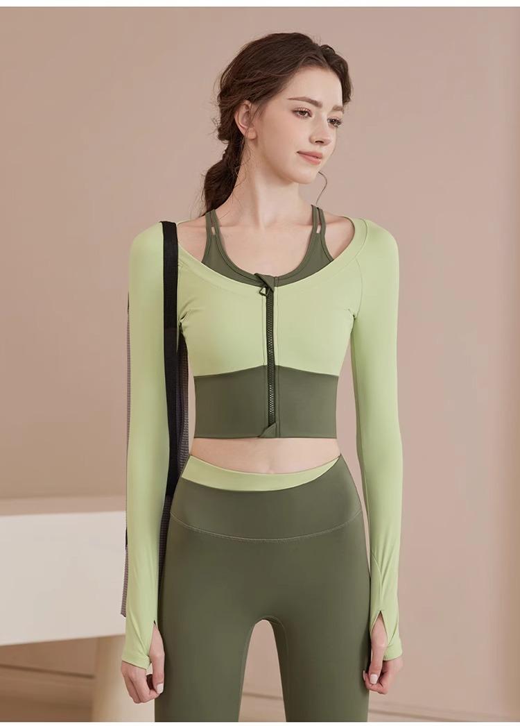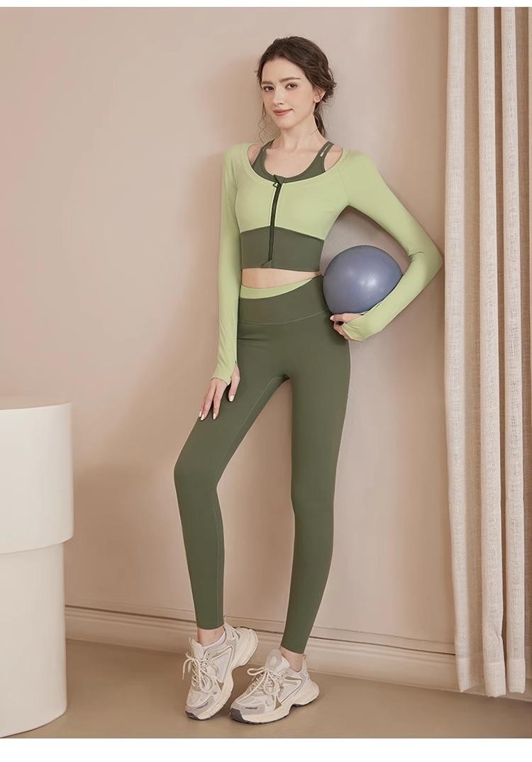 Brown top [fixed cup chest pad], Green top [fixed cup chest pad], Brown sports suit, Green sports suit