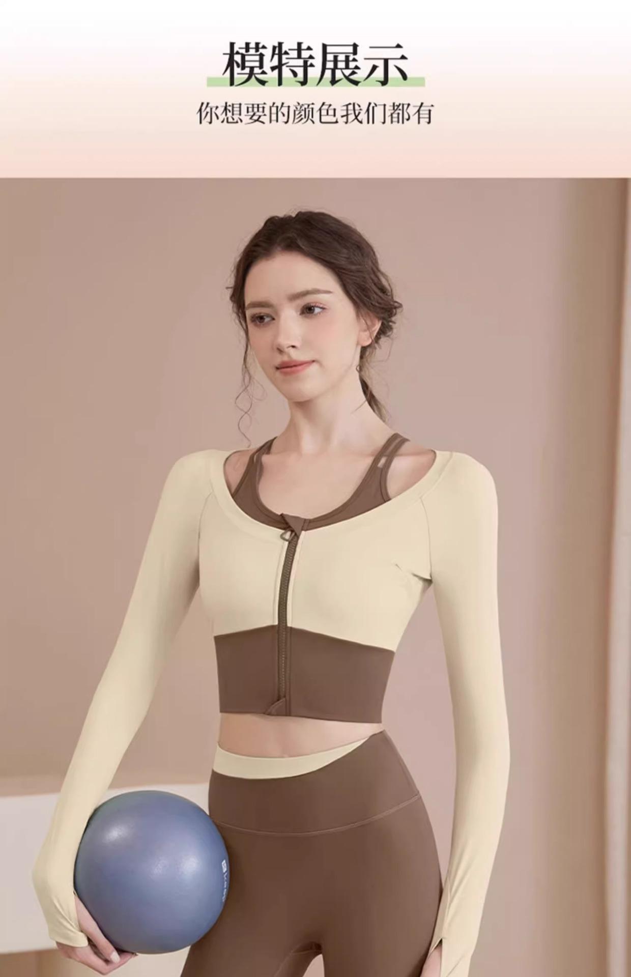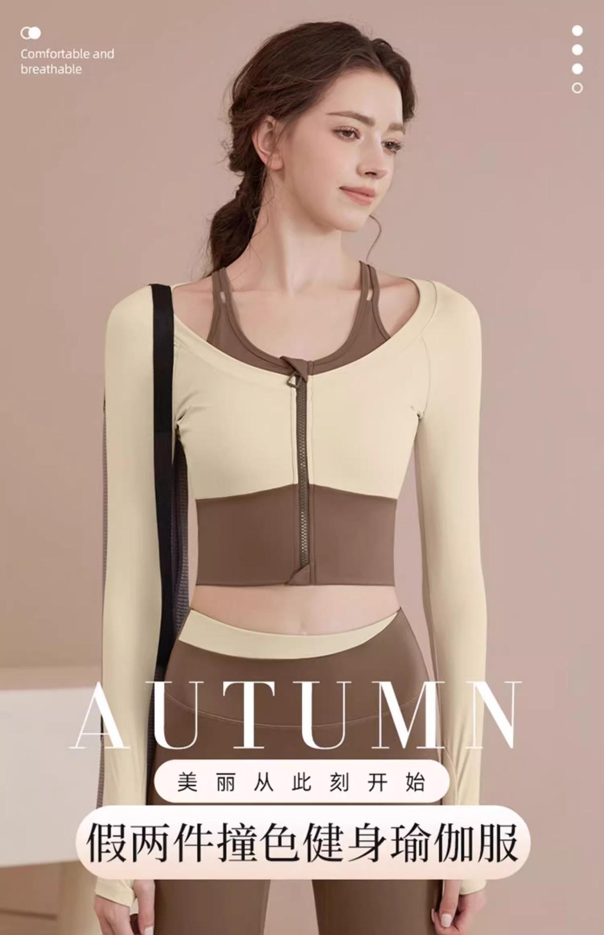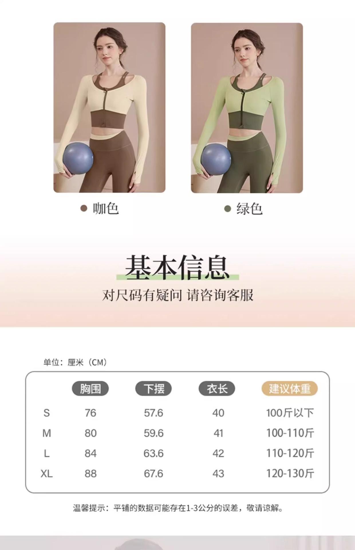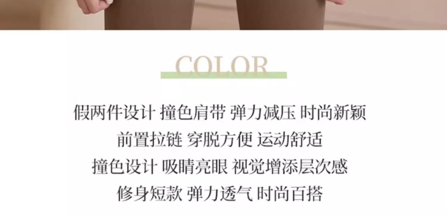 Brown top [fixed cup chest pad], Green top [fixed cup chest pad], Brown sports suit, Green sports suit
