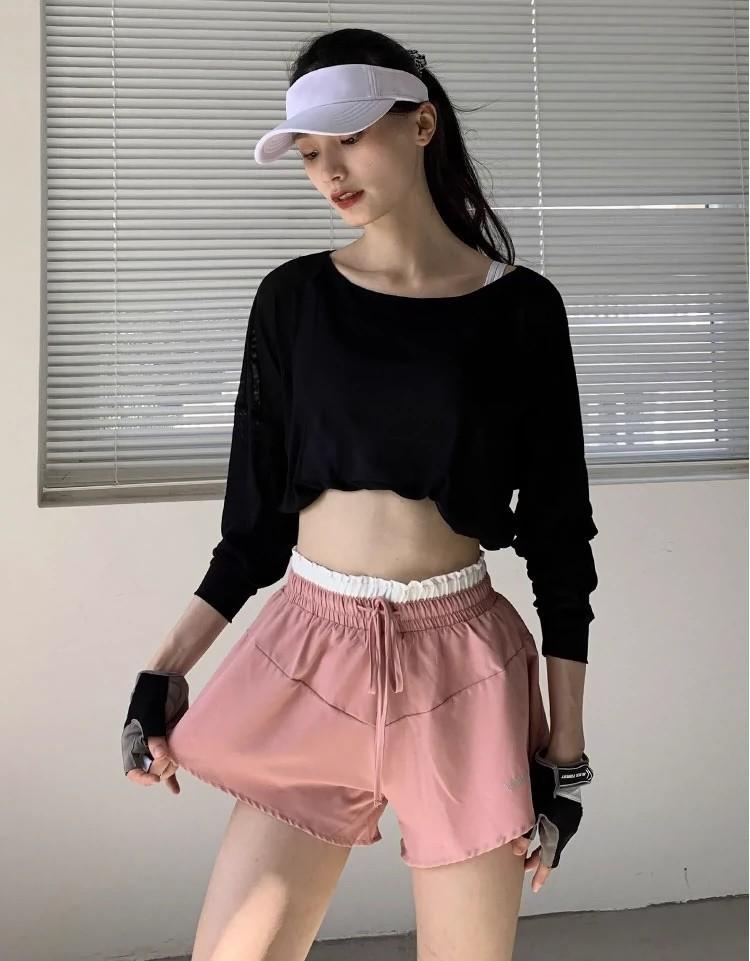 Pantalones cortos deportivos de verano para mujer, holgados, adelgazantes, informales, de yoga, de cintura alta, transpirables, para correr y fitness
