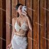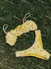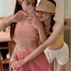 3 Colores] Estilo Coreano Nuevo Color Sólido Patrón Calado Simple Retro Chalecos Estilo Lazo con Cordón Traje de Baño Dividido Mujer