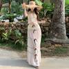 Europeo y Americano Transfronterizo Comercio Exterior Nuevo en stock Talla Grande Sexy Slim Malla Transpirable Vestido Dividido Vestido de Playa