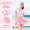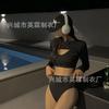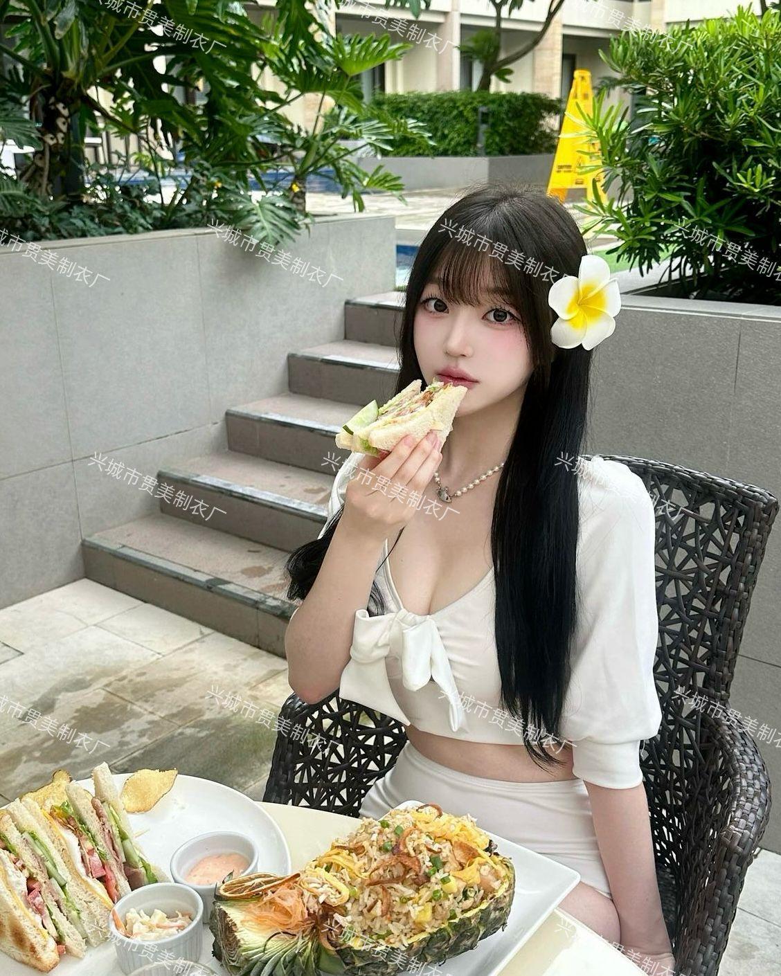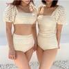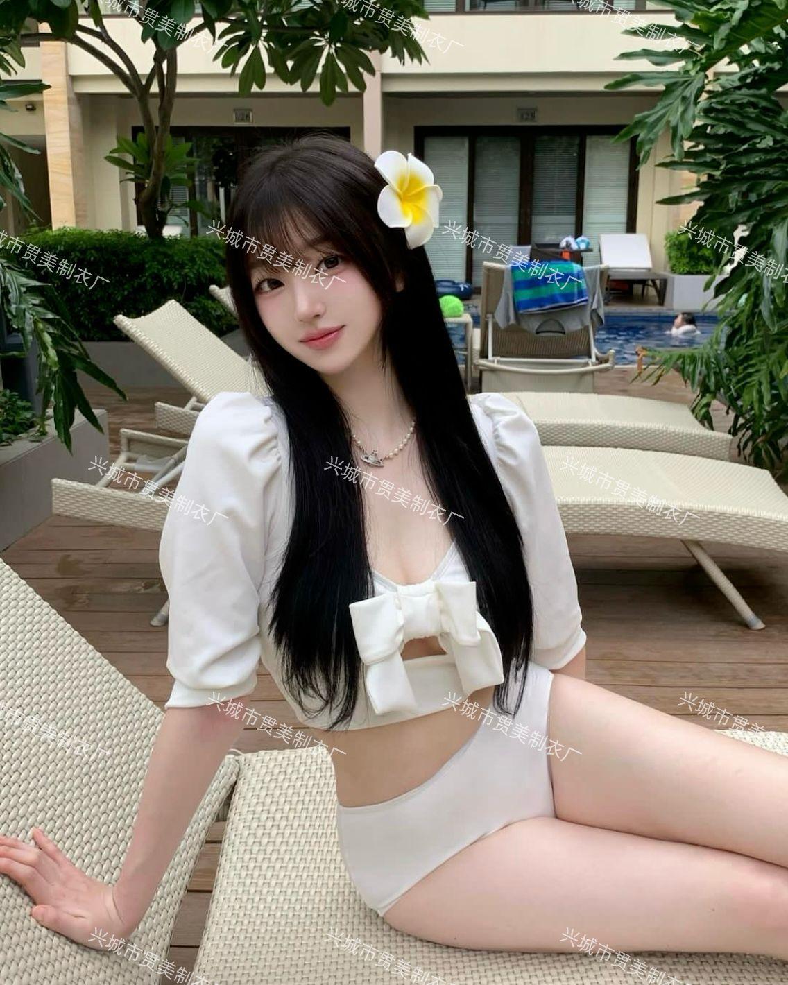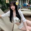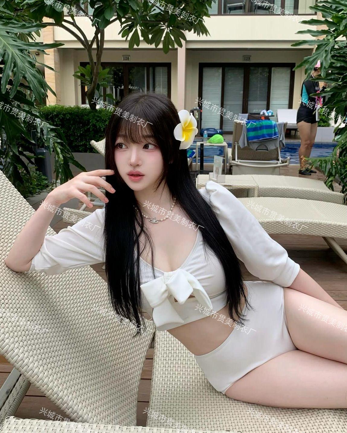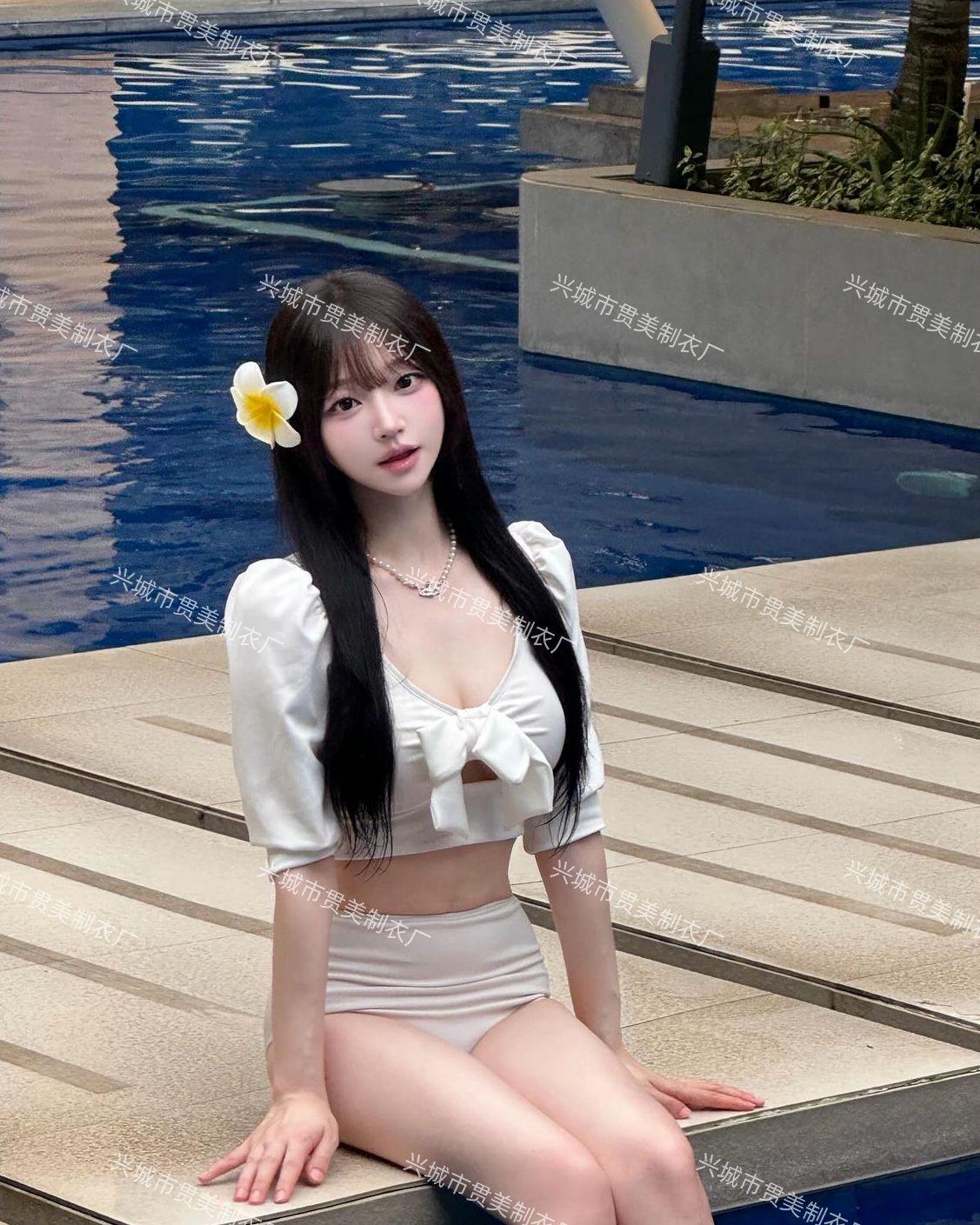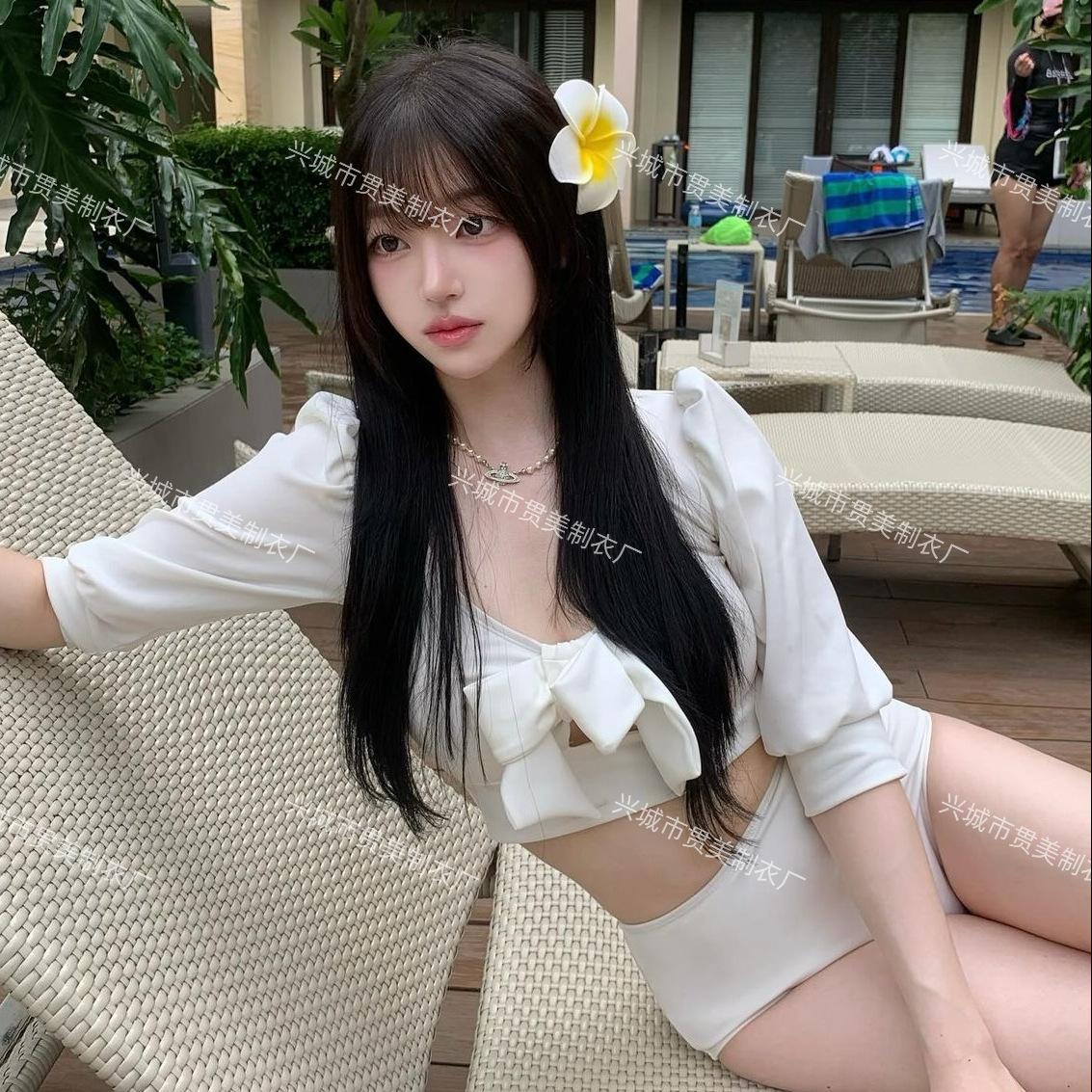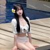 Traje de baño deportivo de cintura alta con mangas abullonadas y pecho pequeño, estilo coreano Pure Desire 2025, adelgazante, dividido, para mujer