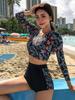 Bikini Vintage Coreano de Cintura Alta Dividido Sexy con Tirantes Traje de Baño Conservador Adelgazante de Manga Larga Deportivo Traje de Baño para Aguas Termales de Mujer