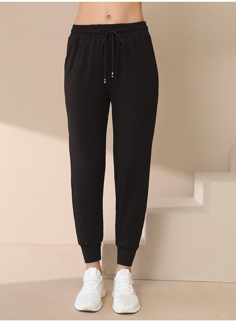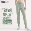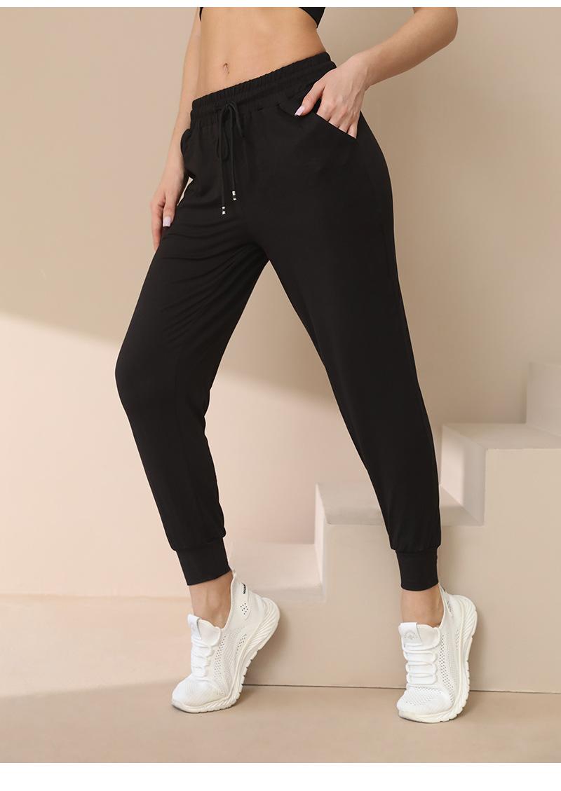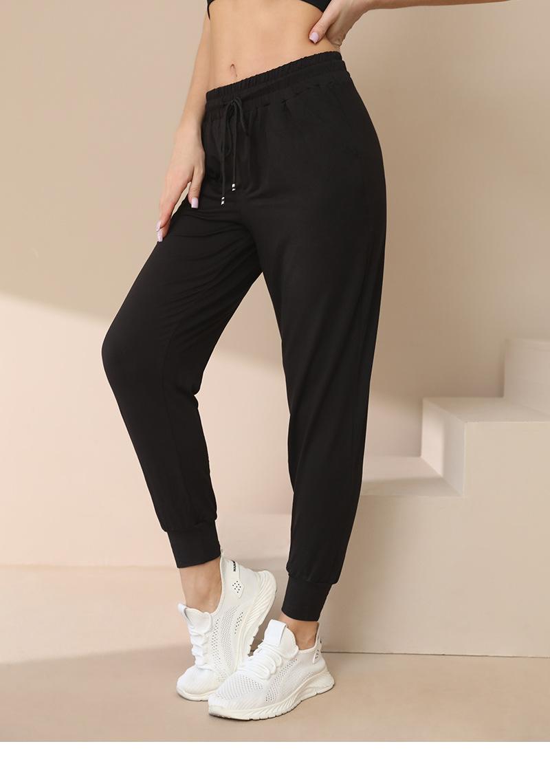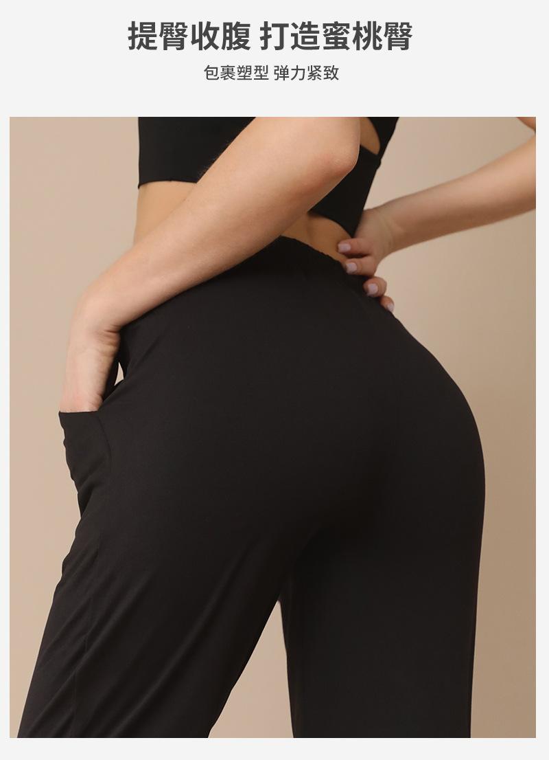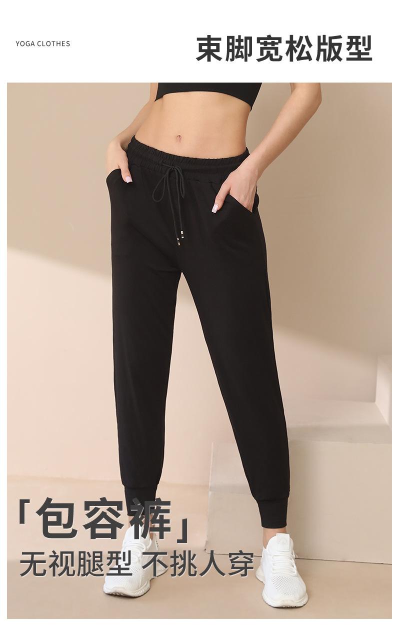 Pantalones Deportivos Europeos y Americanos para Mujer Sueltos con Bolsillo de Pie Nude Lijado Transpirables de Alta Elasticidad para Entrenamiento Fitness Outdoor hasta el Tobillo