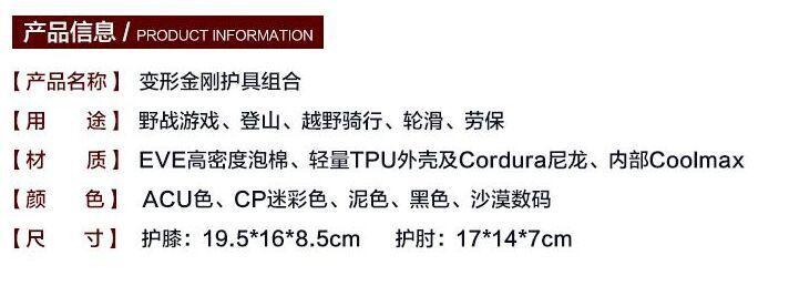 Lista de productos: 2 rodilleras y 2 coderas. El mismo estilo que los soldados estadounidenses en la película. También es un estilo muy popular