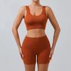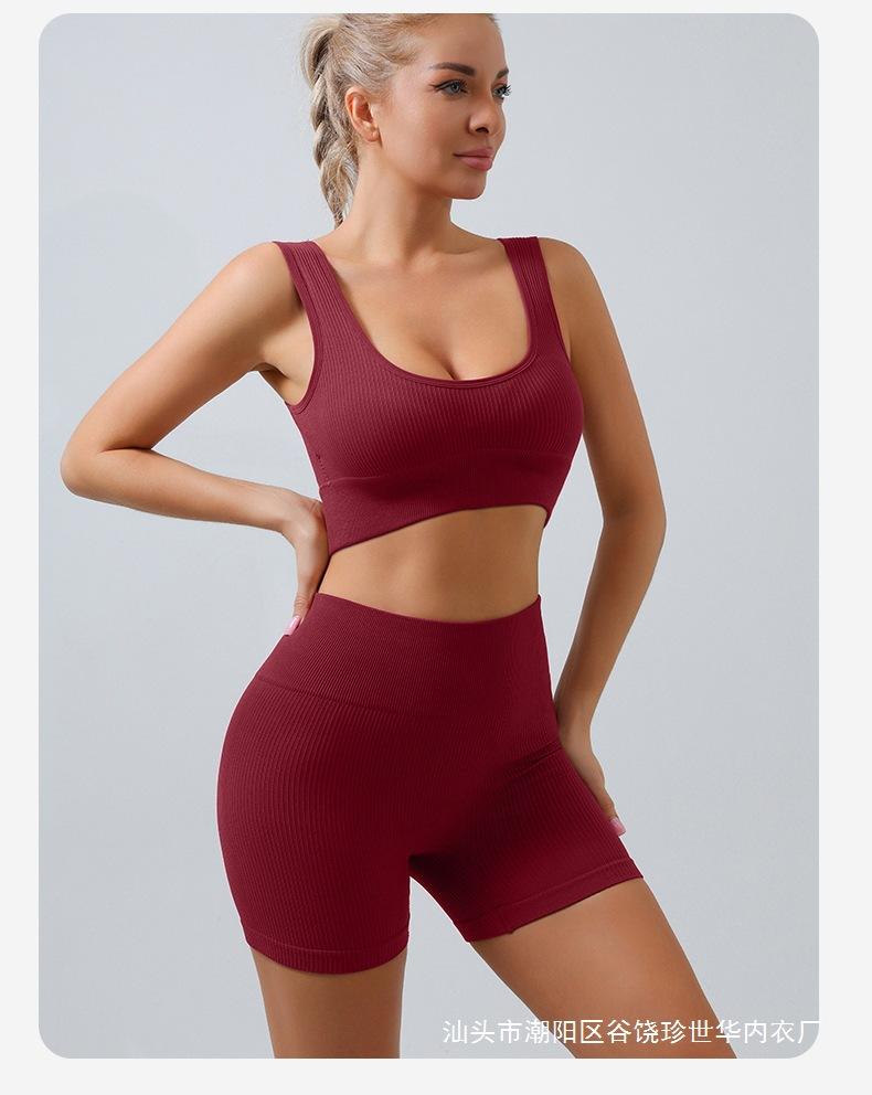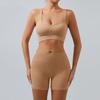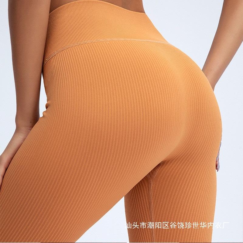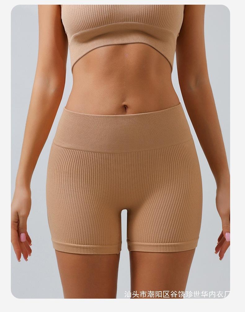 Pantalones cortos de yoga con hilo, de estilo europeo y americano, ajustados, de cintura alta, elásticos, color melocotón, sin costuras, para mujer