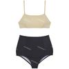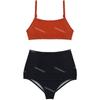 Nuevo Traje de Baño Conservador de Estudiante de Color Contraste, Cintura Alta Cubre Vientre, Adelgazante para Pecho Pequeño, Simple Retro Vacacional con Abertura para Mujer