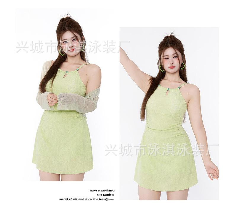 Traje de baño de vacaciones en aguas termales para mujer, fresco, dulce, sexy, con efecto adelgazante, que cubre el vientre y conserva el abdomen.