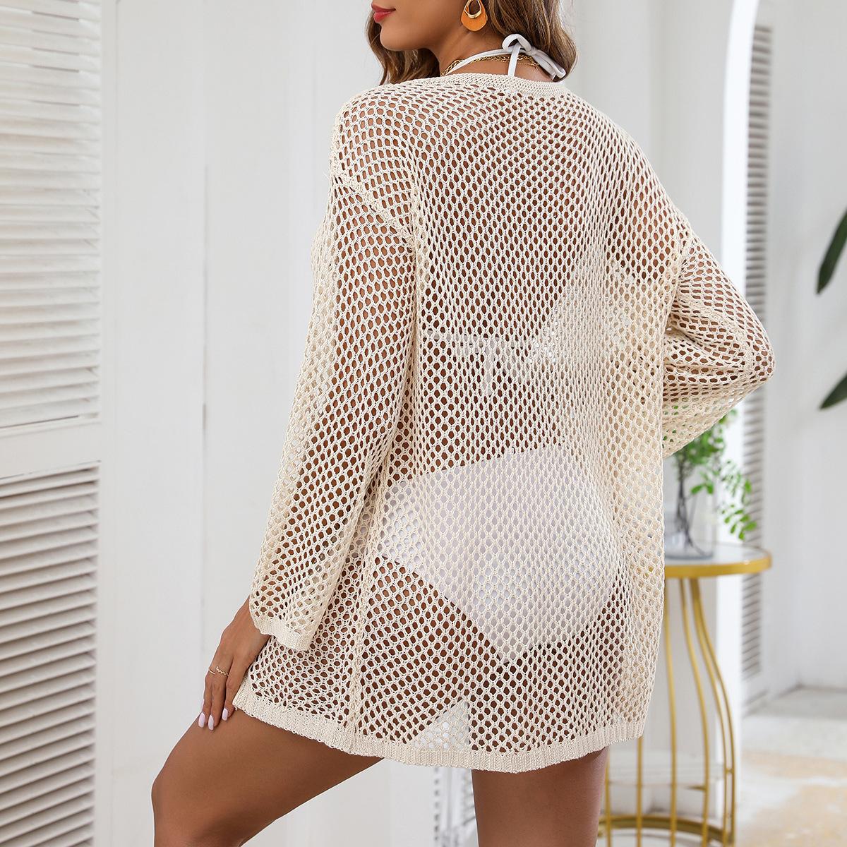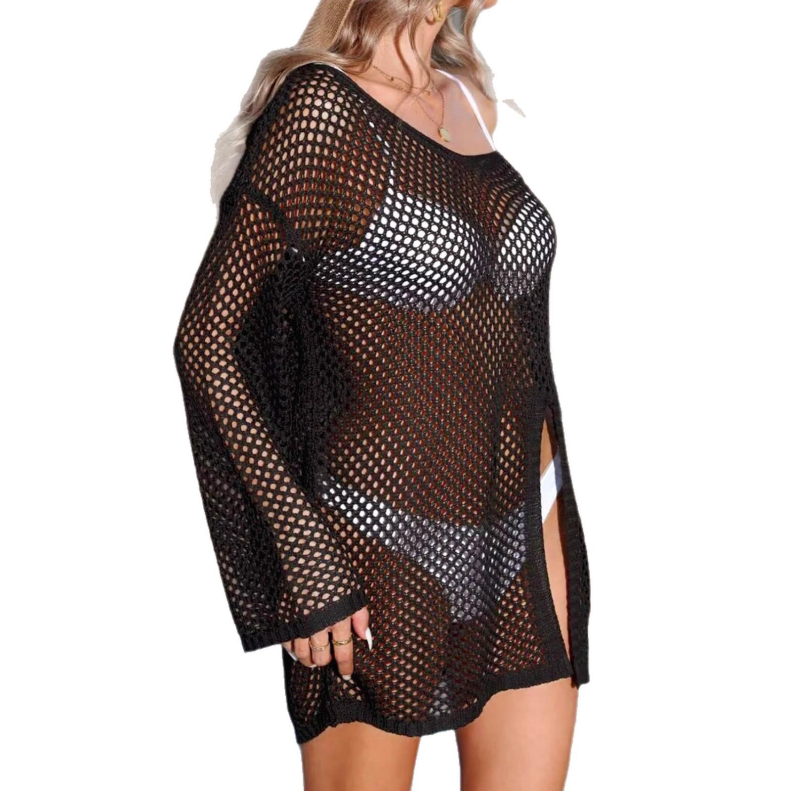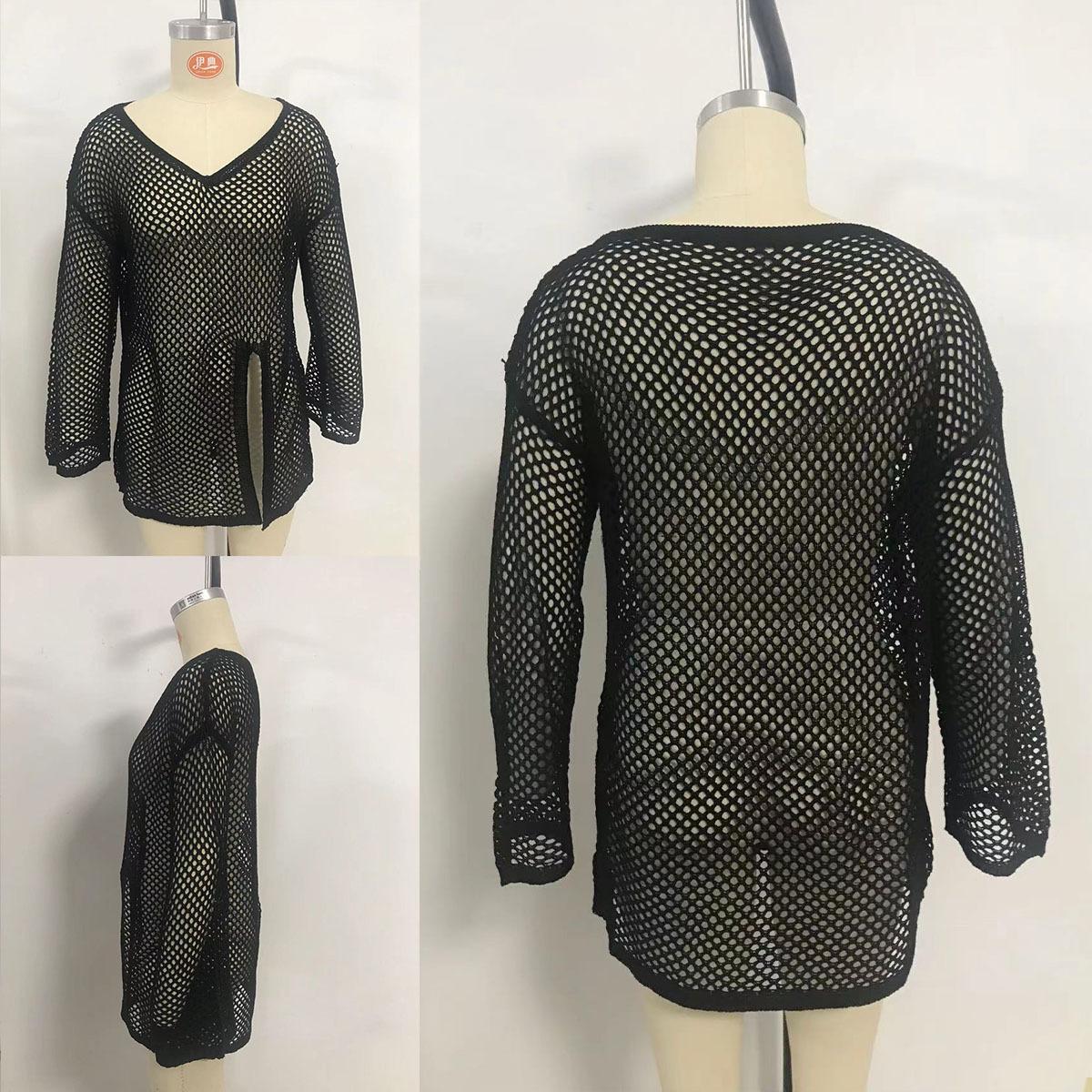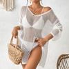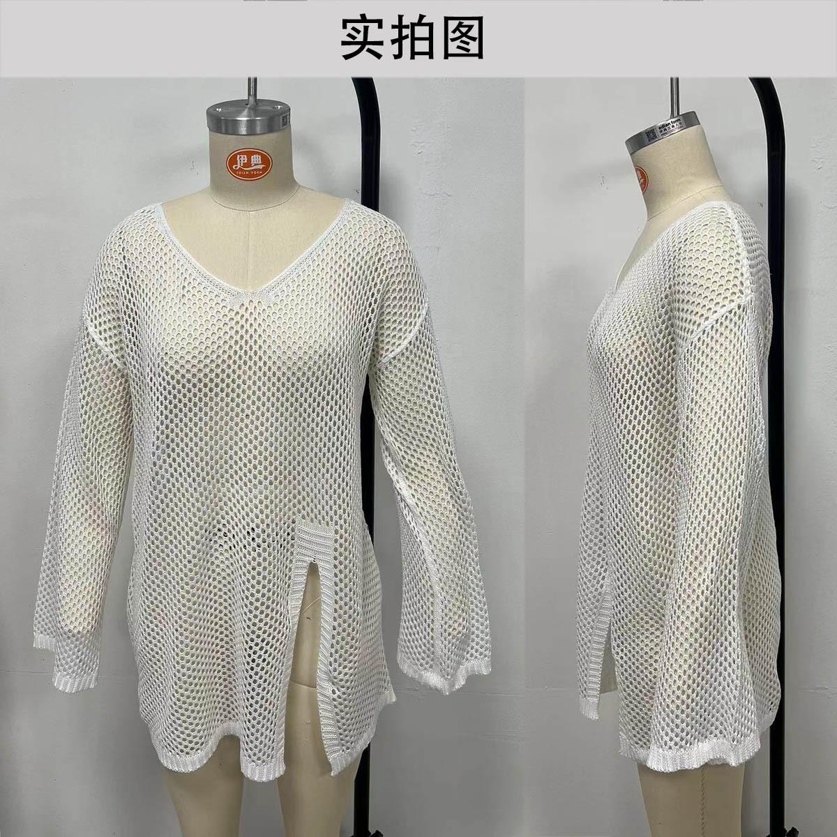 Nuevo Cobertor Irregular con Cuello en V Transfronterizo Amazon Más Vendido Calado con Abertura Lateral Cobertor de Bikini Vestido de Playa