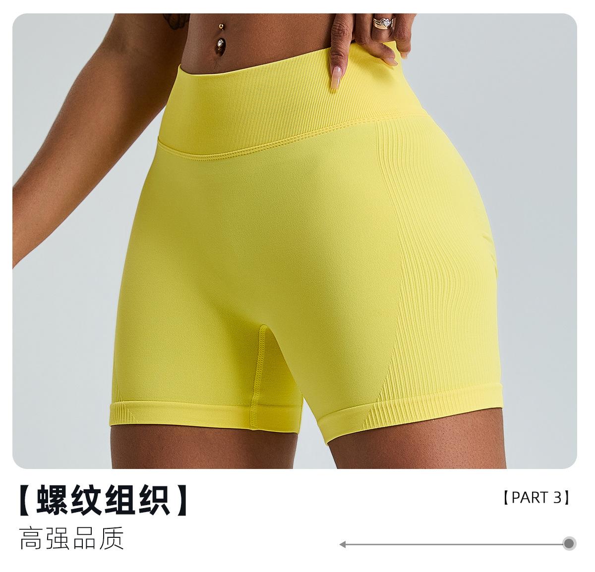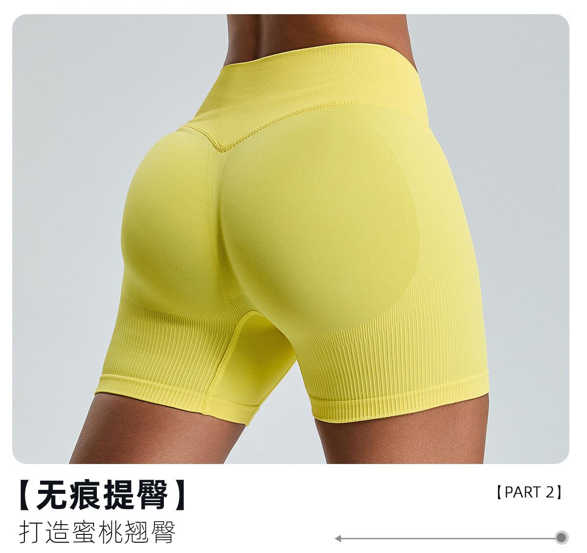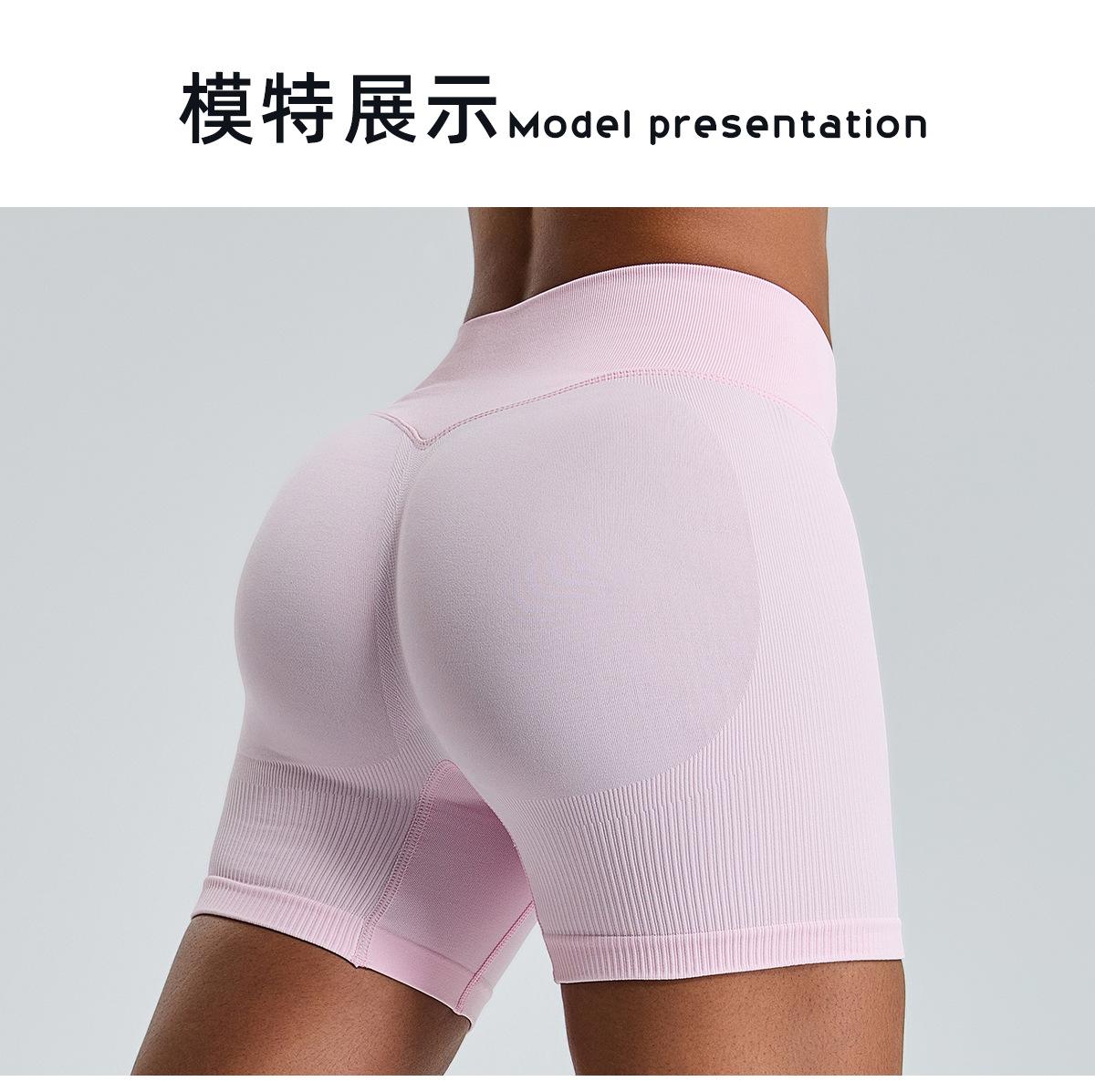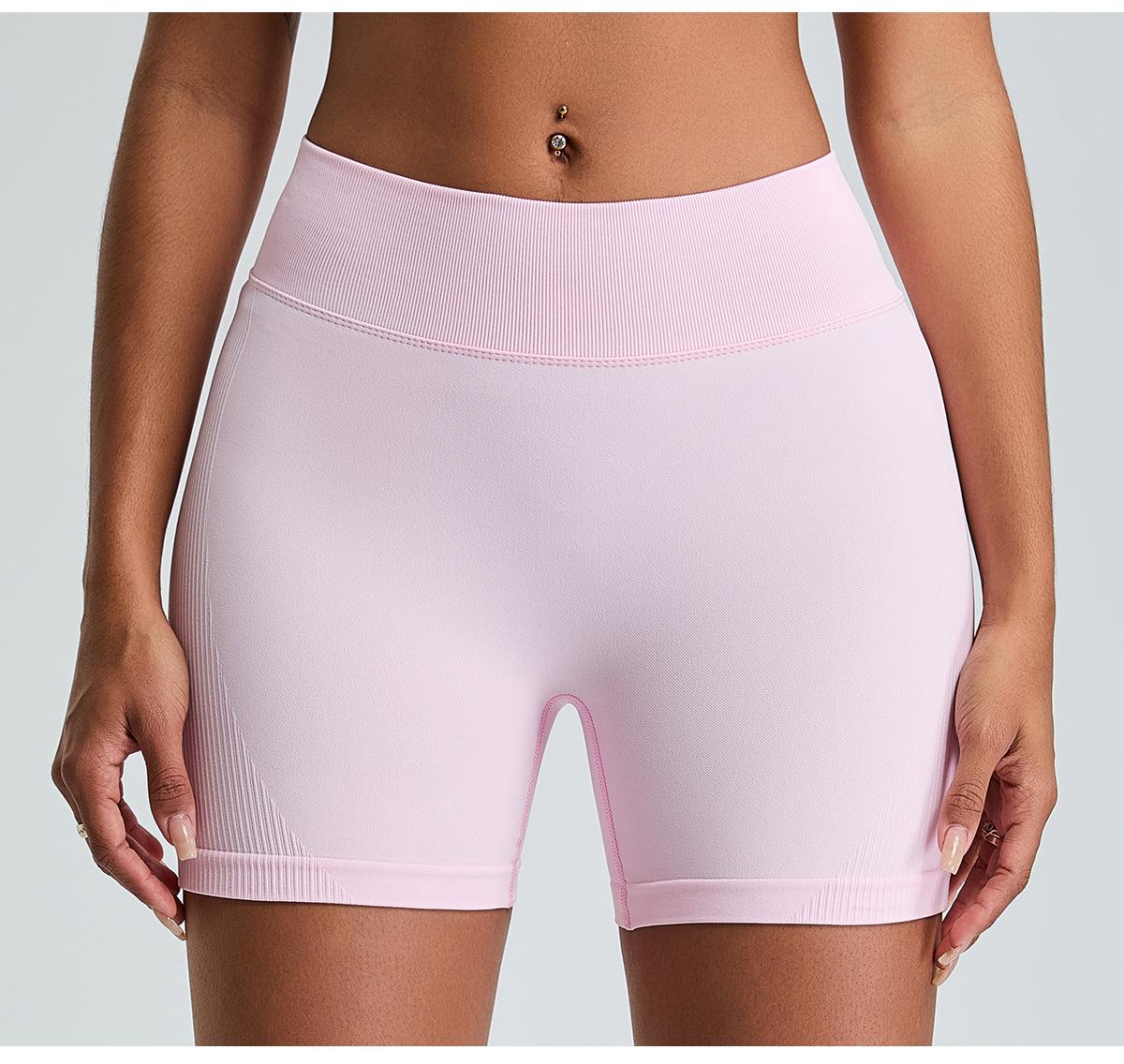 Pantalones cortos de yoga ajustados, transpirables, de secado rápido y sin costuras para mujer, de cintura alta, color melocotón, con tres puntos de ajuste.