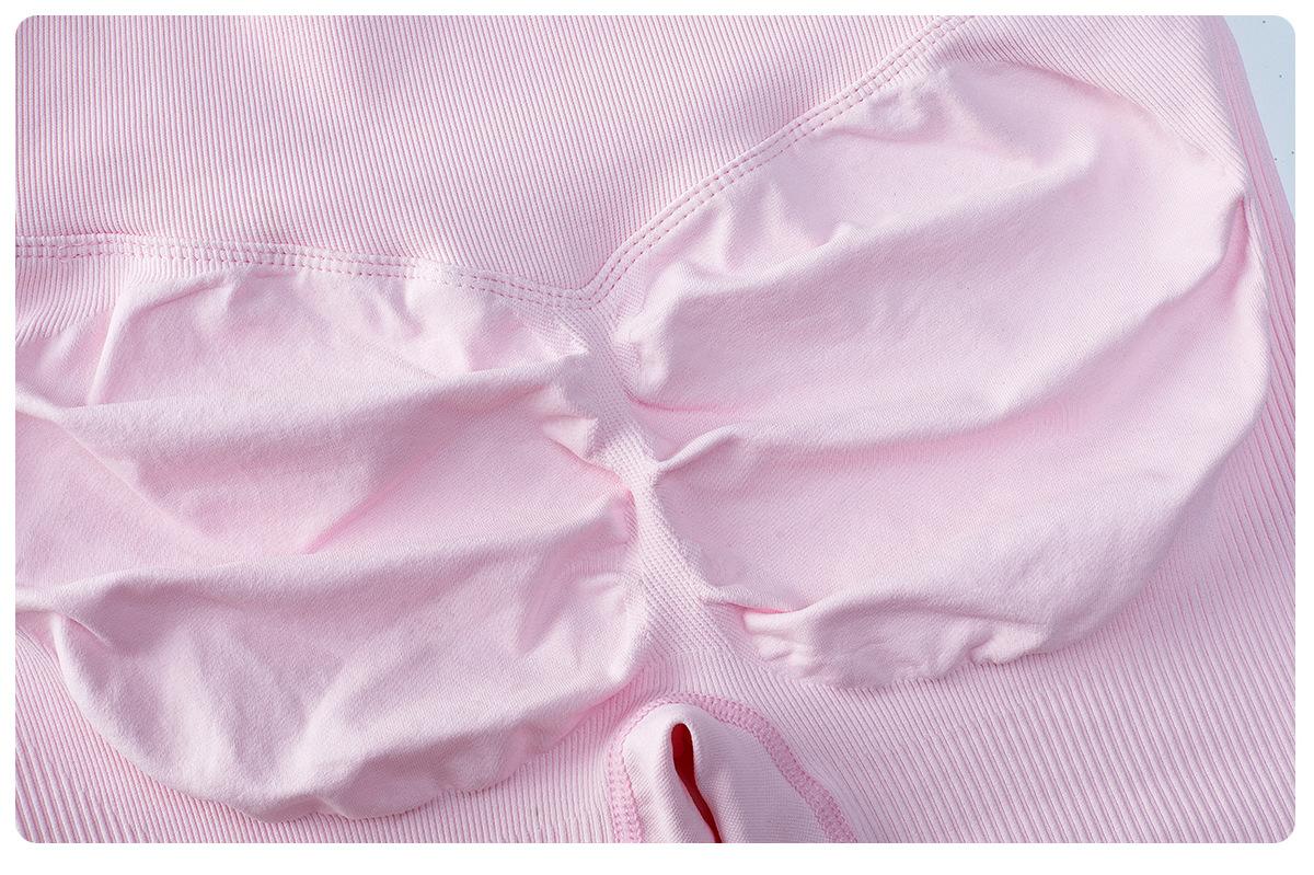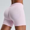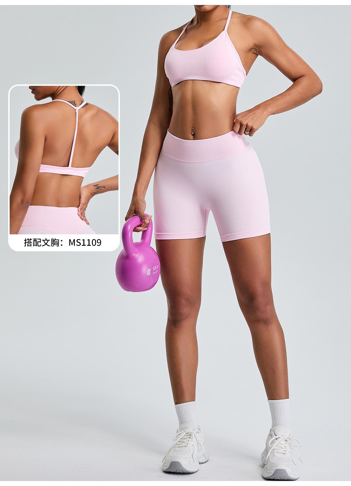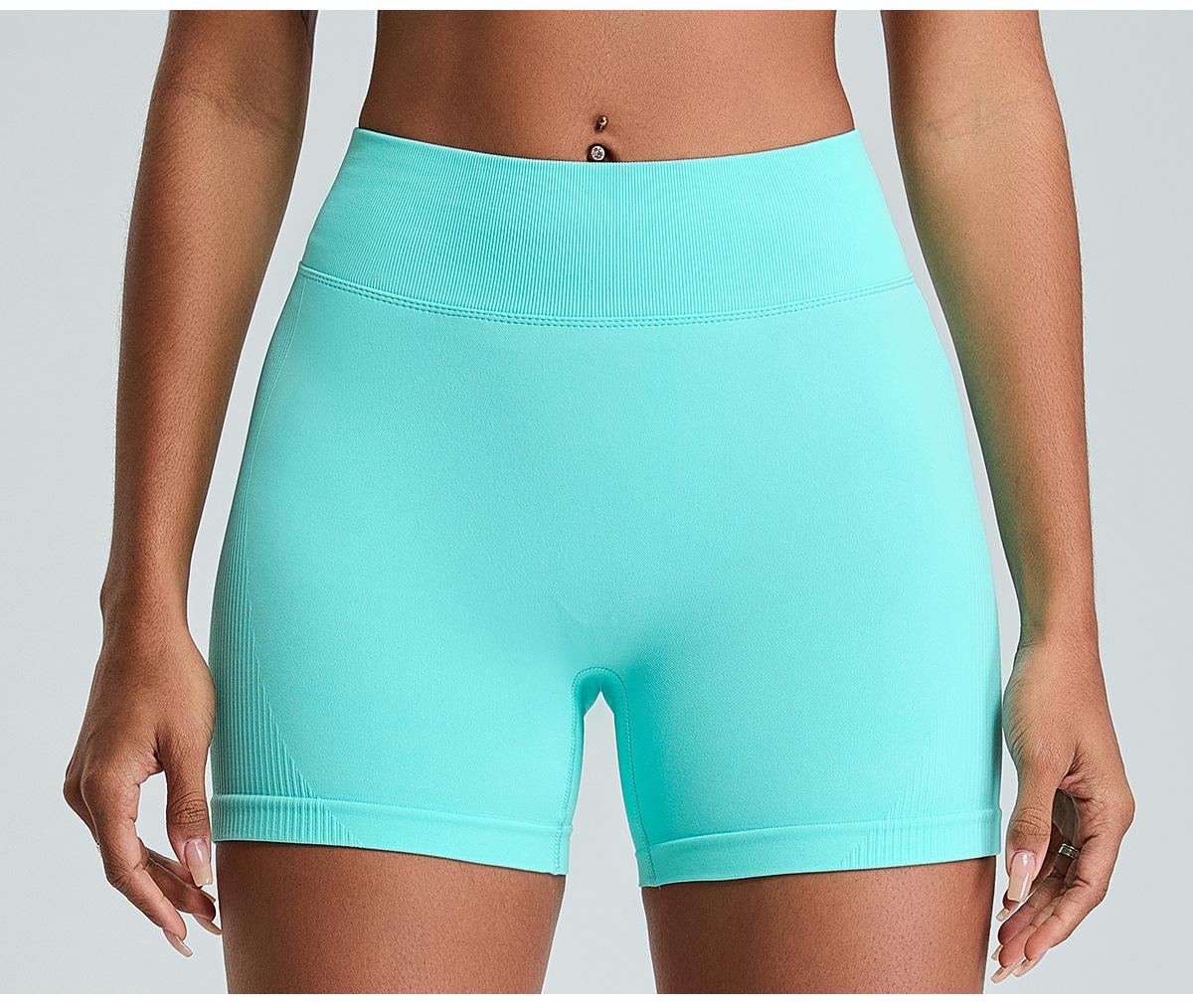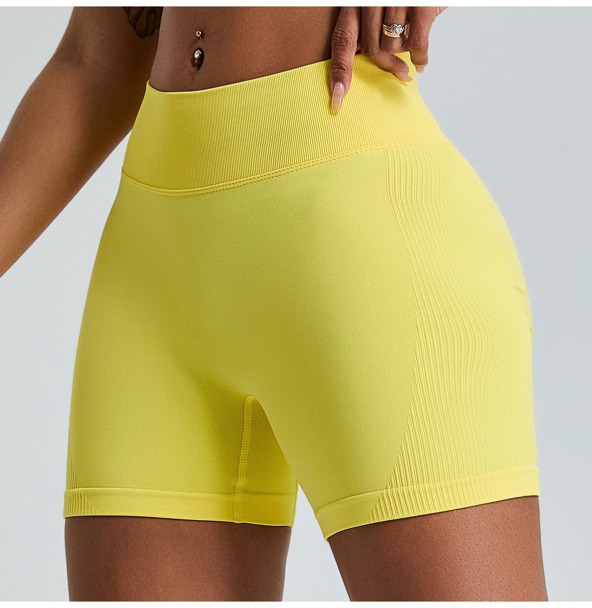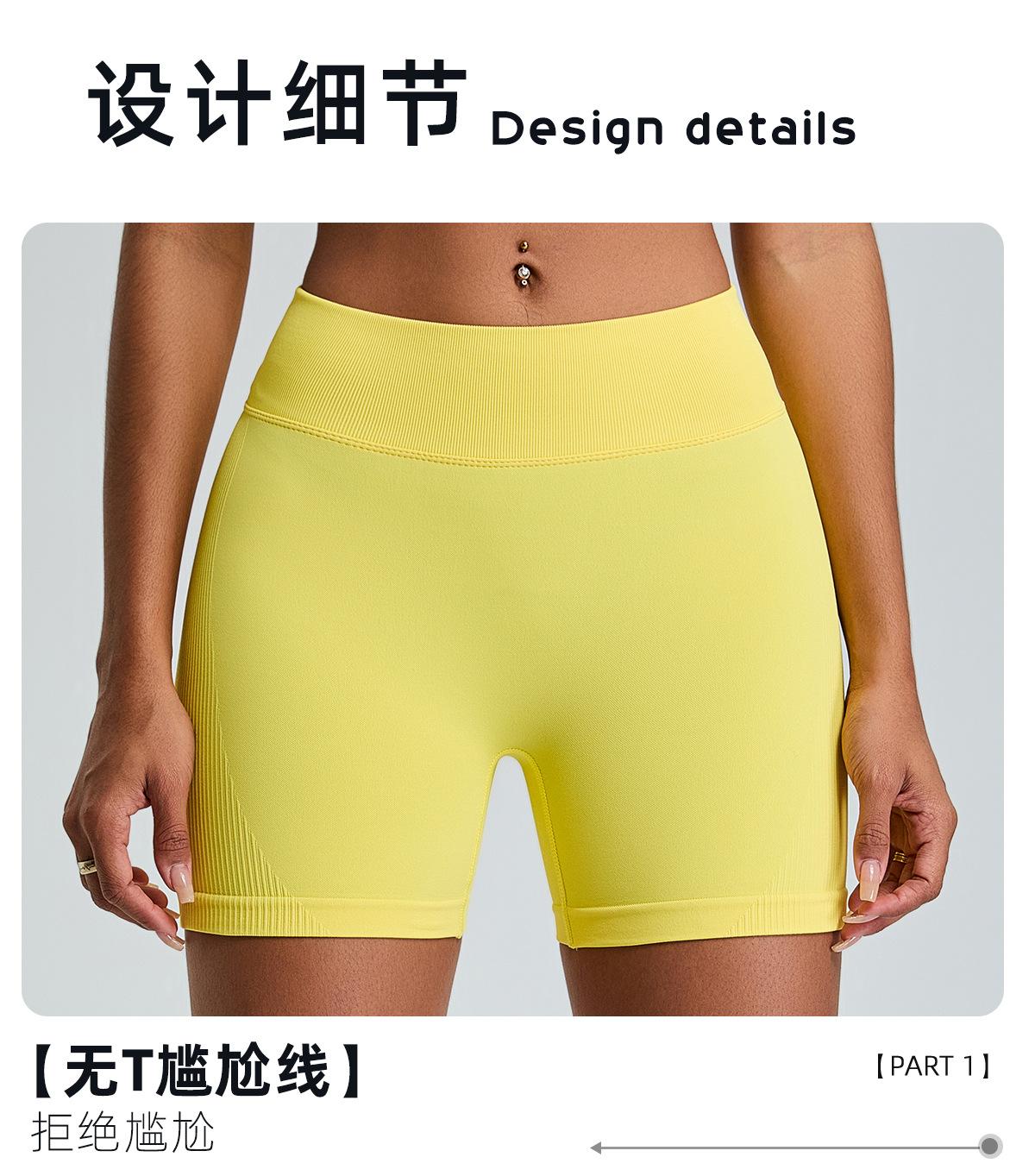 Pantalones cortos de yoga ajustados, transpirables, de secado rápido y sin costuras para mujer, de cintura alta, color melocotón, con tres puntos de ajuste.