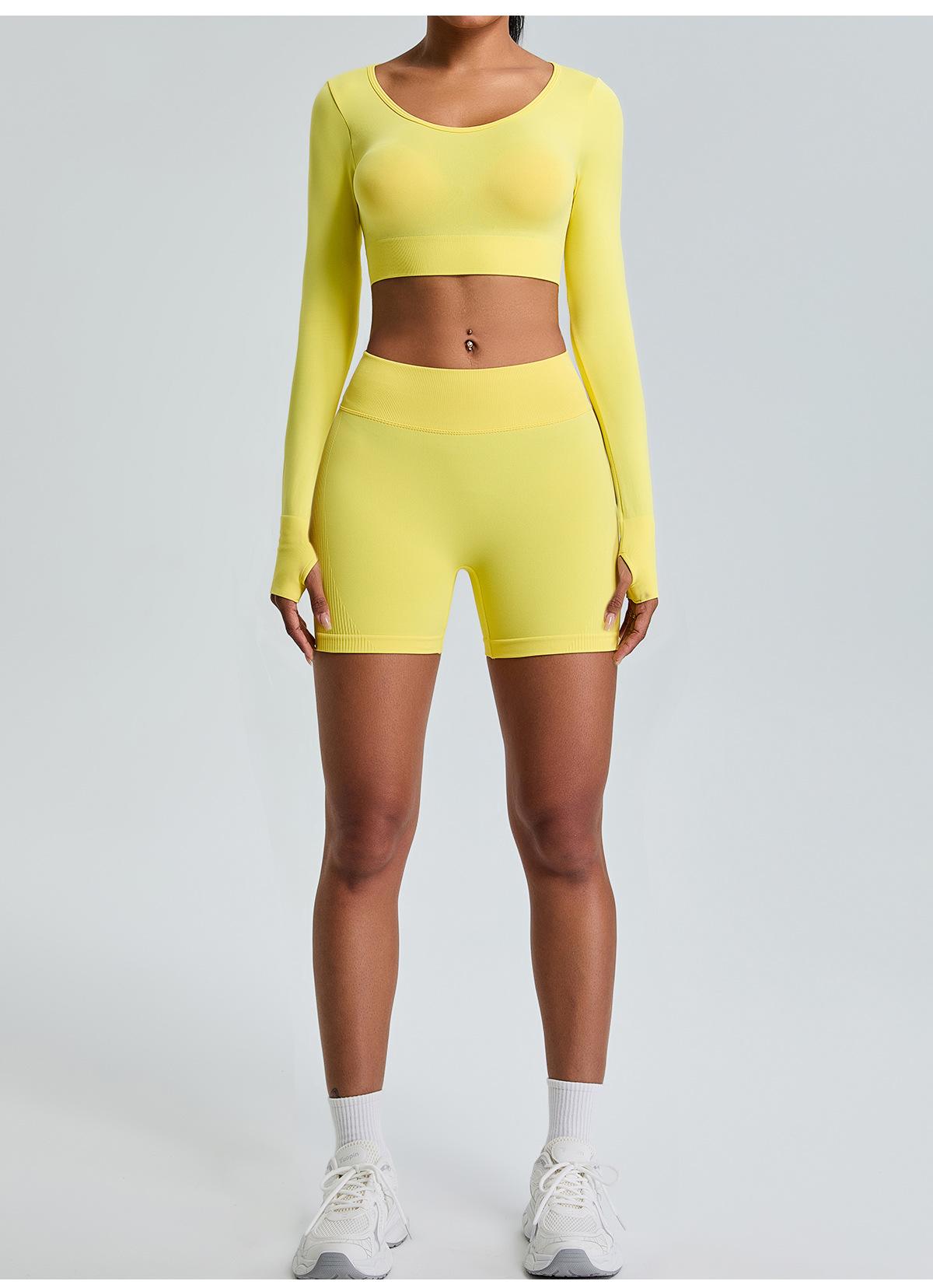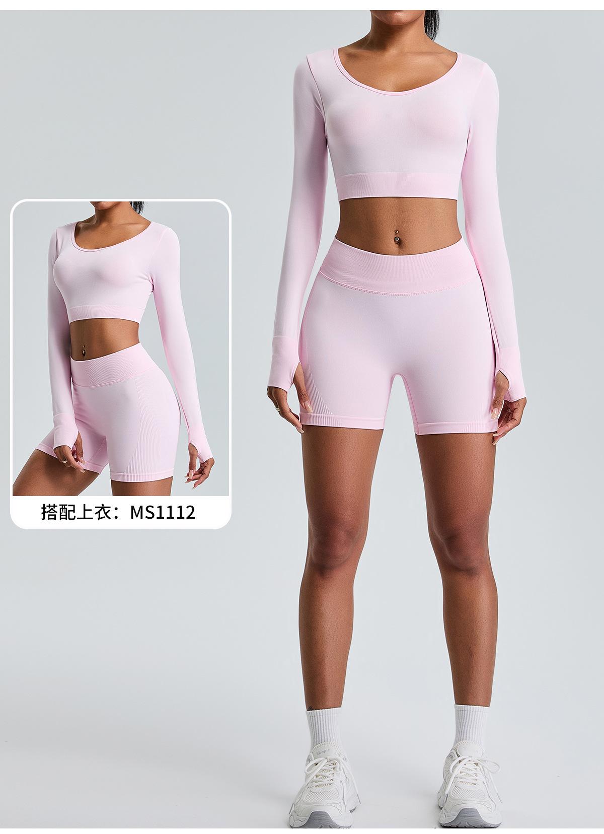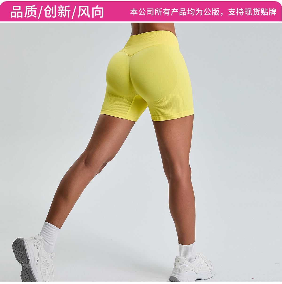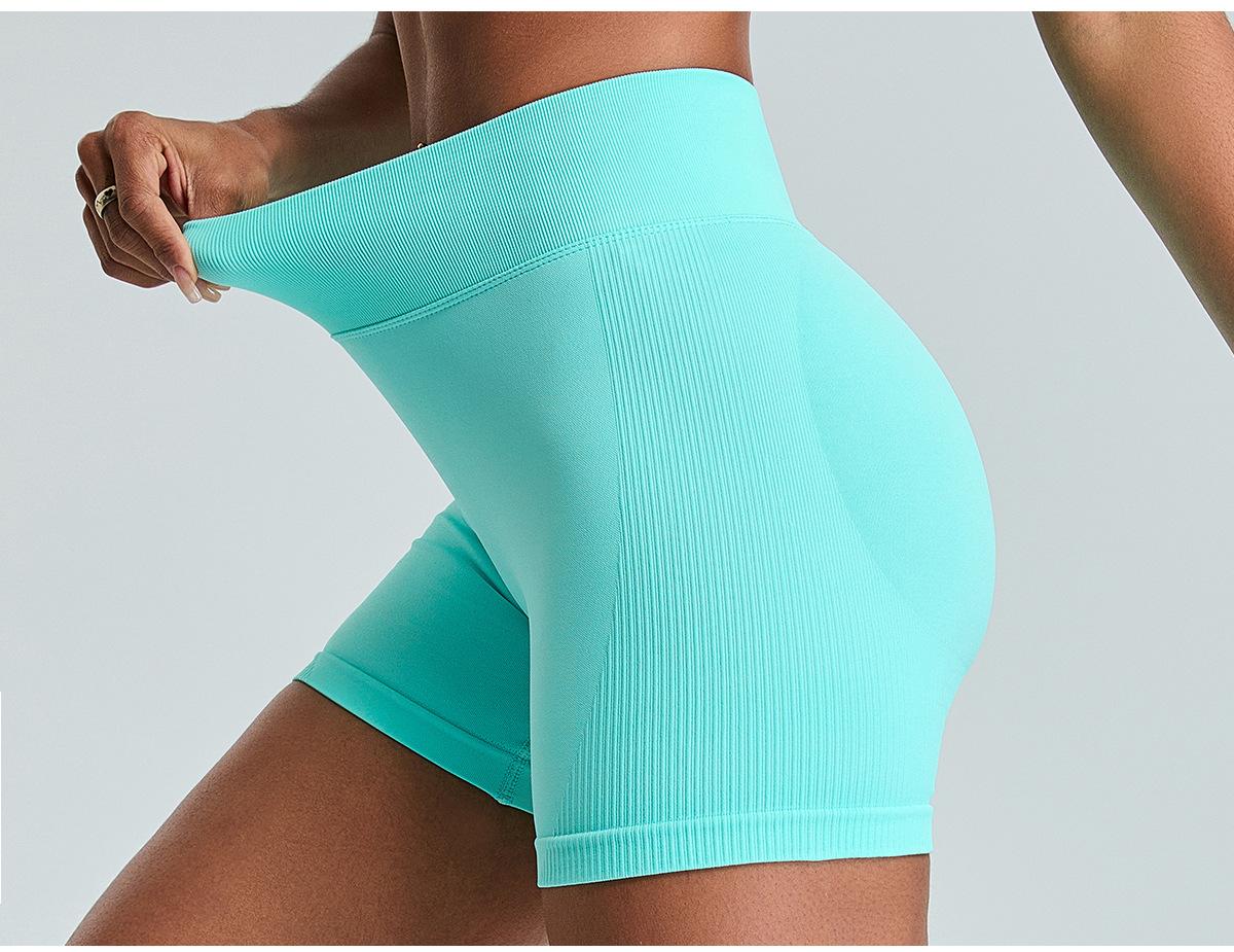 Pantalones cortos de yoga ajustados, transpirables, de secado rápido y sin costuras para mujer, de cintura alta, color melocotón, con tres puntos de ajuste.