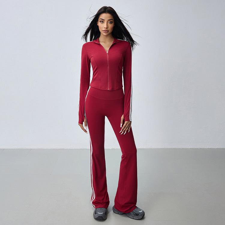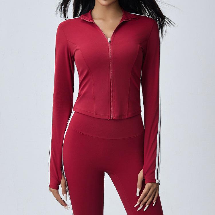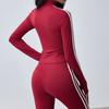 Traje de yoga de manga larga estilo Spice Girl americano para mujer, estilo retro con doble barra, para fitness, para correr, chaqueta deportiva de otoño