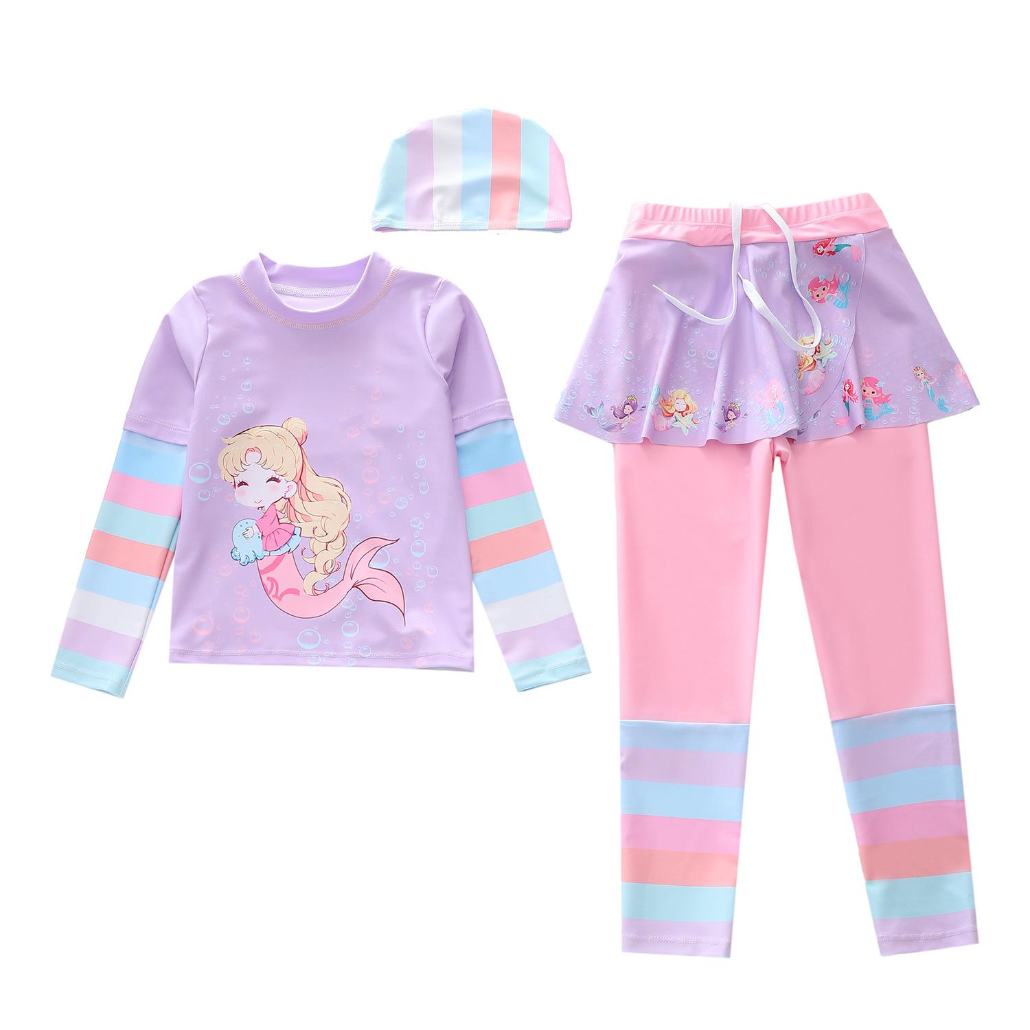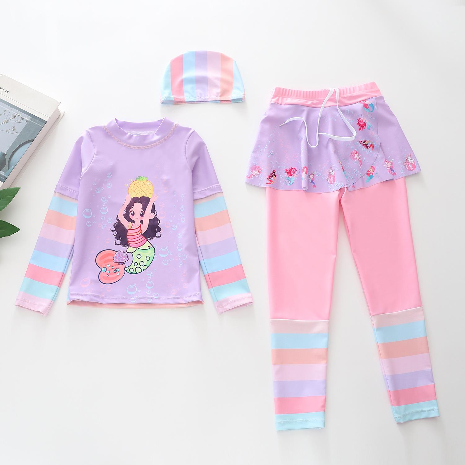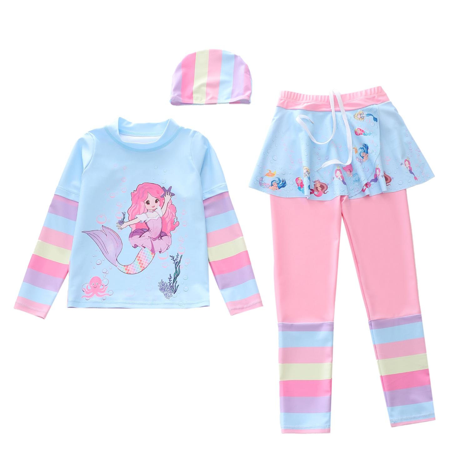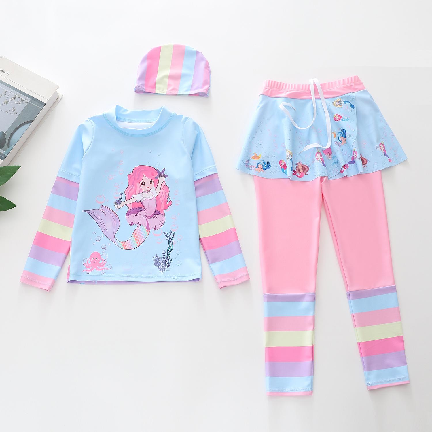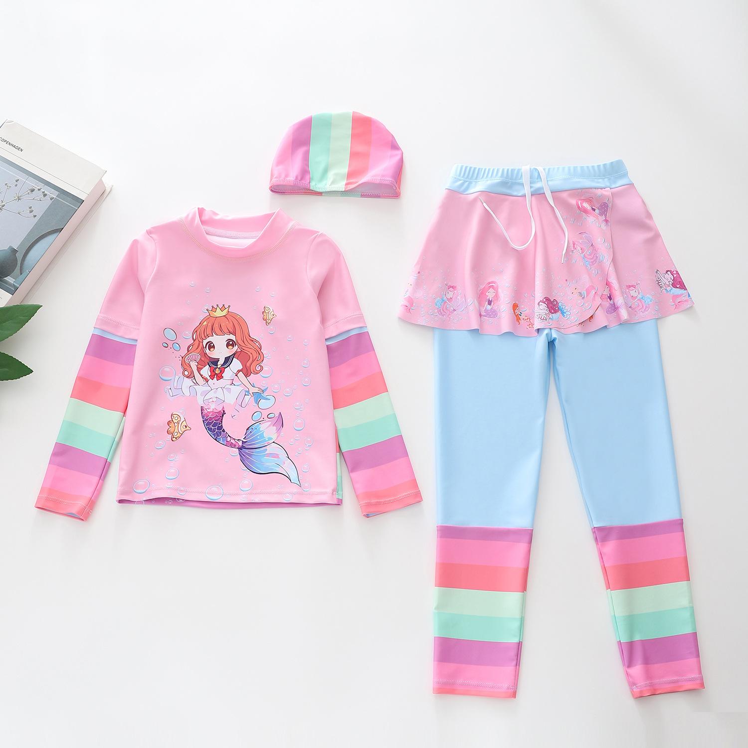 Traje de Baño Nuevo para Niños 2024 Ropa de Baño para Niñas Sirena Niña Bebé Manga Larga Pequeño, Mediano y Grande Traje de Baño Separado para Niños