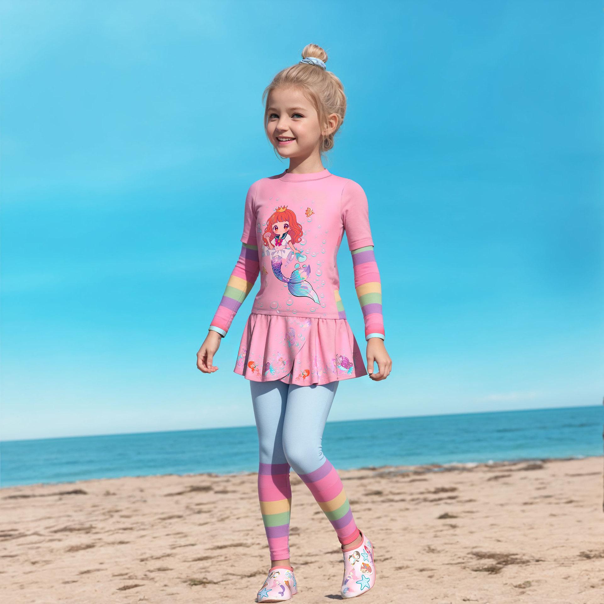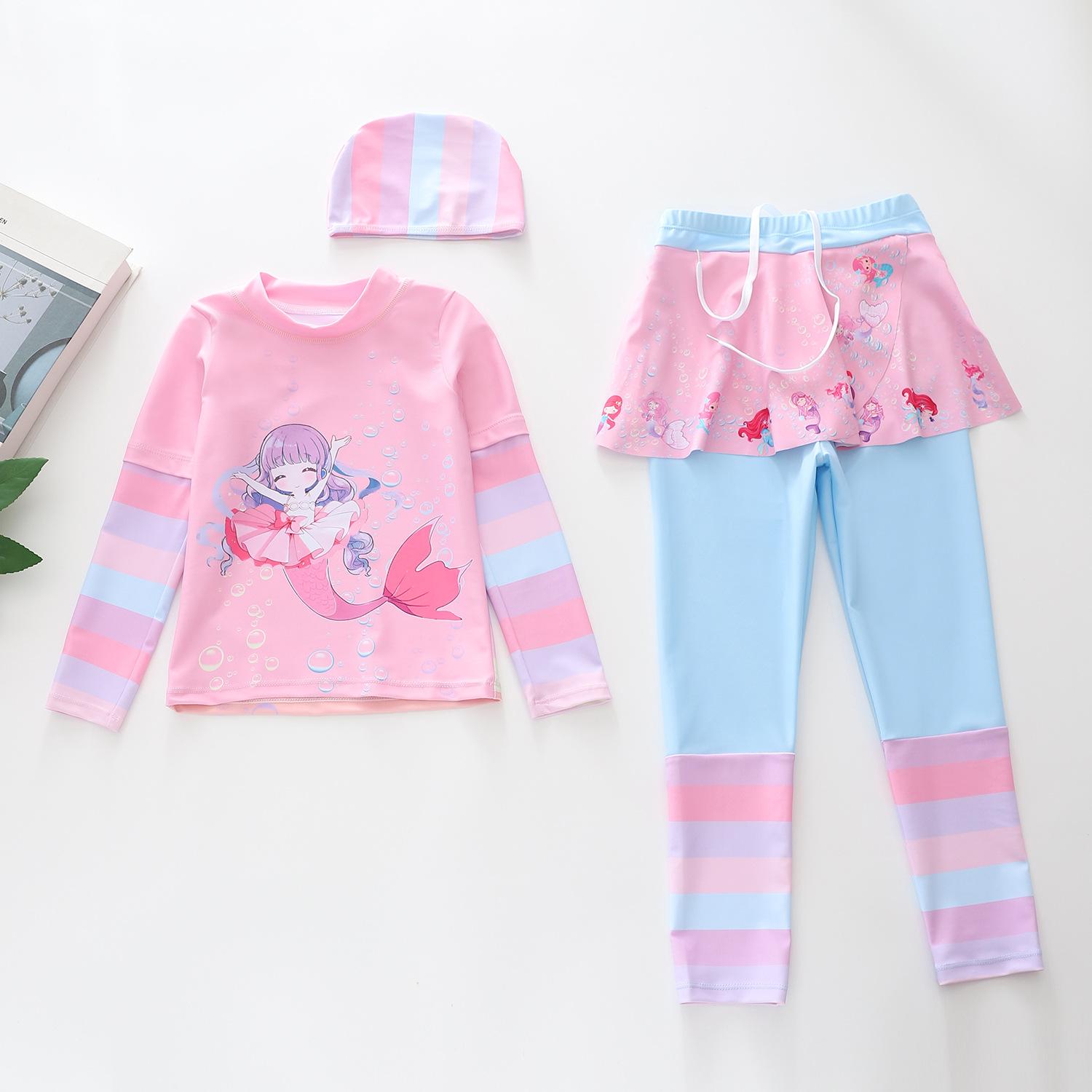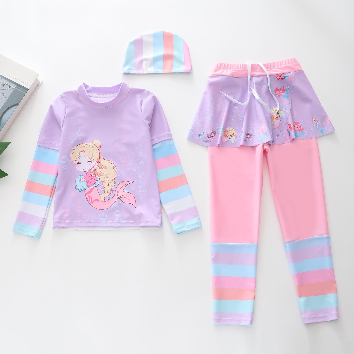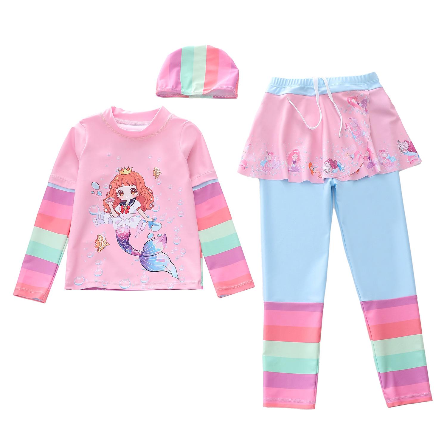 Traje de Baño Nuevo para Niños 2024 Ropa de Baño para Niñas Sirena Niña Bebé Manga Larga Pequeño, Mediano y Grande Traje de Baño Separado para Niños