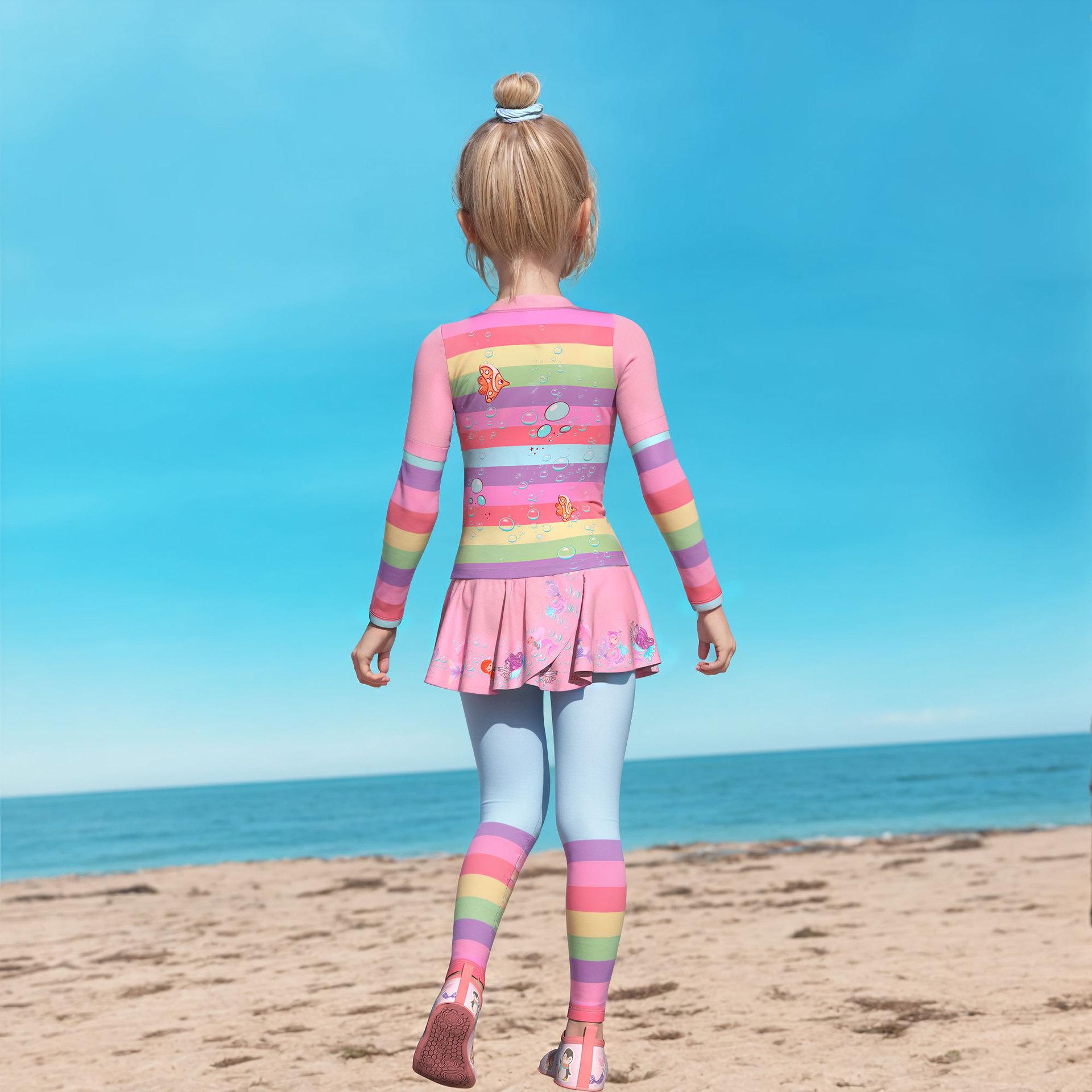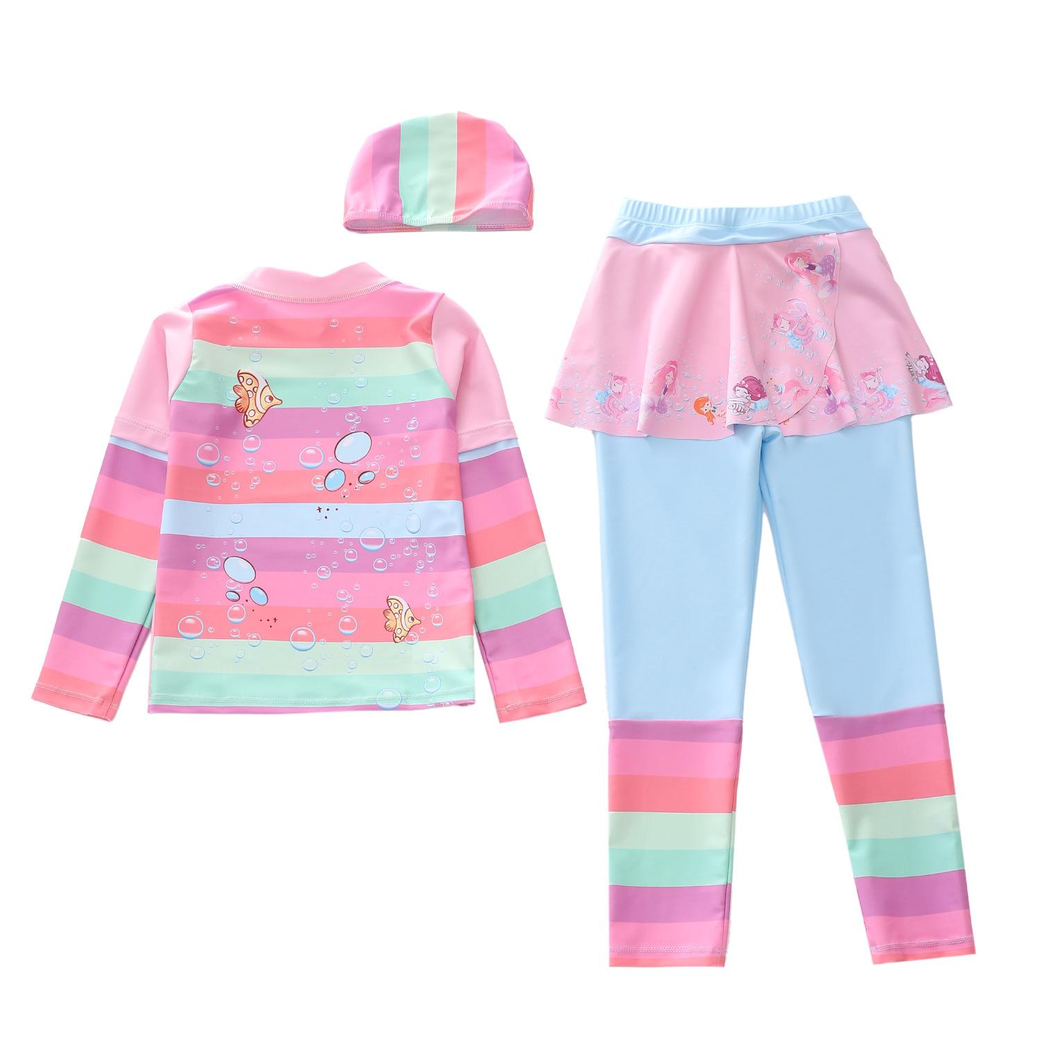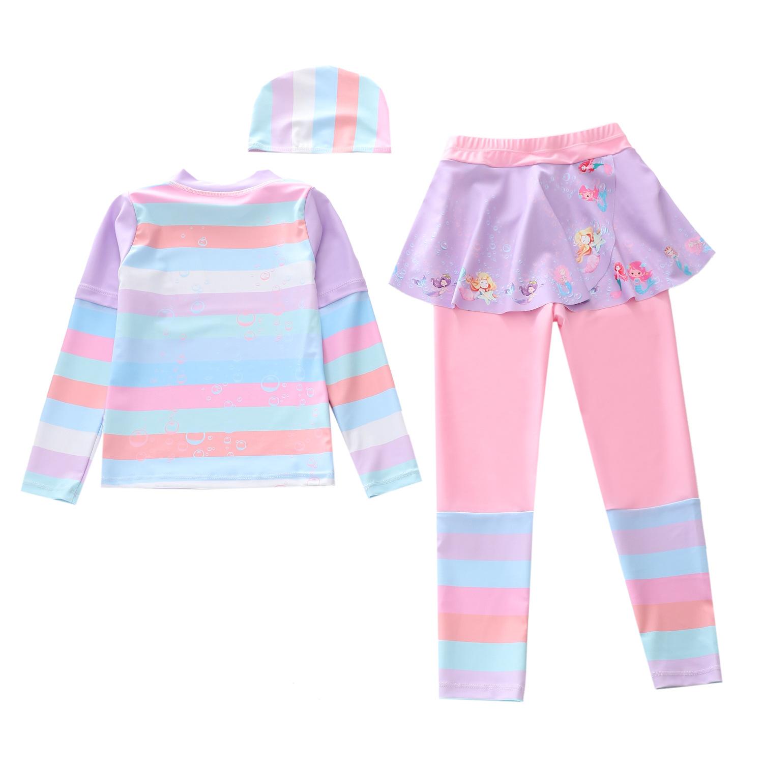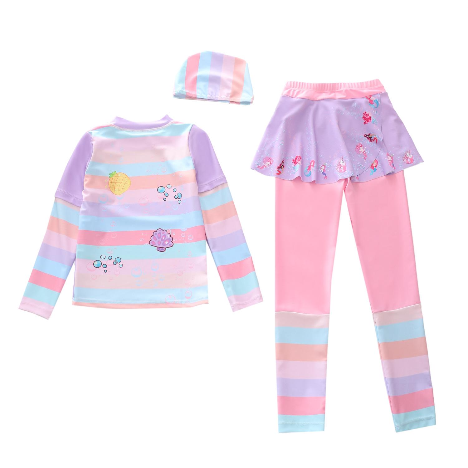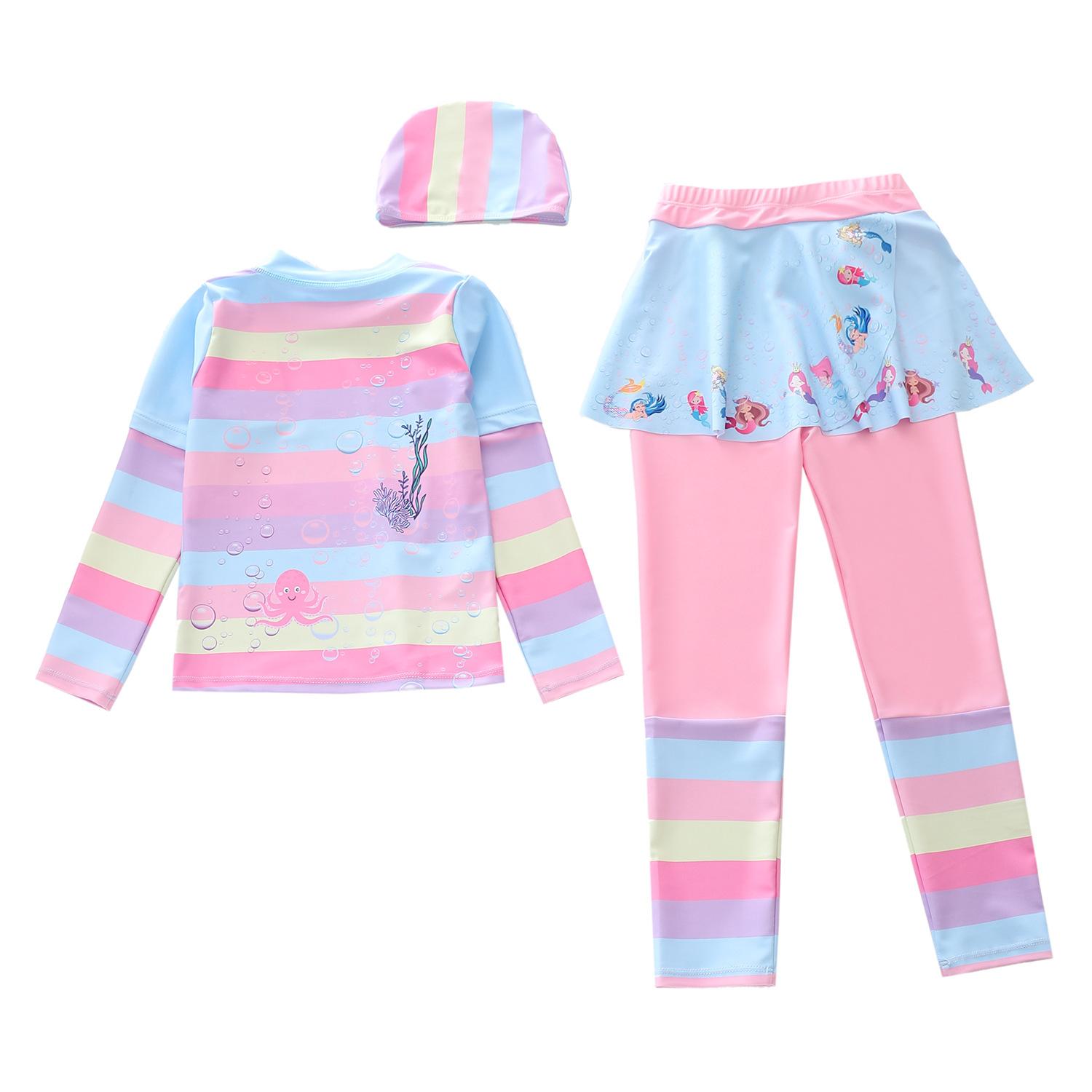 Traje de Baño Nuevo para Niños 2024 Ropa de Baño para Niñas Sirena Niña Bebé Manga Larga Pequeño, Mediano y Grande Traje de Baño Separado para Niños
