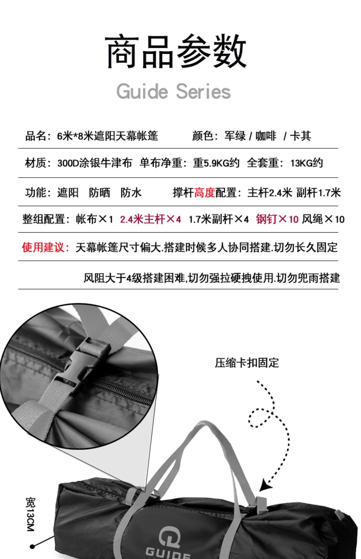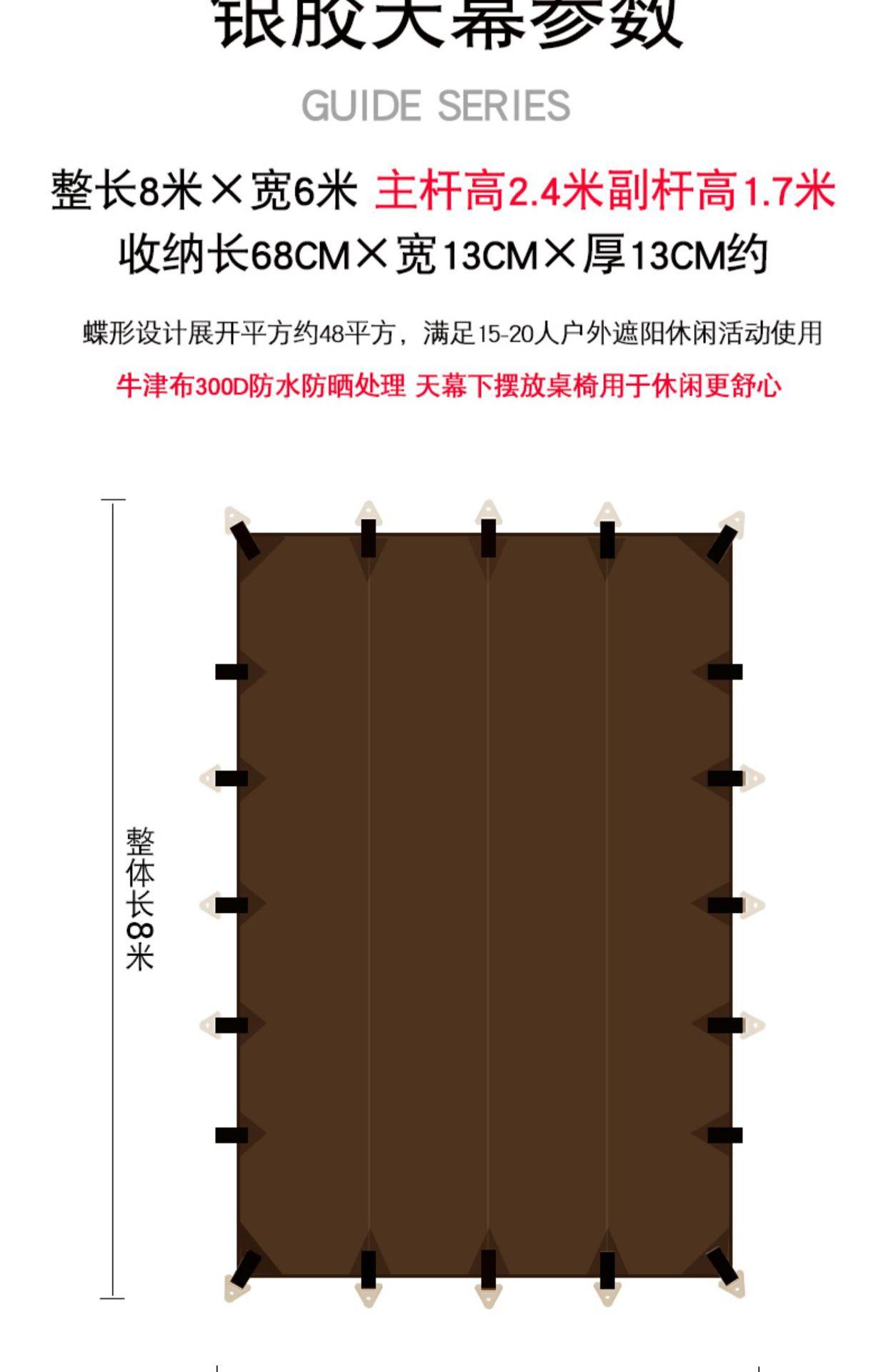Silver-coated khaki 6×8 four main poles + four auxiliary poles +