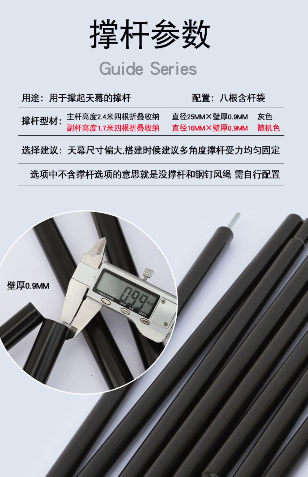 Silver coated coffee 6×8 (separate canopy cloth), Four silver-coated coffee 6×8 main poles + four auxiliary ro...
