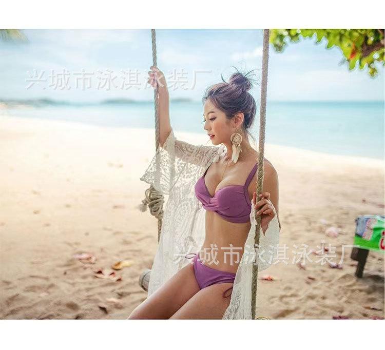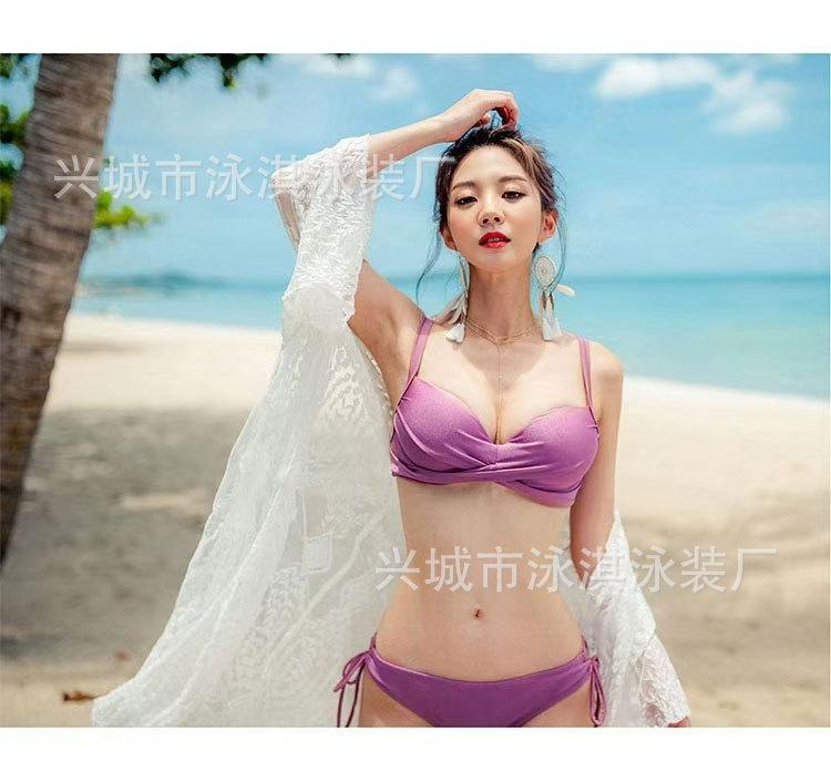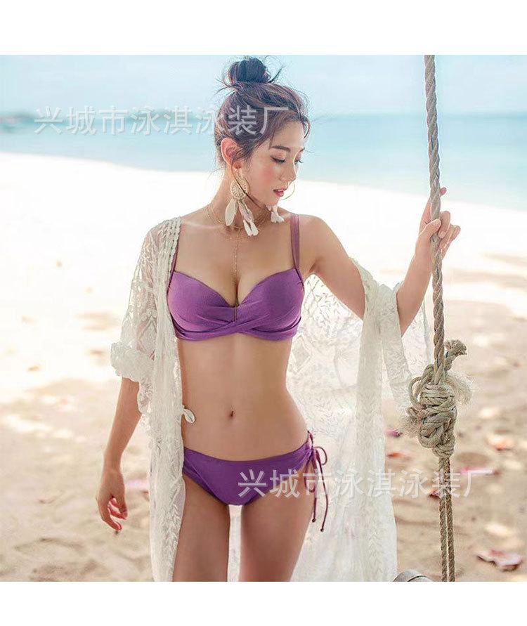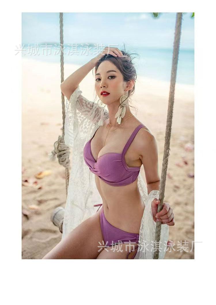 Traje de baño sencillo vintage para mujer Talla Busto Push-up Sexy Tres puntos Con aro Copa dura Bikini Traje de baño bikini