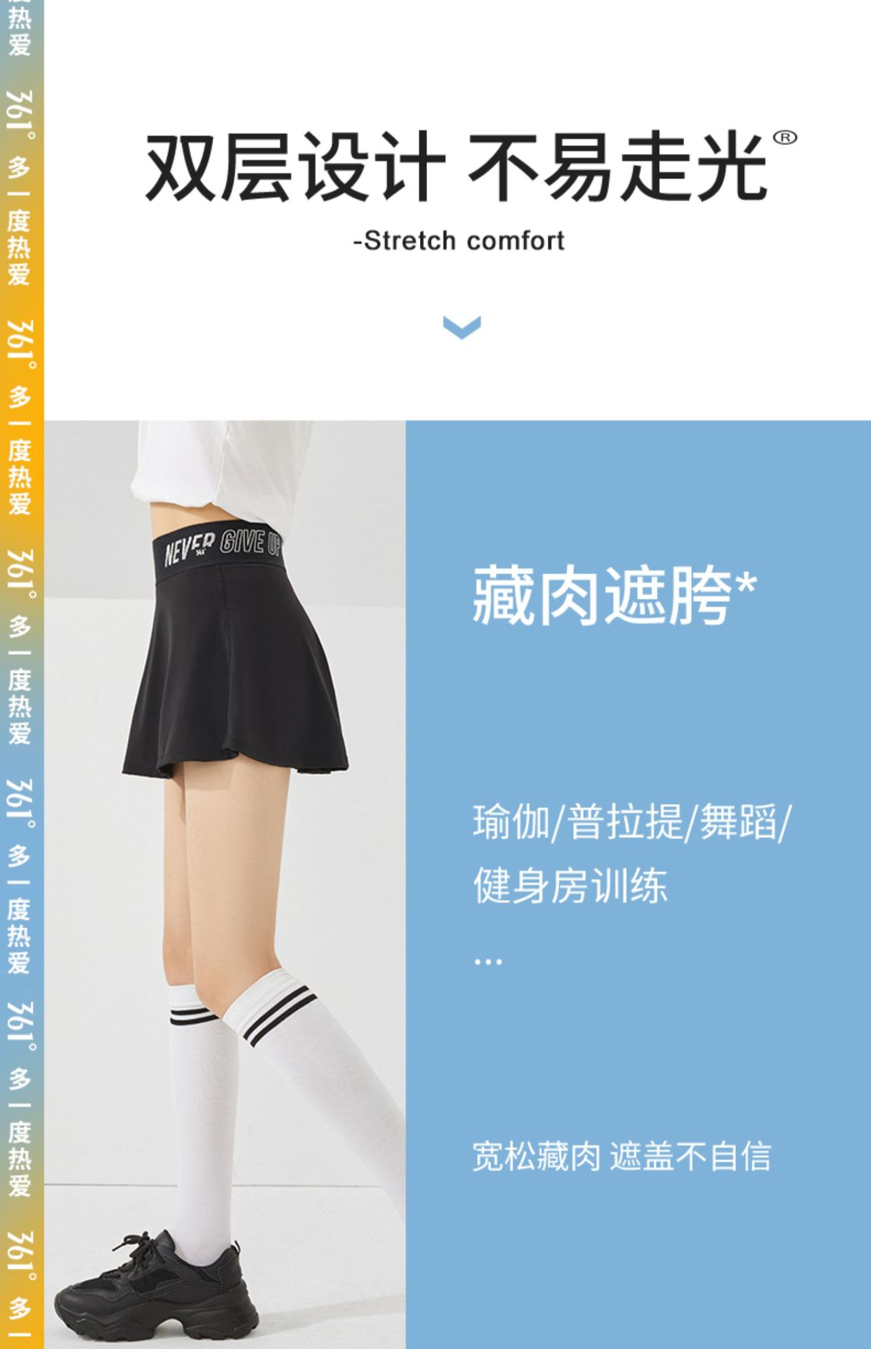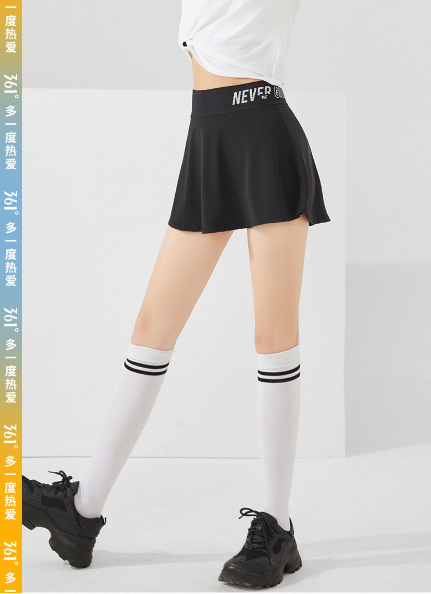 Falda de Tenis 361 Verano Cintura Alta Yoga Plisada Media Longitud Tres Puntos Antiexposición Falso Dos Piezas Fitness Deportes Short