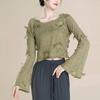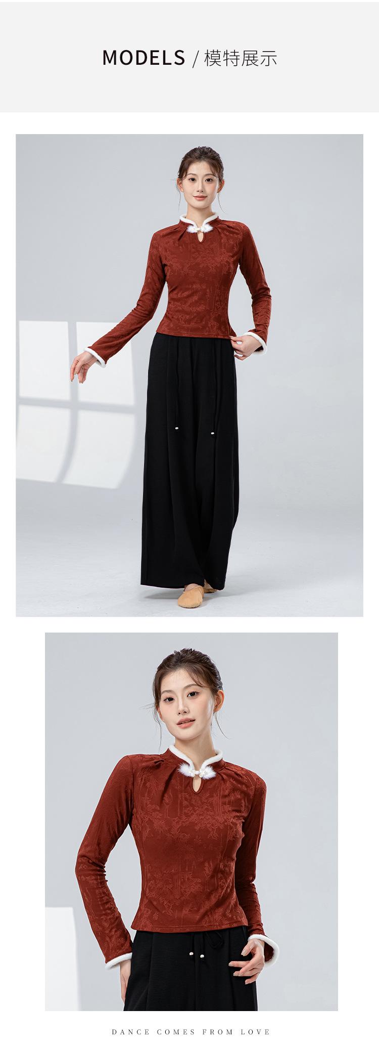 Ropa de práctica de danza clásica de estilo chino nuevo para mujer, capa base jacquard con hebilla de estilo nacional nuevo, ropa de danza corporal de danza moderna china