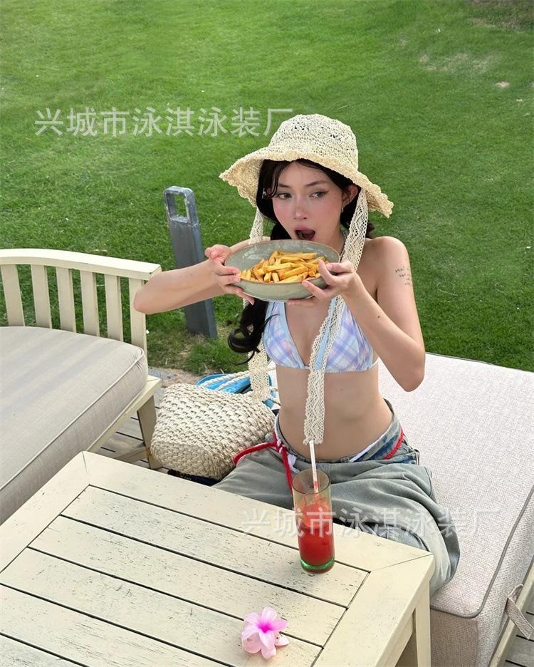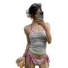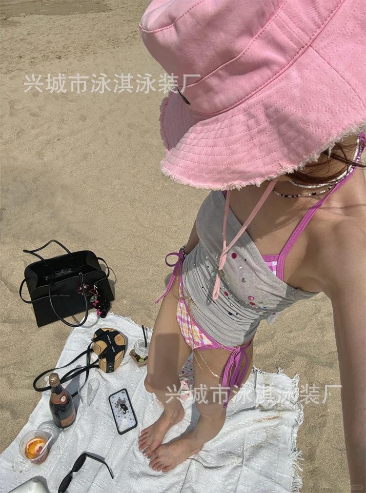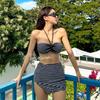 Traje de baño de bikini retro de tres puntos con diamantes de imitación para mujer.