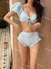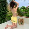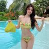 Traje de baño de tres piezas con falda dividida en el pecho y sin tirantes para niña, estilo coreano, con estampado de frutas