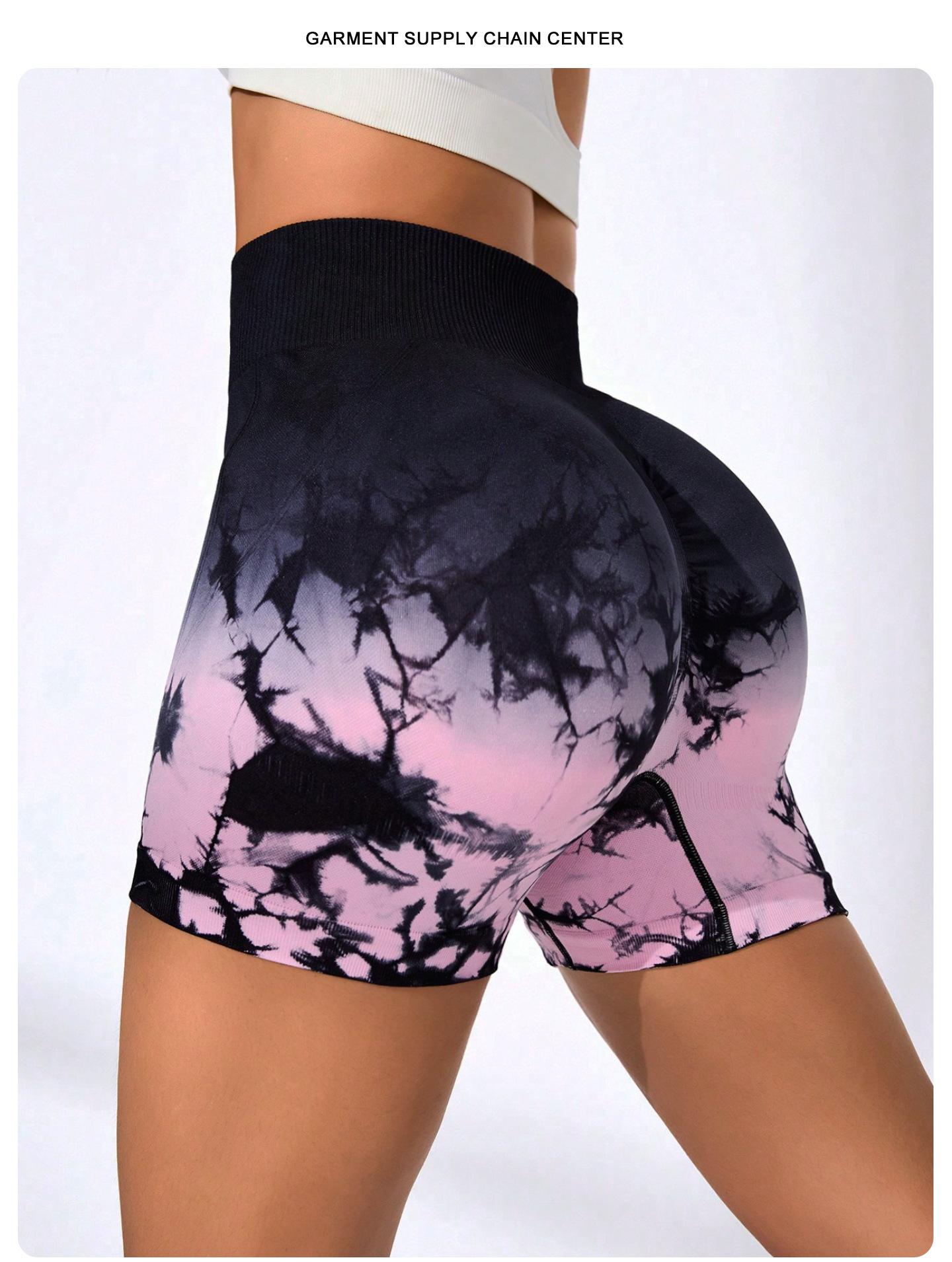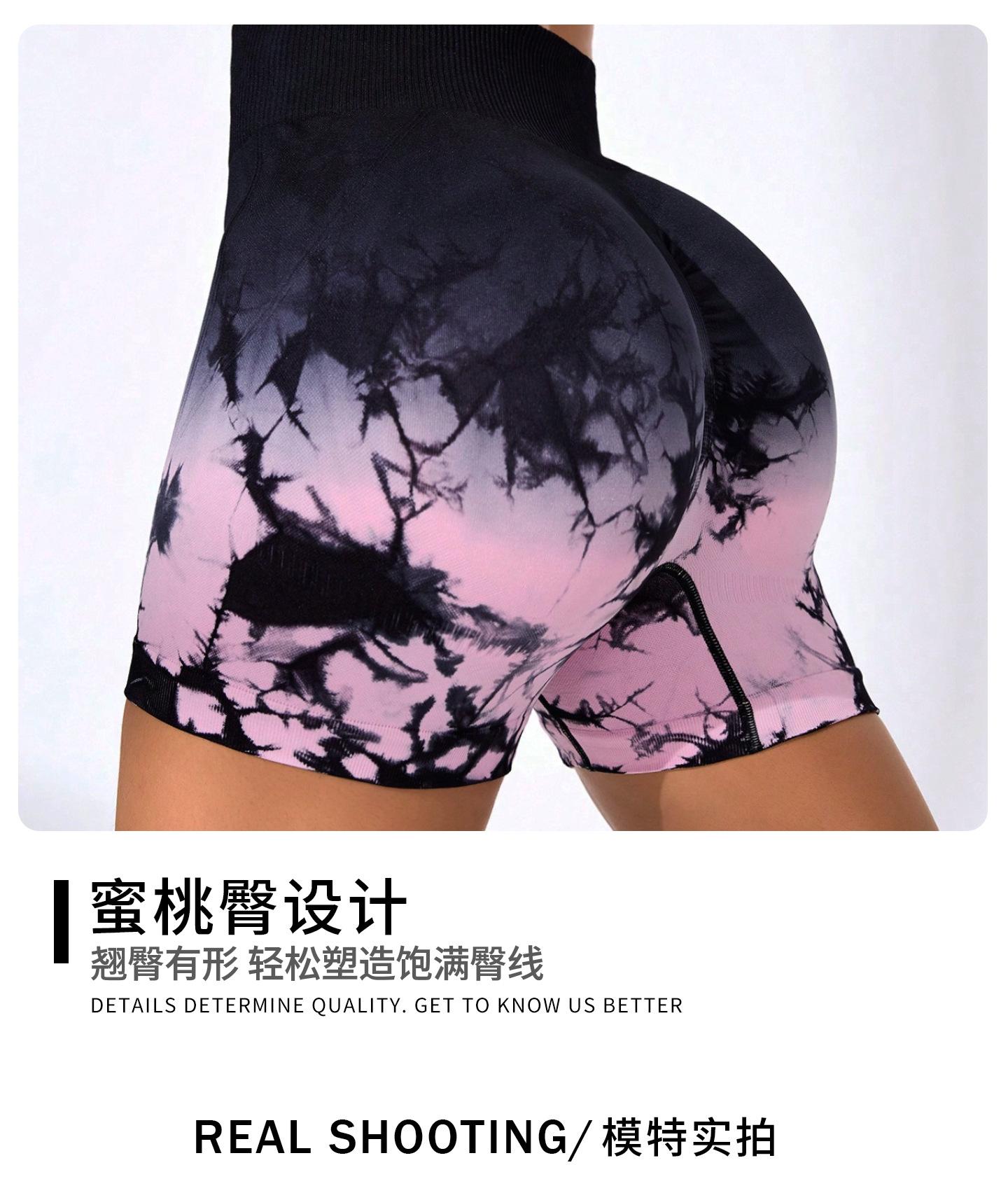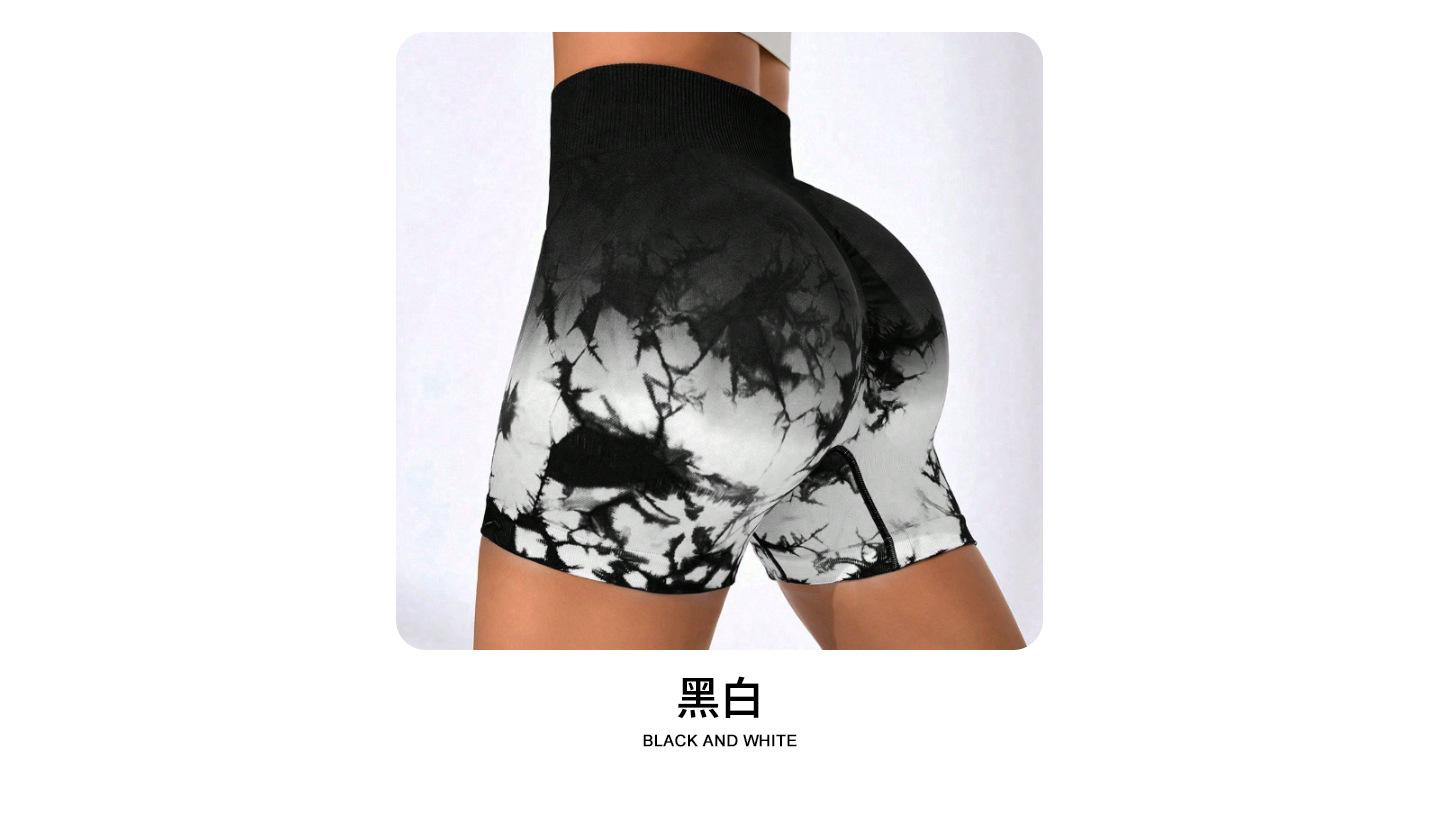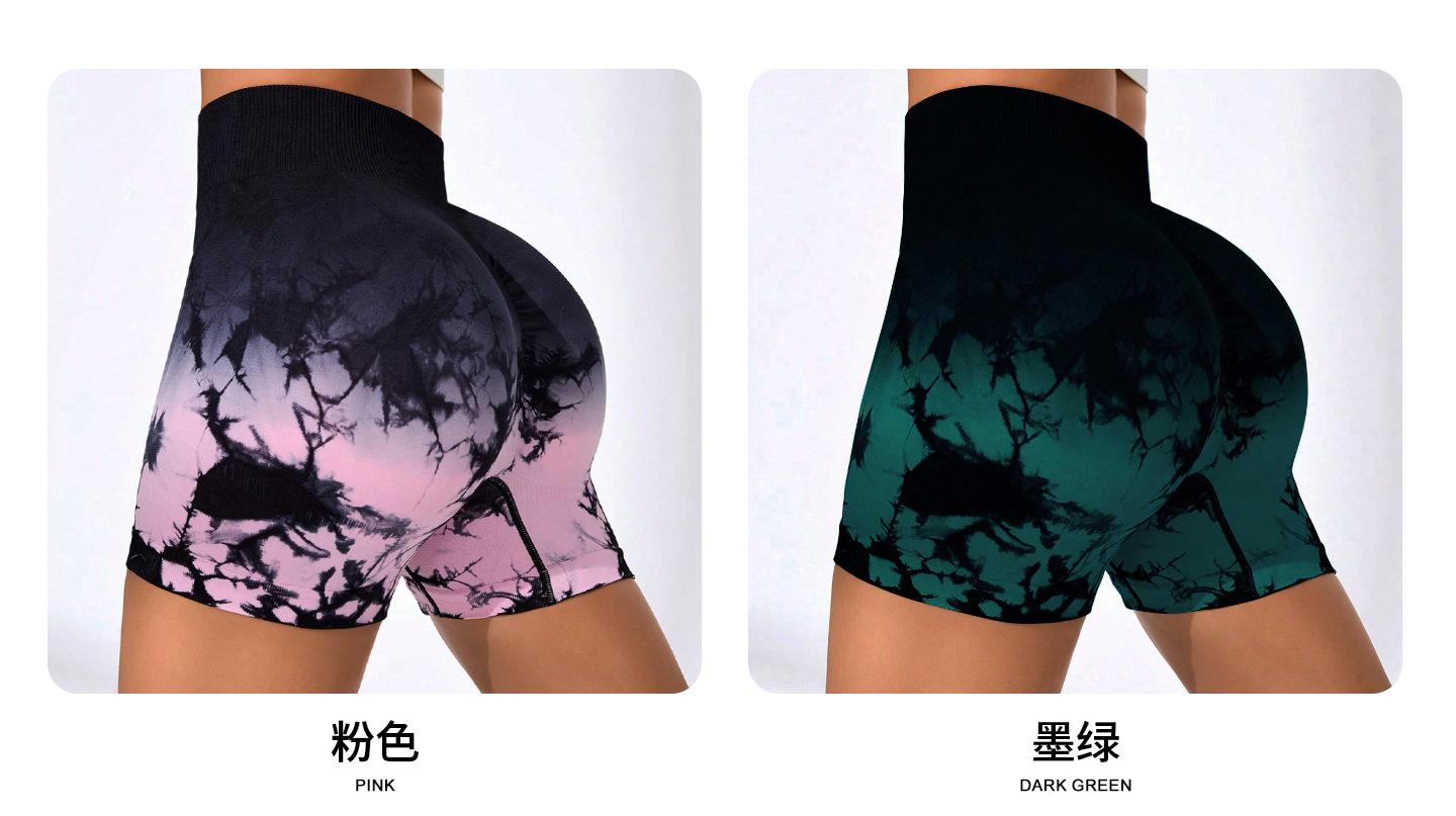 [Modelo de Muestra] Shorts de Yoga Seamless Transfronterizos Europeos y Americanos Shorts Deportivos de Fitness para Mujer Tie-Dye Shorts de Yoga Levanta Glúteos