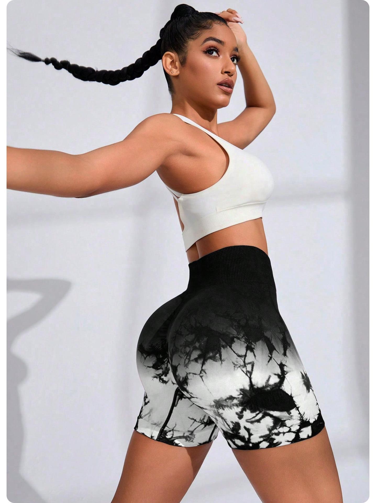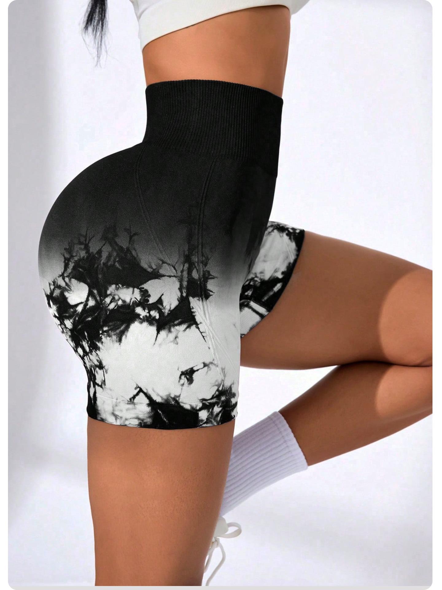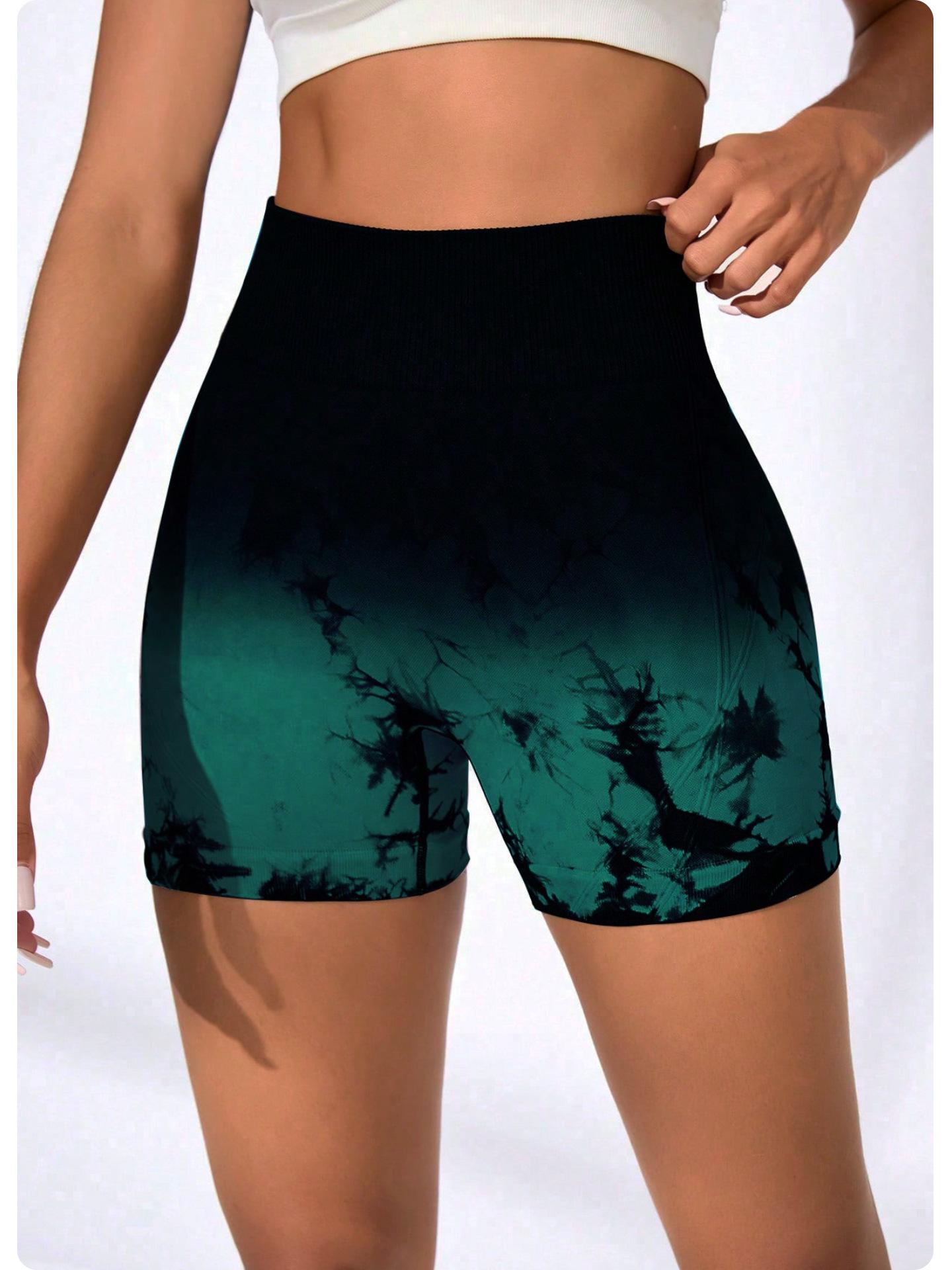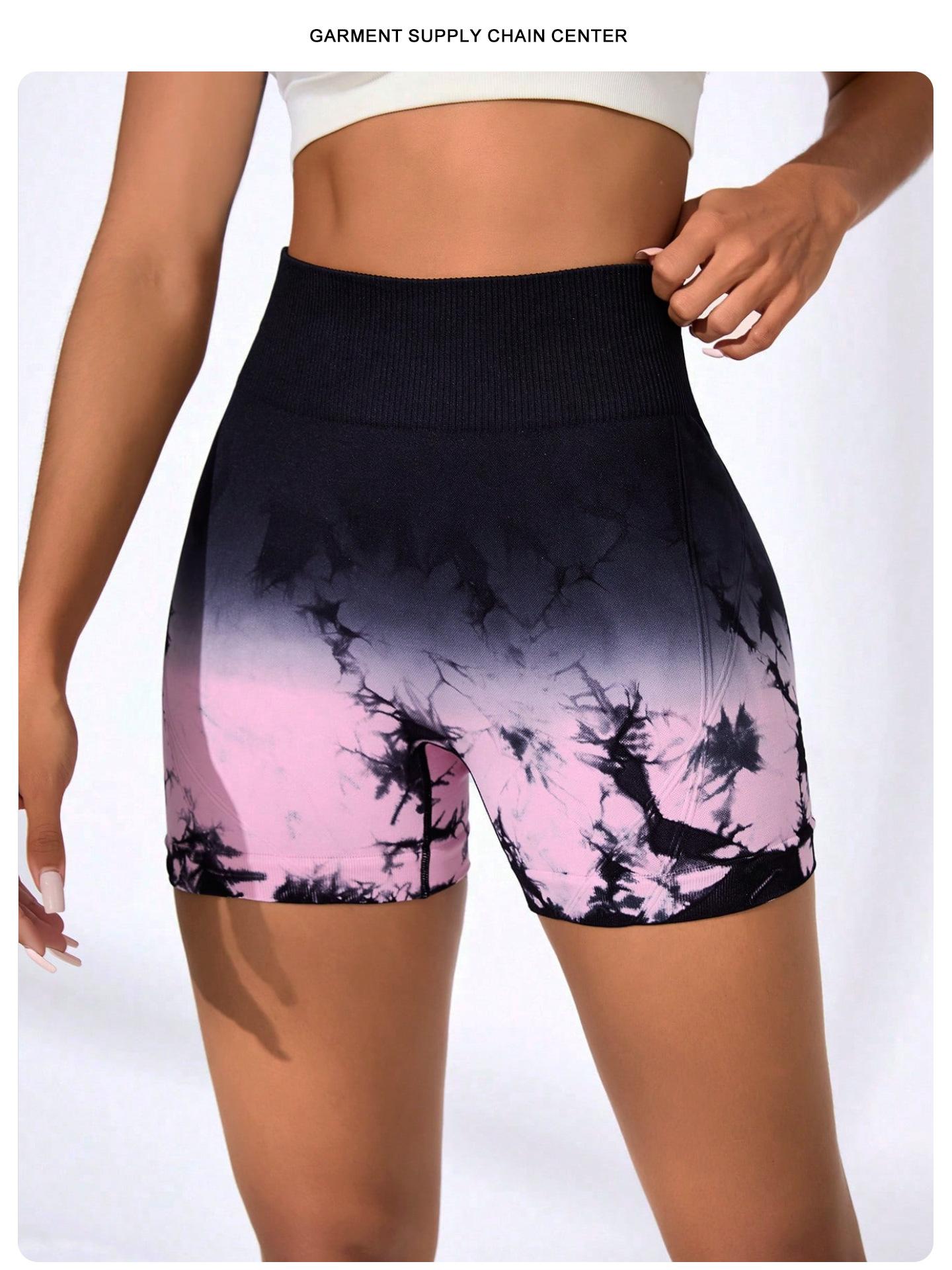 [Modelo de Muestra] Shorts de Yoga Seamless Transfronterizos Europeos y Americanos Shorts Deportivos de Fitness para Mujer Tie-Dye Shorts de Yoga Levanta Glúteos