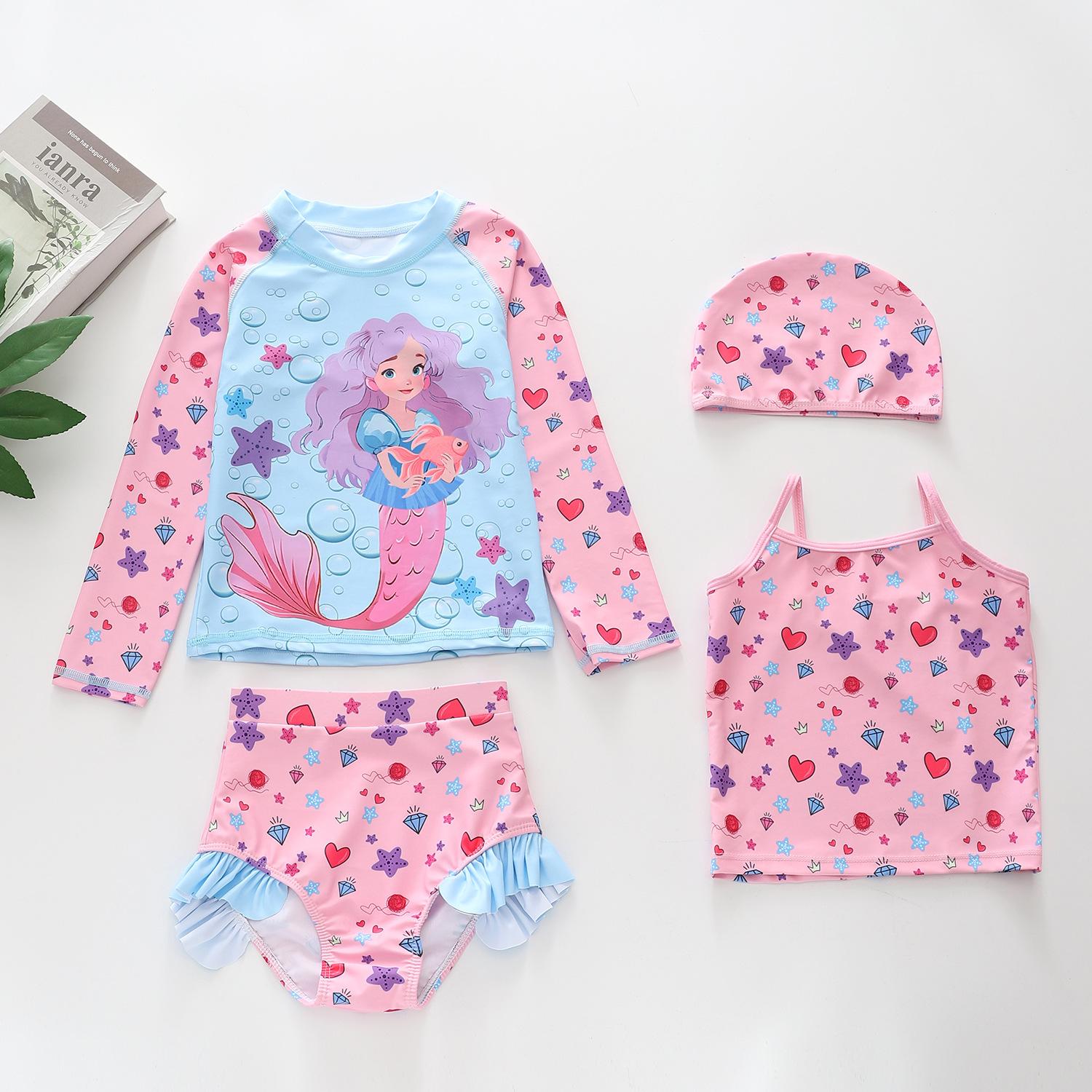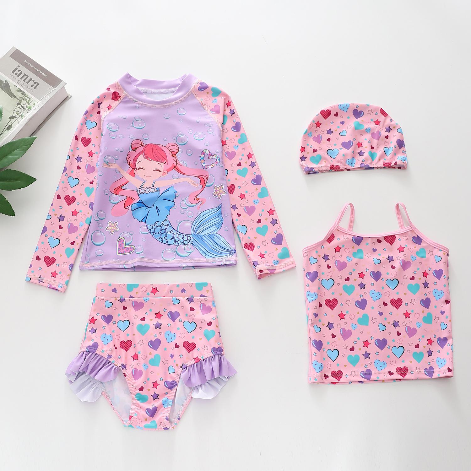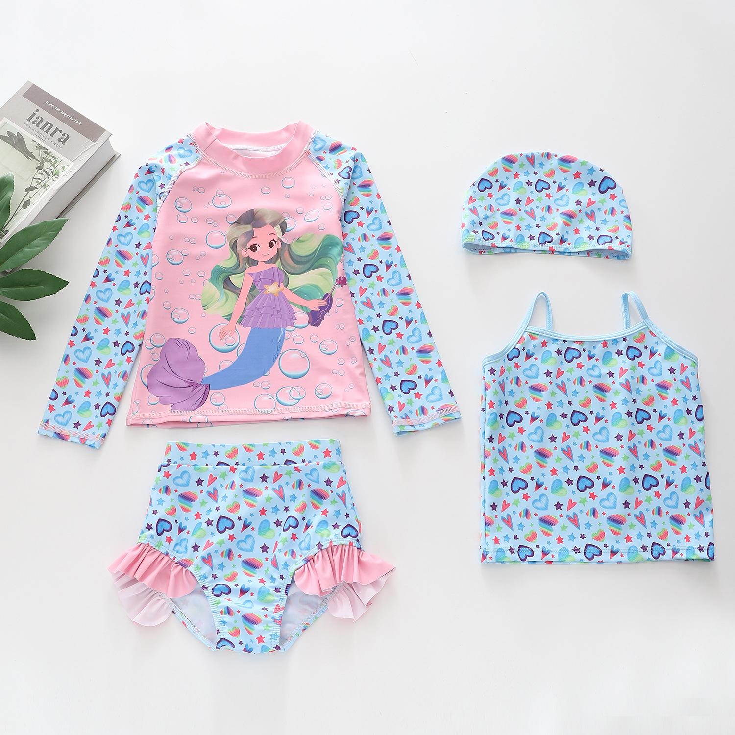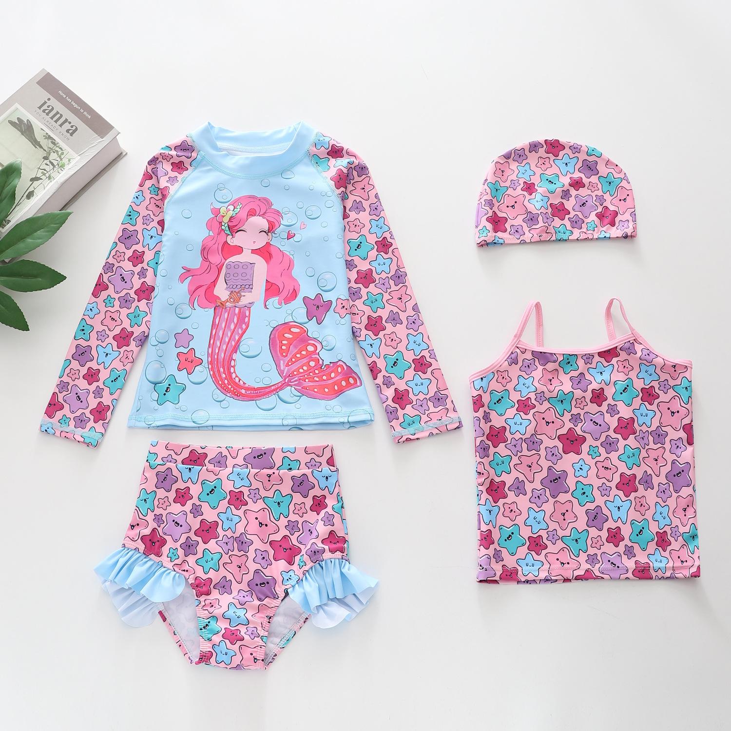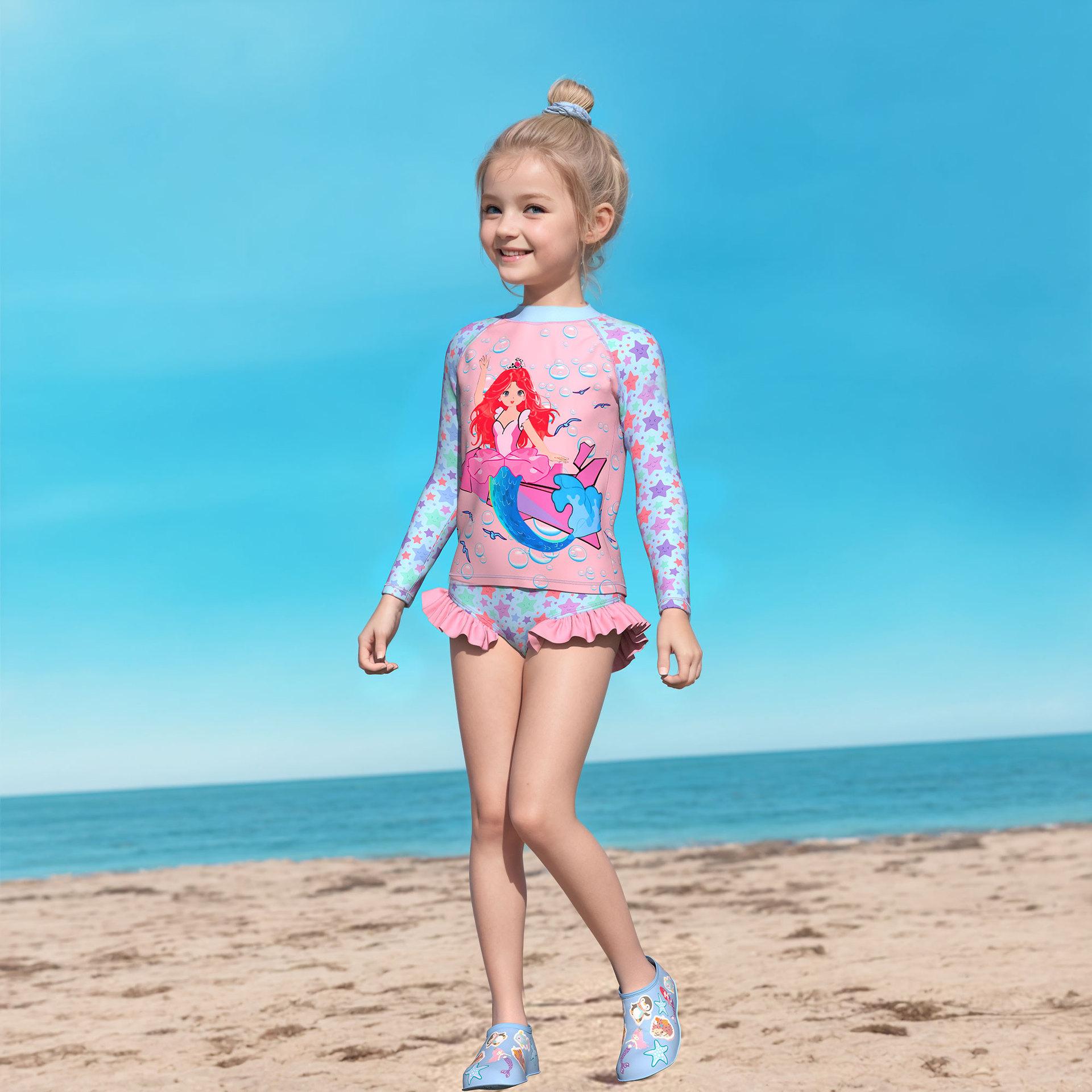 Traje de Baño Nuevo para Niños 2024 Traje de Baño para Niñas Traje de Escamas de Sirena Traje de Baño Separado de Manga Larga con Protección Solar para Estudiantes