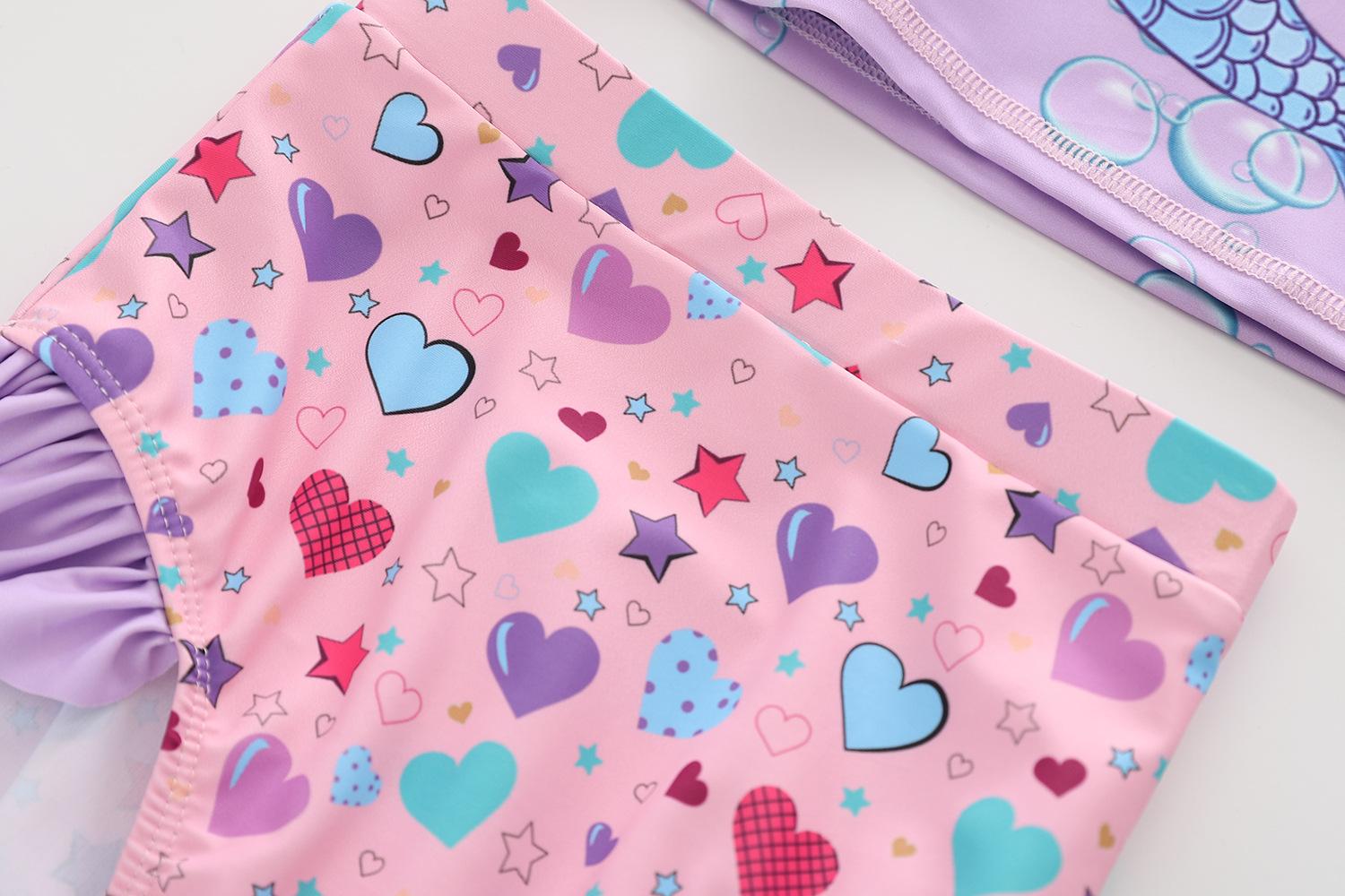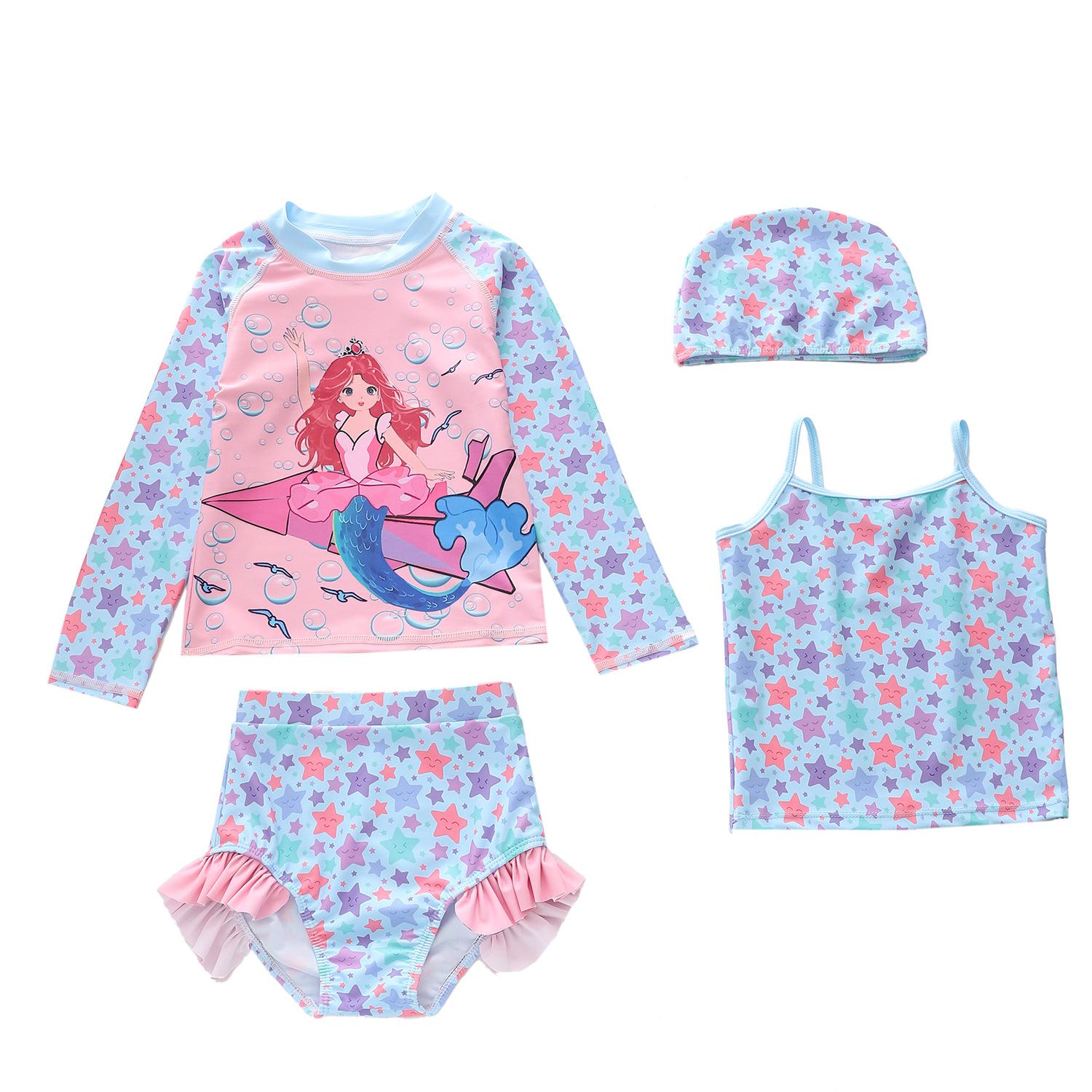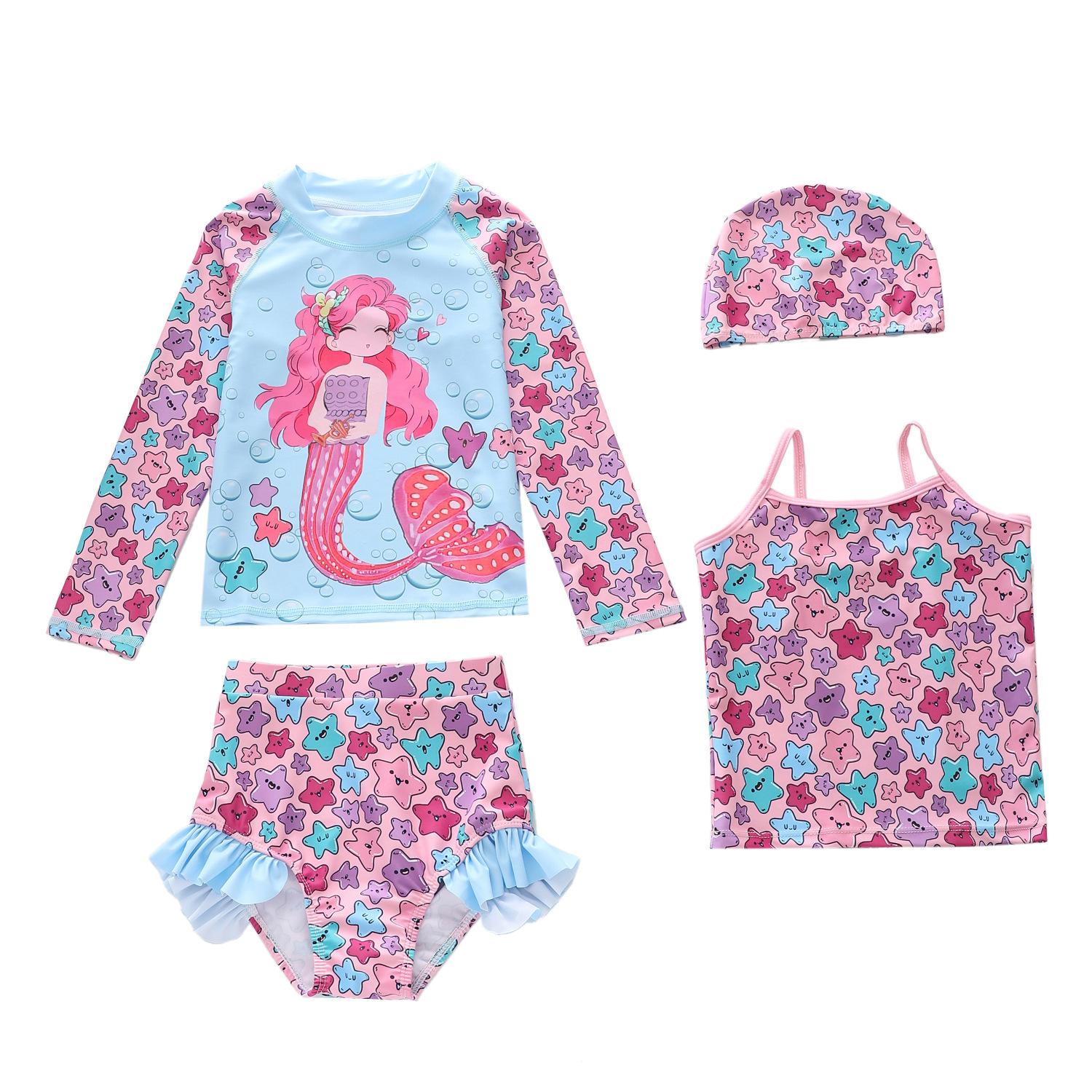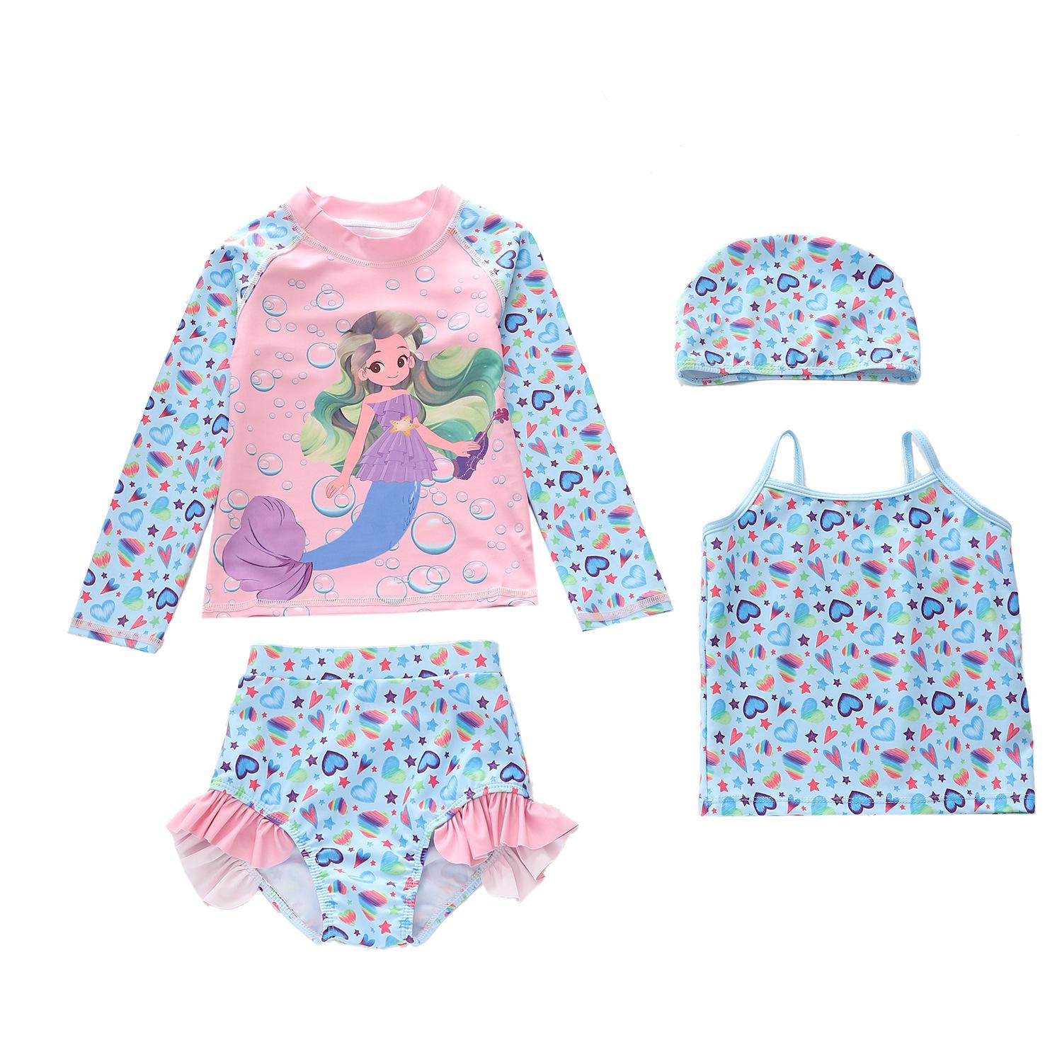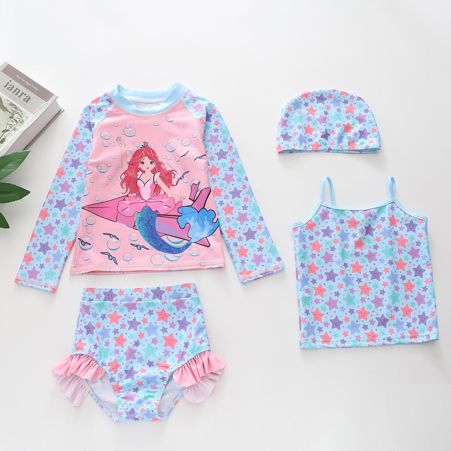 Traje de Baño Nuevo para Niños 2024 Traje de Baño para Niñas Traje de Escamas de Sirena Traje de Baño Separado de Manga Larga con Protección Solar para Estudiantes