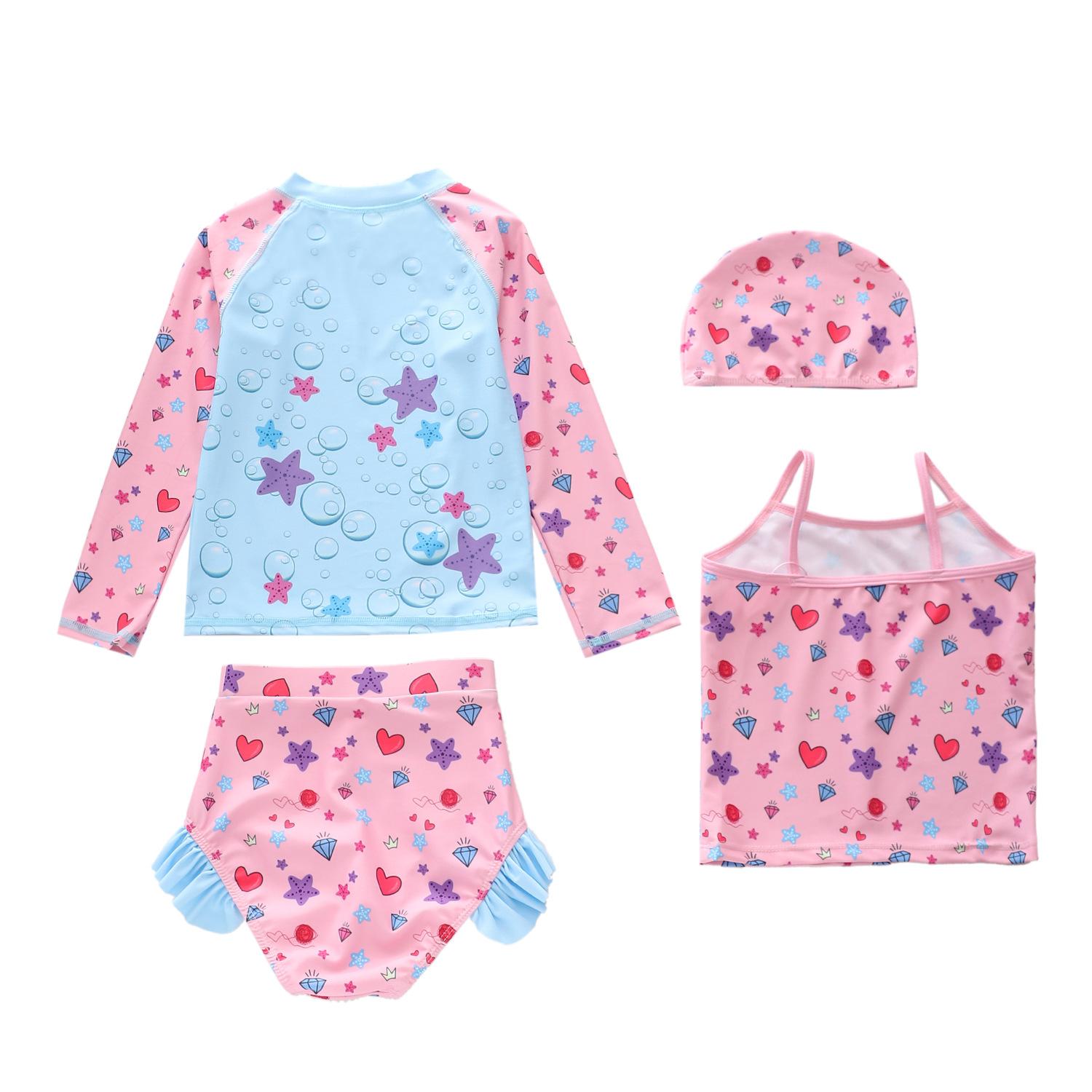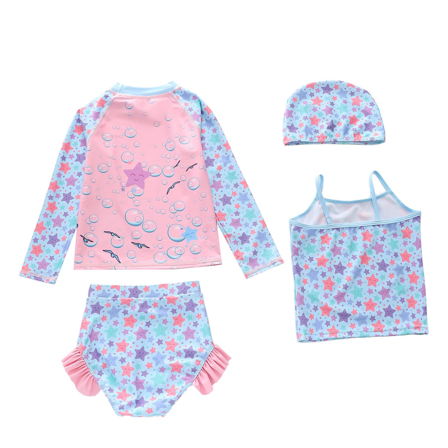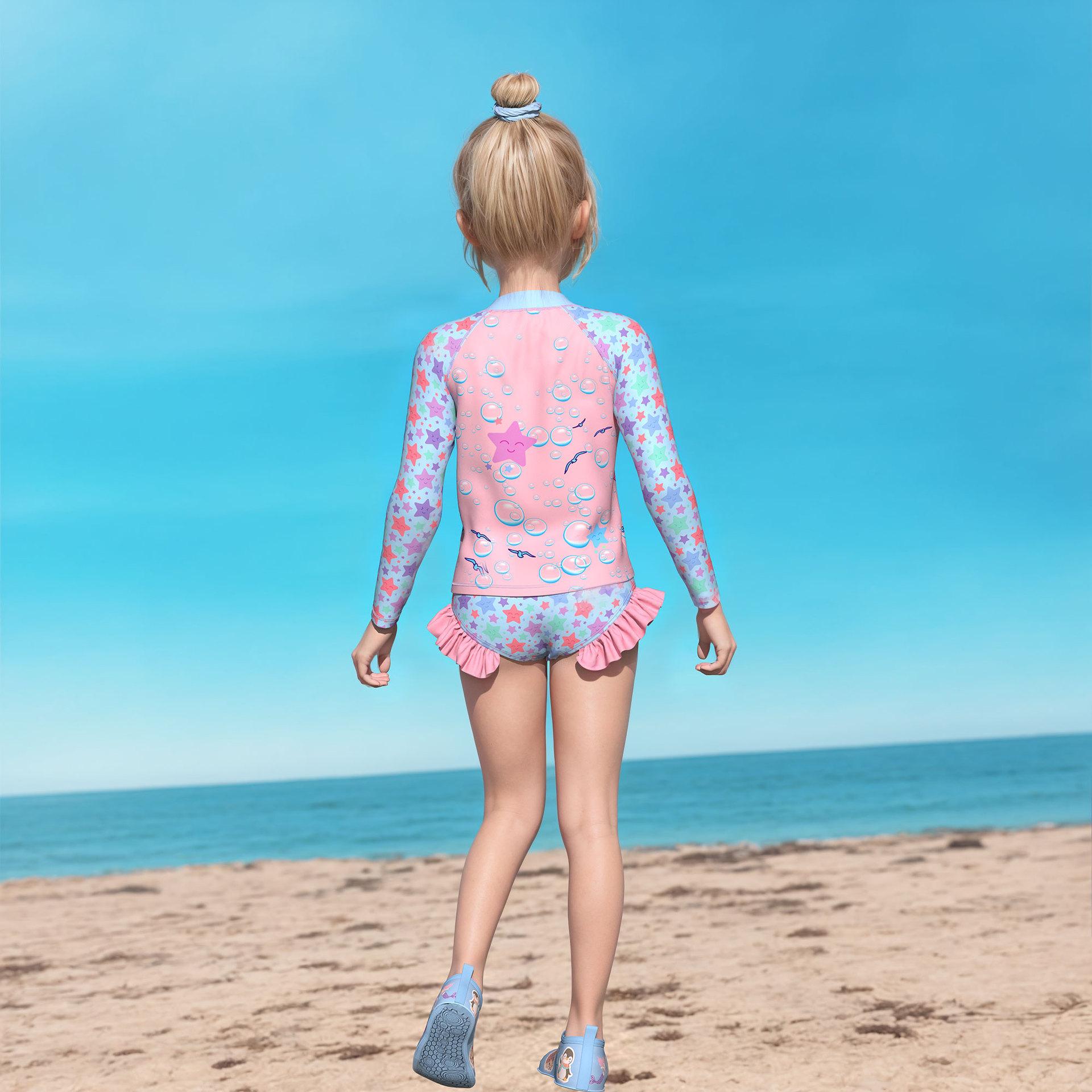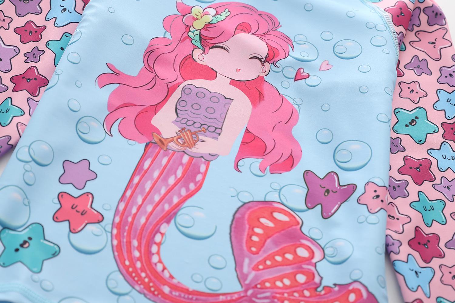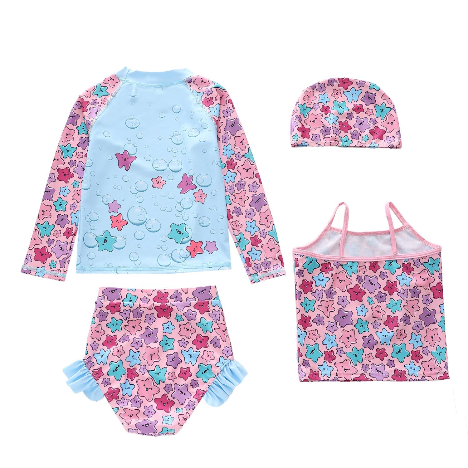 Traje de Baño Nuevo para Niños 2024 Traje de Baño para Niñas Traje de Escamas de Sirena Traje de Baño Separado de Manga Larga con Protección Solar para Estudiantes