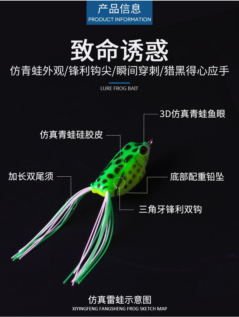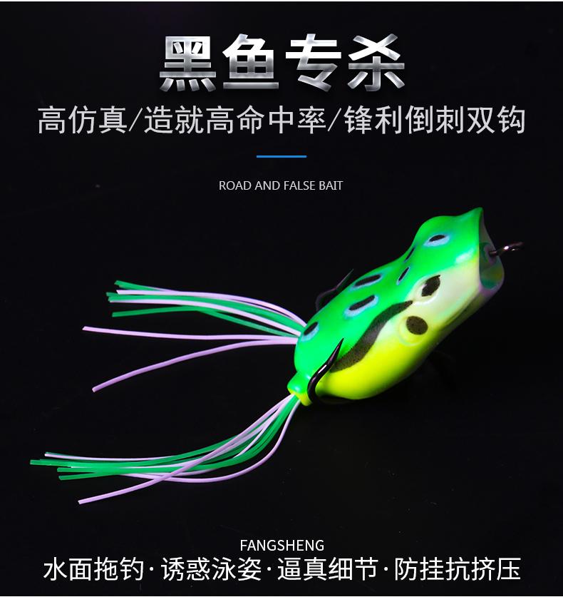 Cebo Chuangwei Luya, traje de rana trueno, pez negro, mata truenos distantes, pesca fuerte, rana de lentejuelas biónica modificada negra, cebo falso