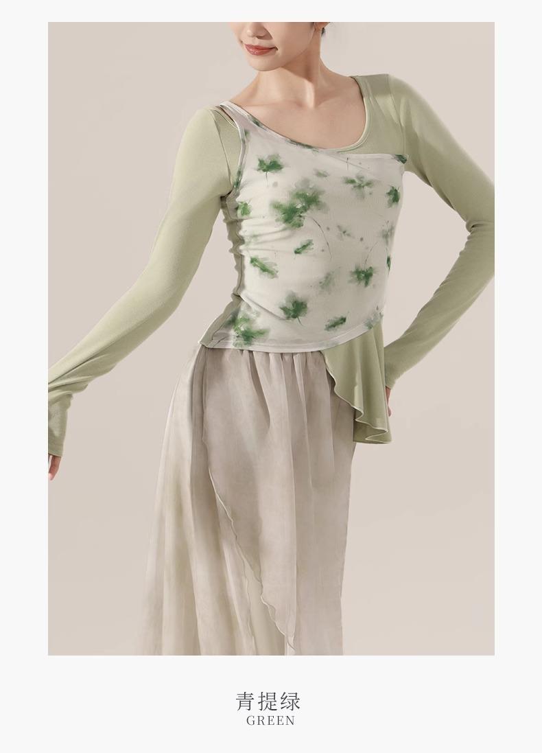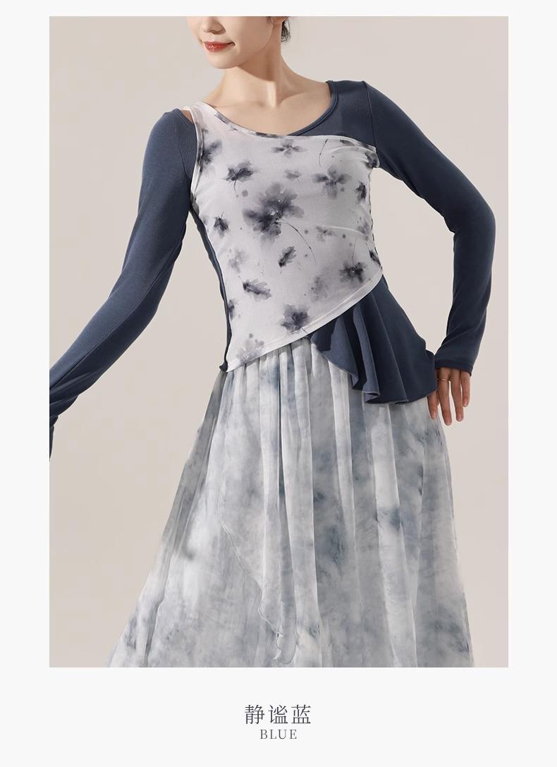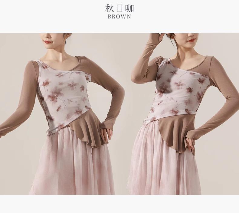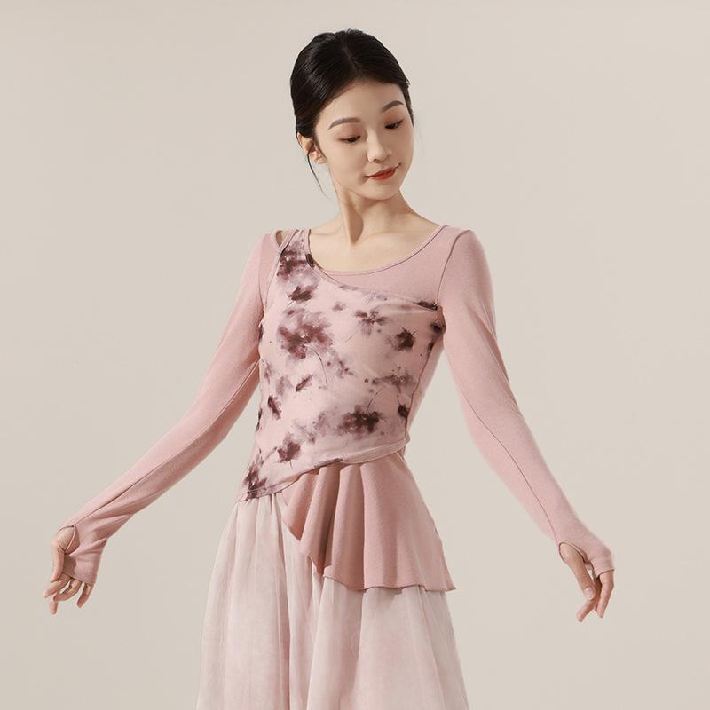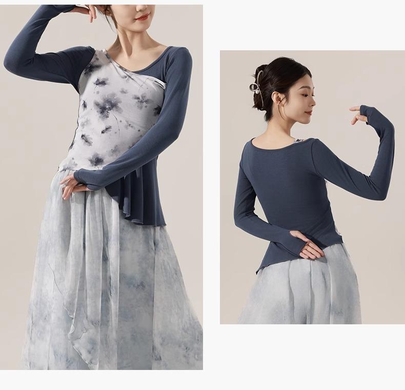 Ropa de Baile para Maestras Empalme Estampado Adulto Nuevo Moderno Práctica Corporal Danza Clásica China Tops de Manga Larga