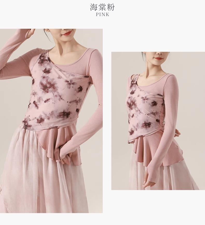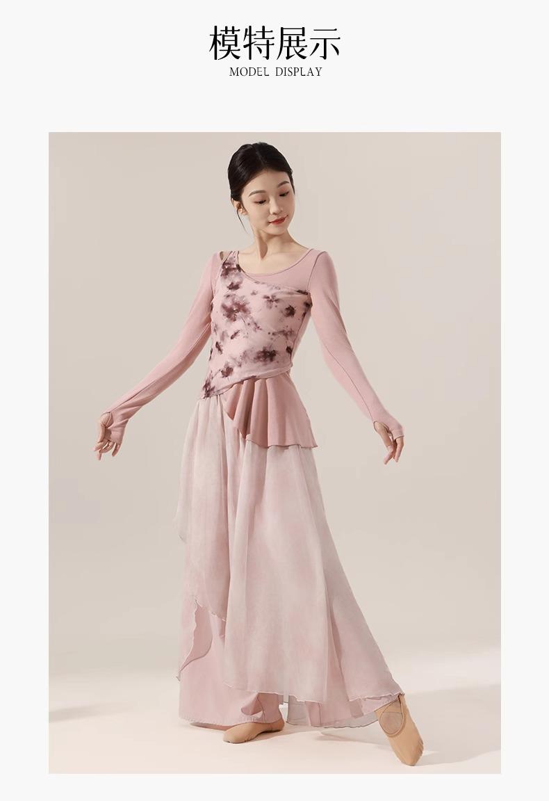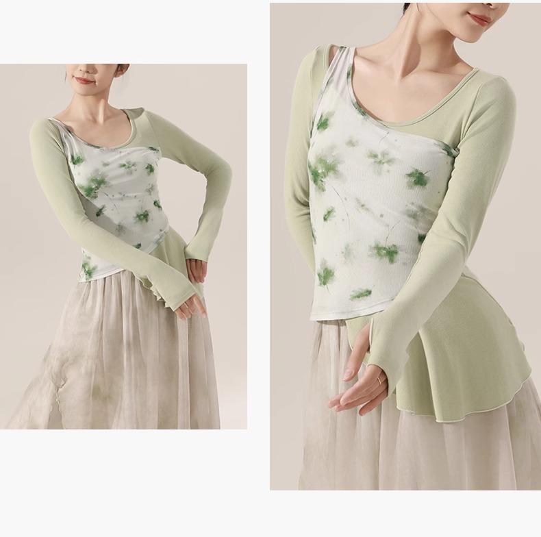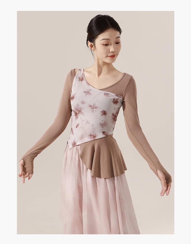 Ropa de Baile para Maestras Empalme Estampado Adulto Nuevo Moderno Práctica Corporal Danza Clásica China Tops de Manga Larga