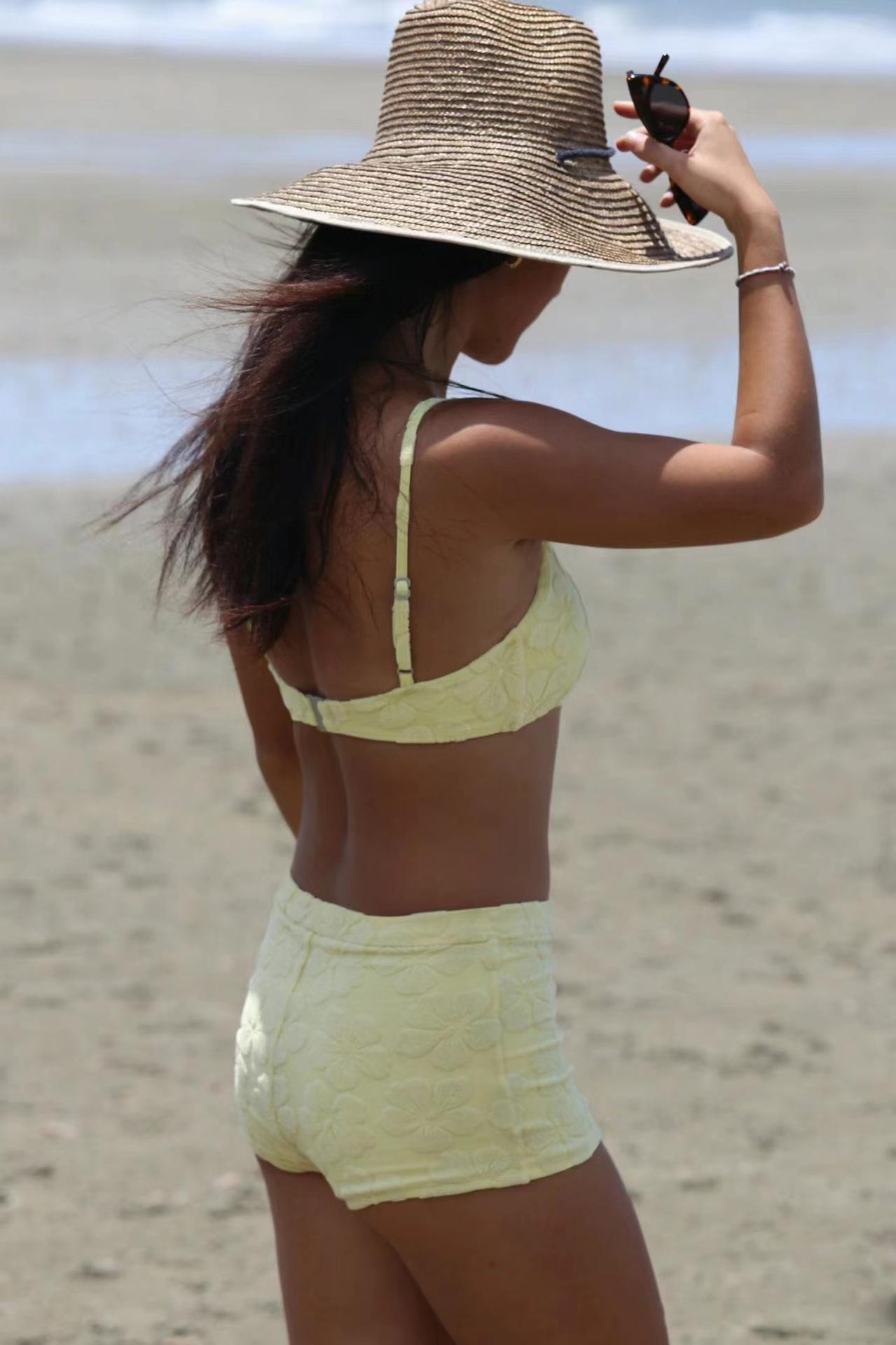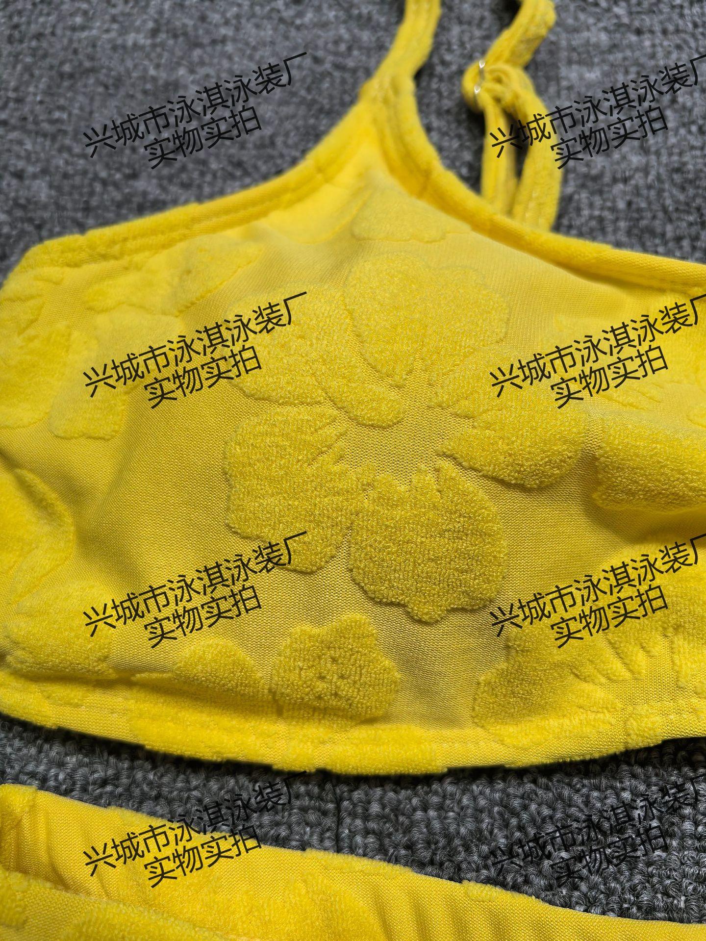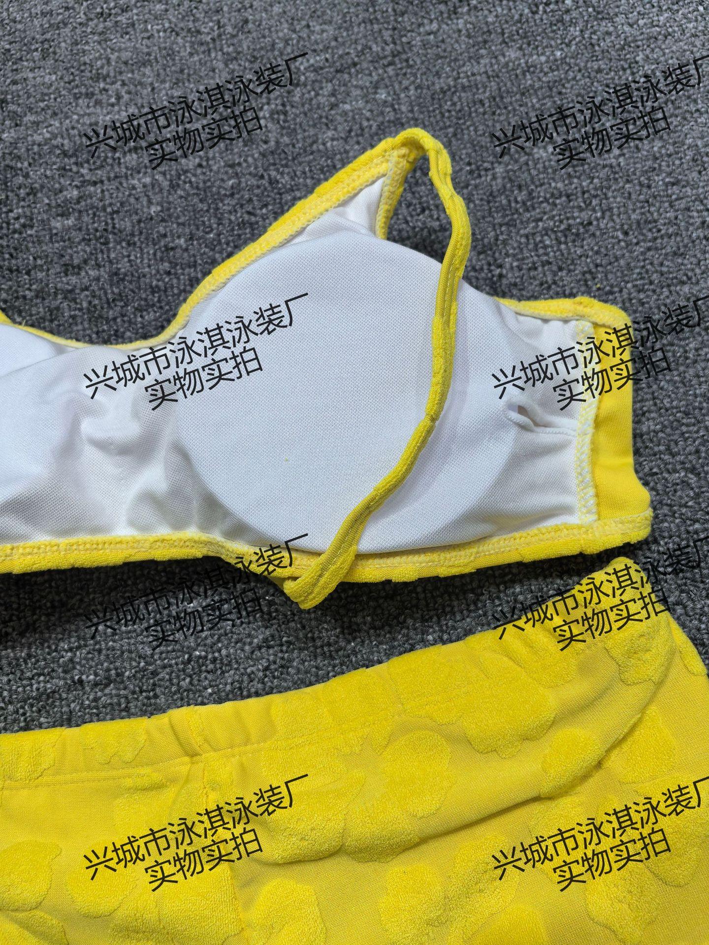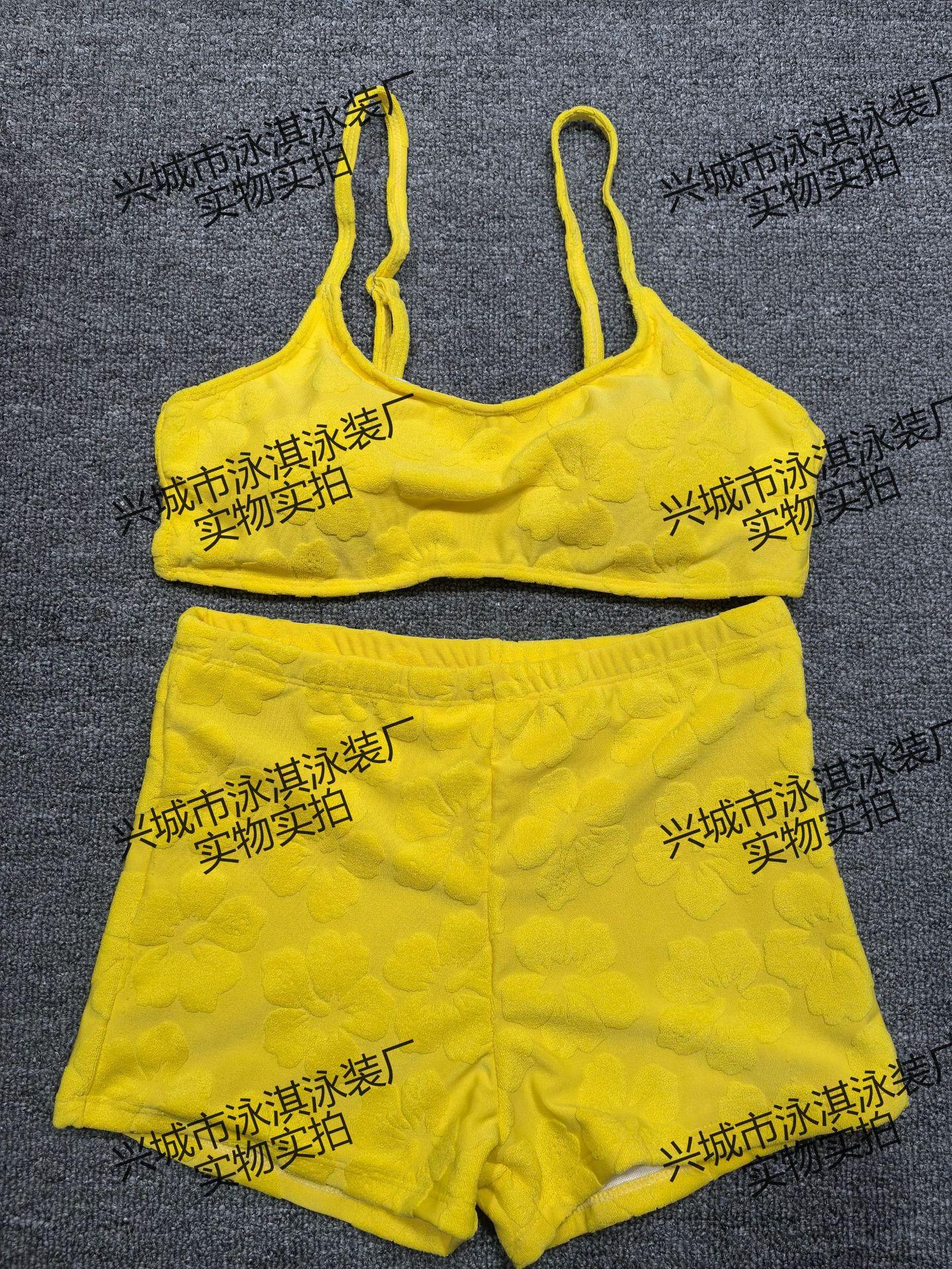 Traje de baño de alta calidad con estampado tridimensional de pecho pequeño para niña, cintura alta, adelgazante, dividido, para vacaciones en aguas termales.