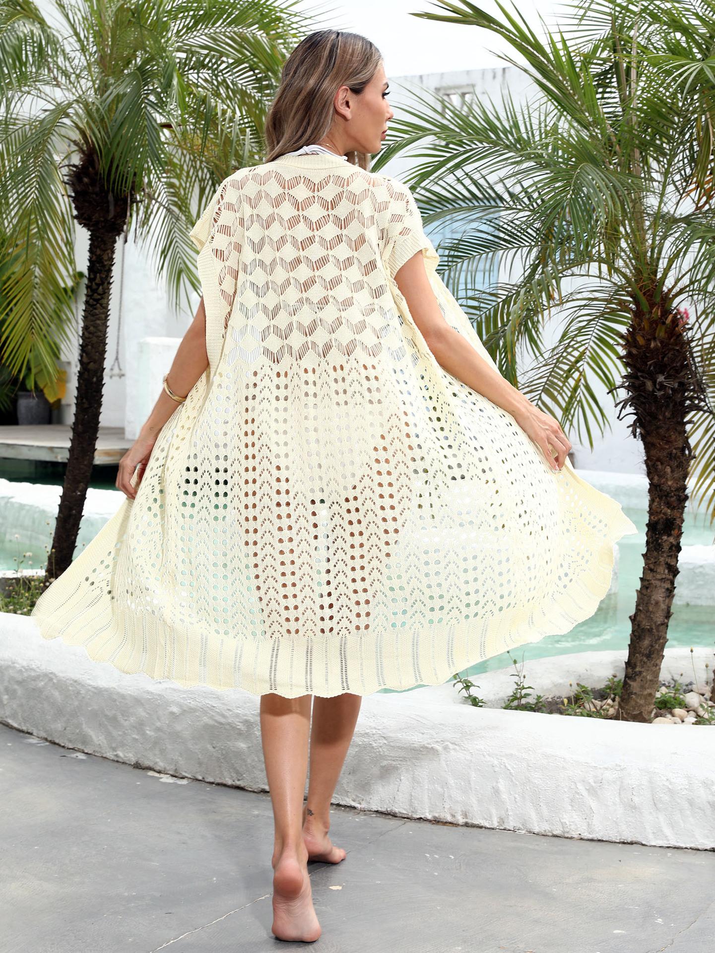 Cárdigan Tejido para Mujer Transfronterizo Europeo y Americano para Mujer Sexy Hueco Playa Protección Solar Blusa Chaqueta Casual A24008