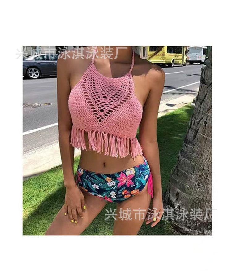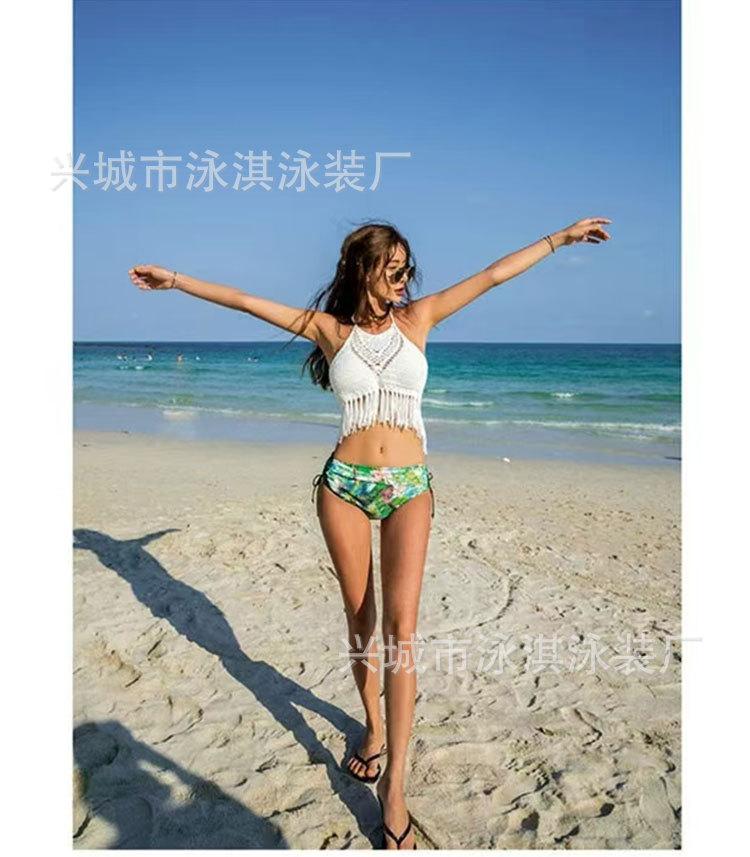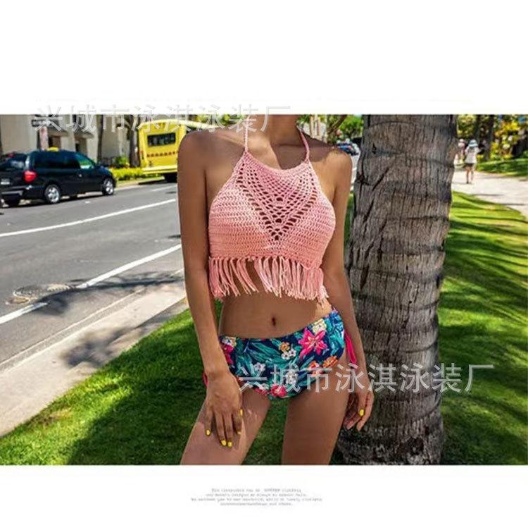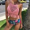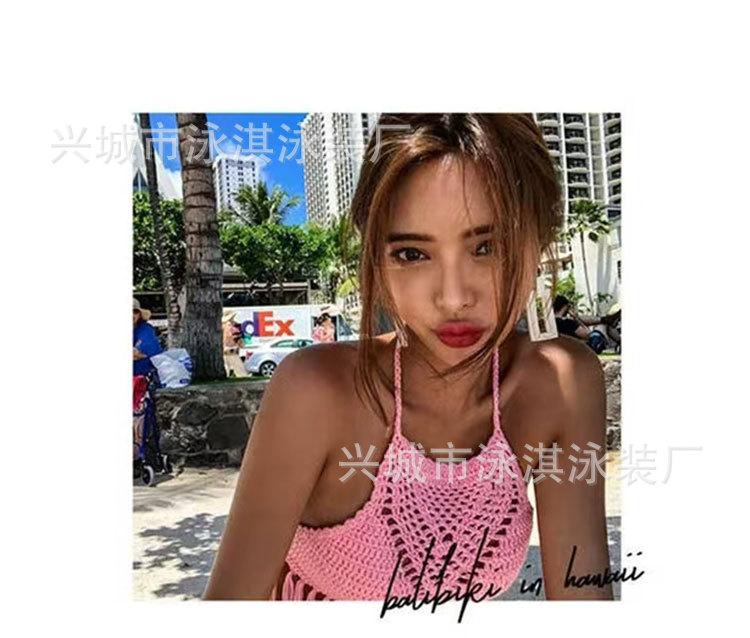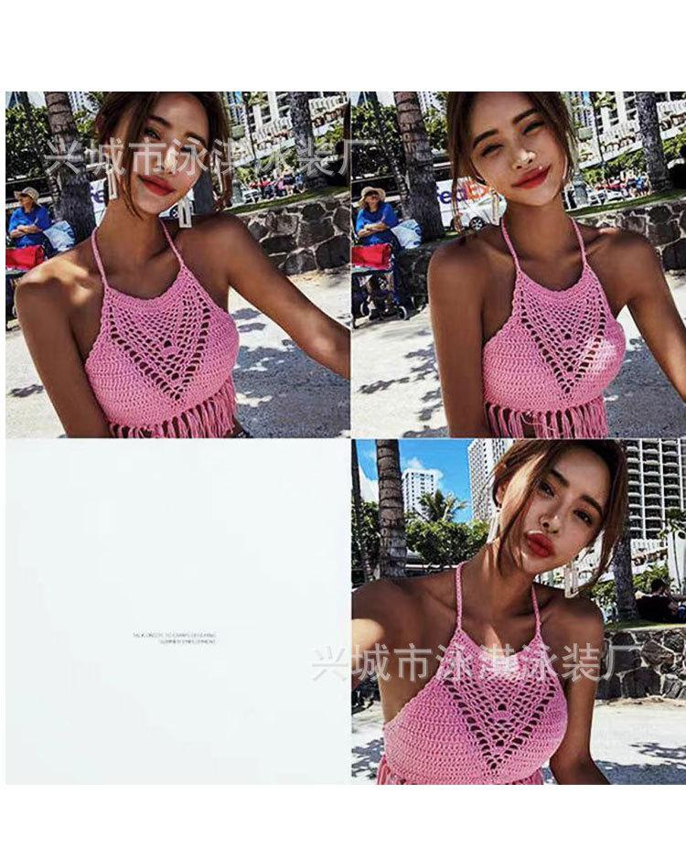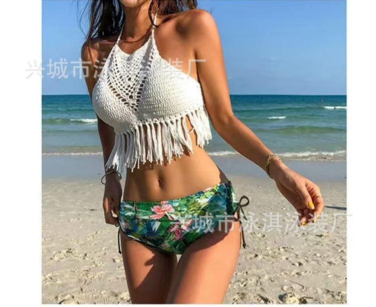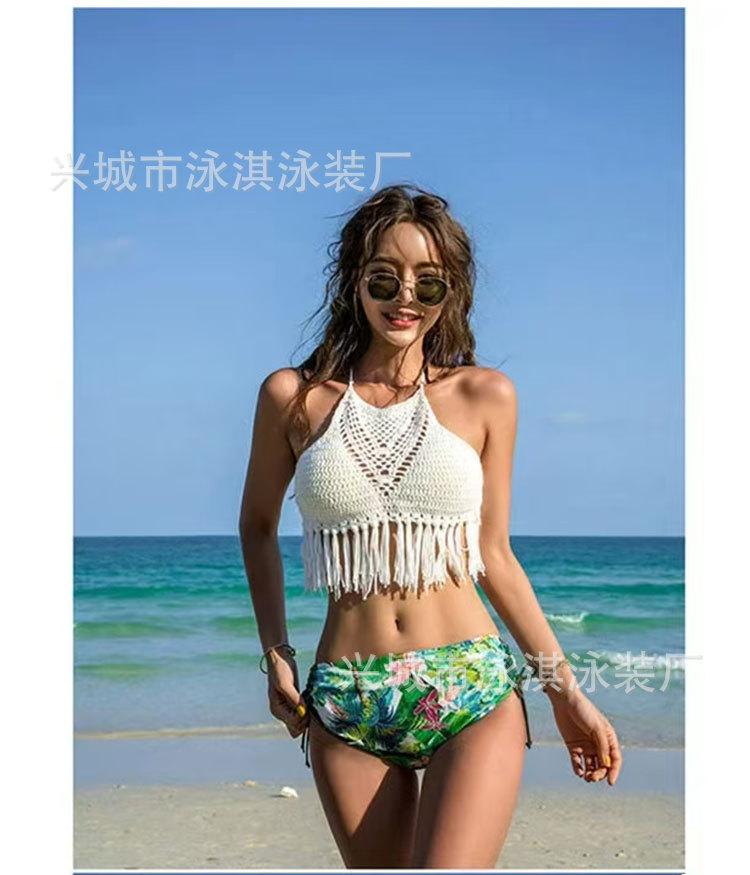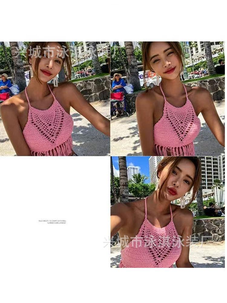Traje de Baño para Mujer de Alta Gama Estilo Bohemio de Deseo Puro con Borlas Tejido Pequeño Pecho Sexy Hueco Chica Picante Abertura Traje de Baño