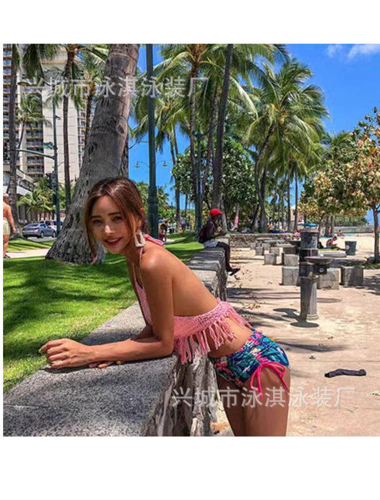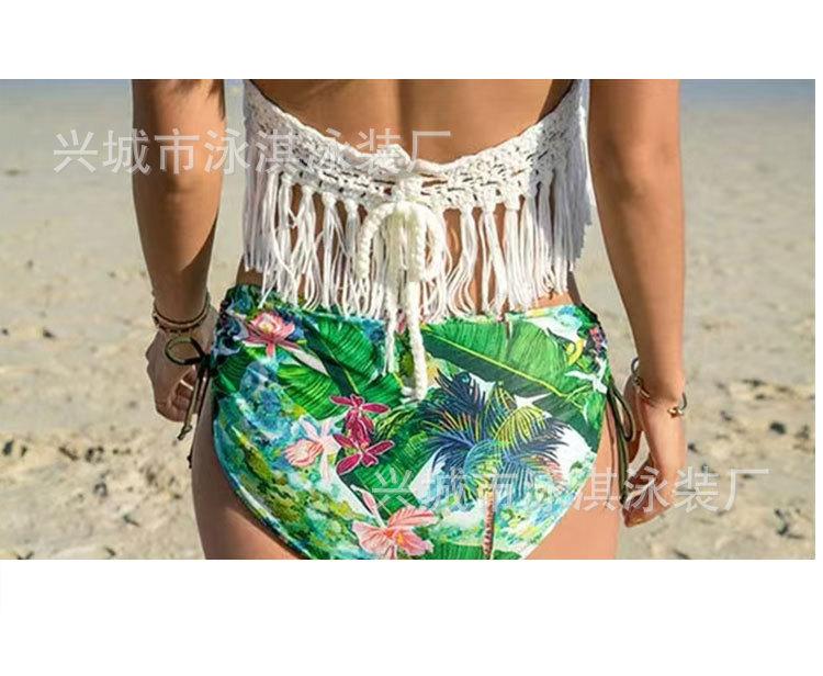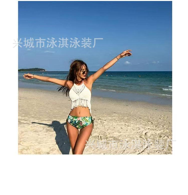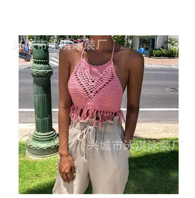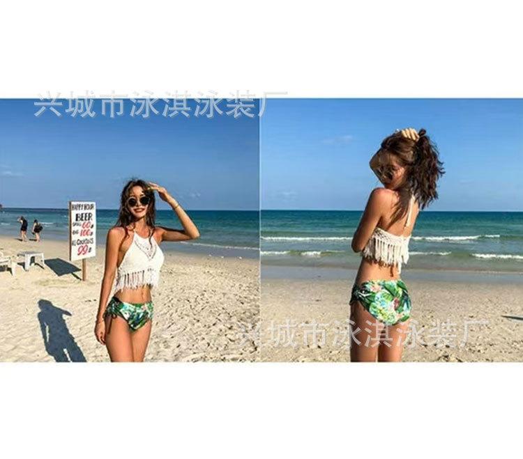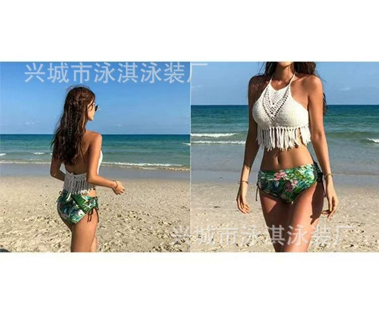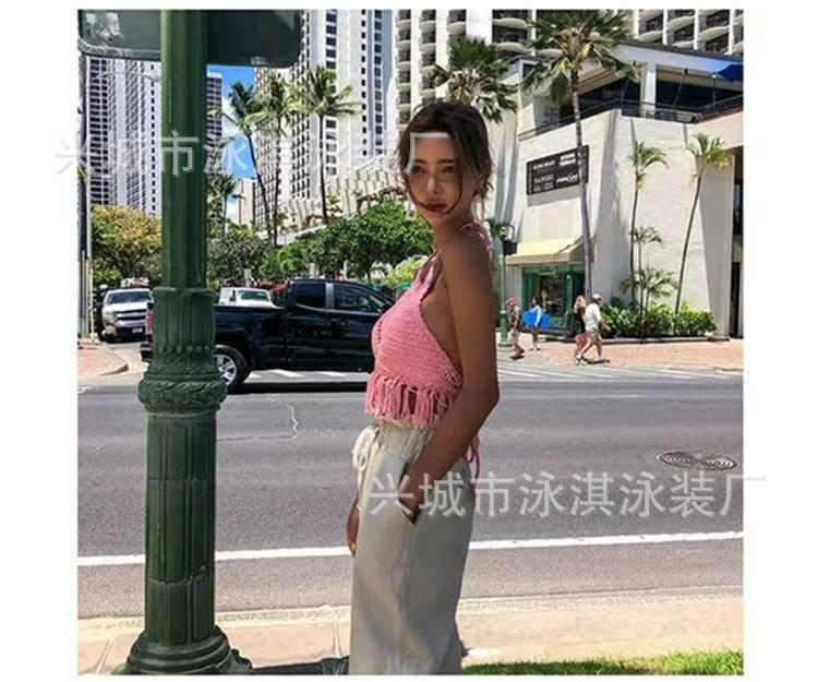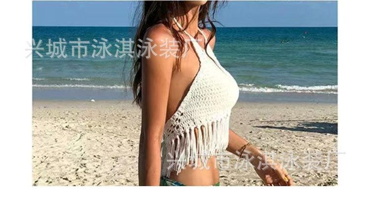 Traje de Baño para Mujer de Alta Gama Estilo Bohemio de Deseo Puro con Borlas Tejido Pequeño Pecho Sexy Hueco Chica Picante Abertura Traje de Baño