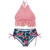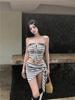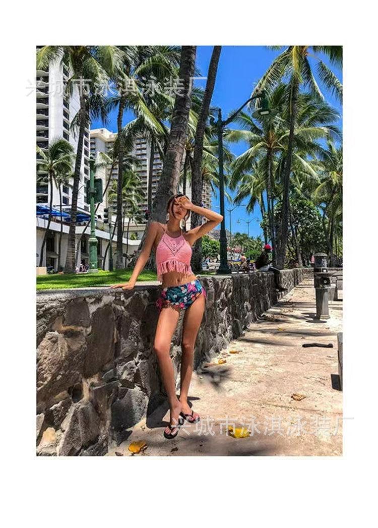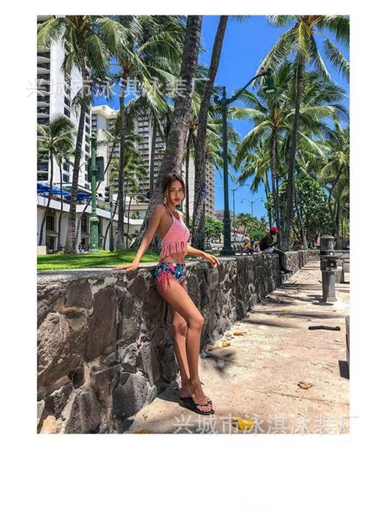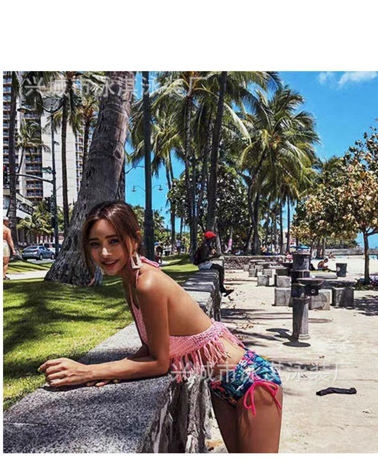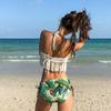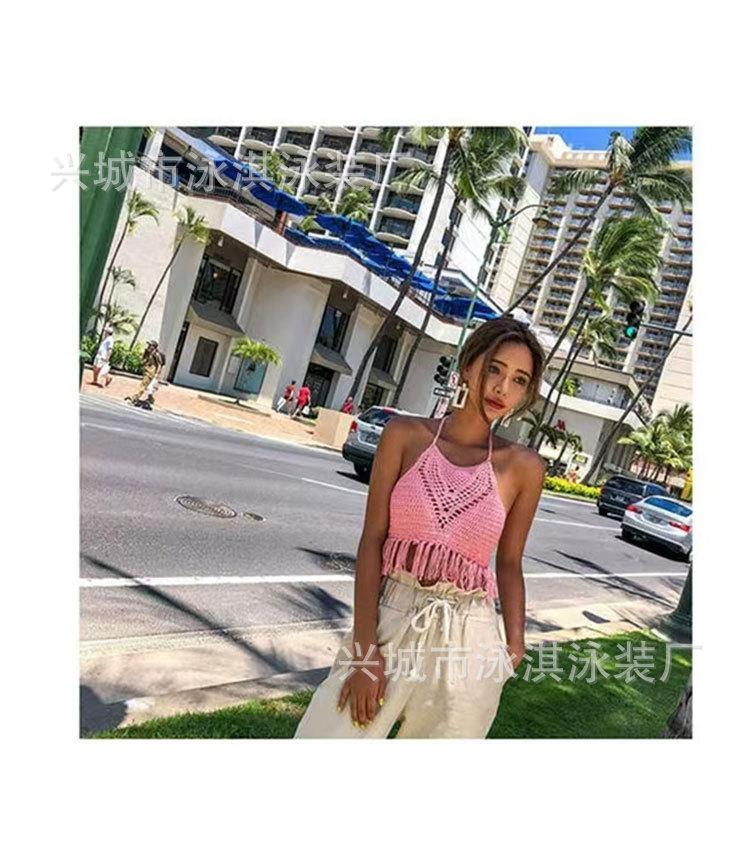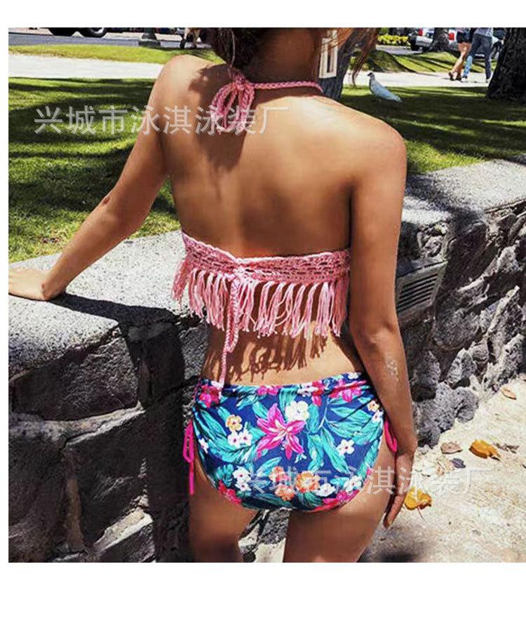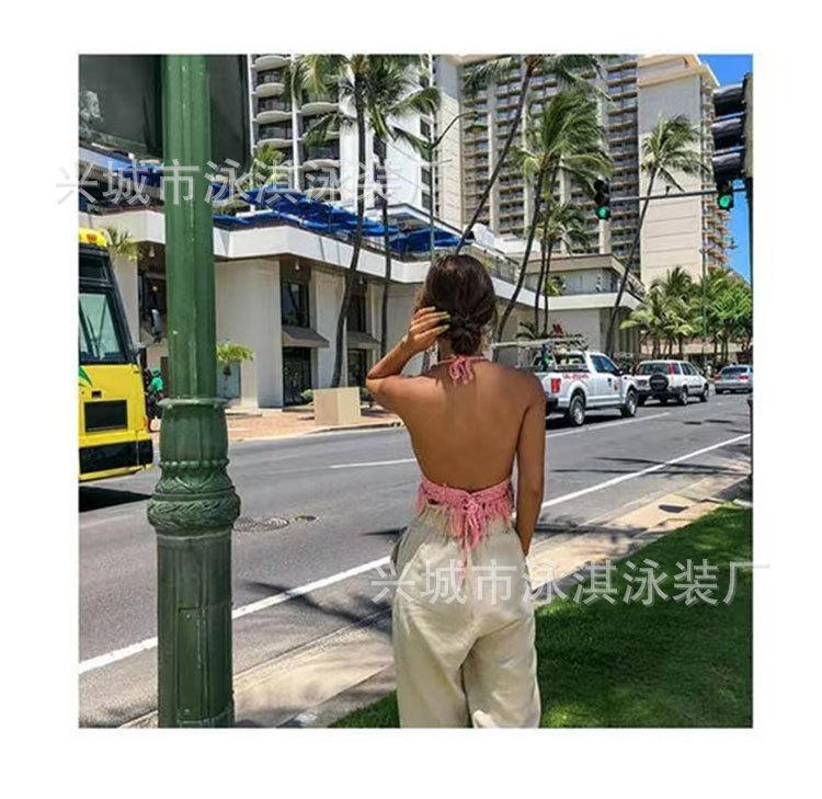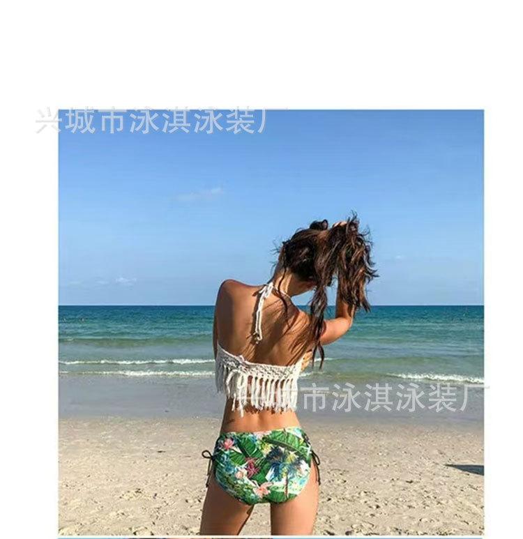 Traje de Baño para Mujer de Alta Gama Estilo Bohemio de Deseo Puro con Borlas Tejido Pequeño Pecho Sexy Hueco Chica Picante Abertura Traje de Baño