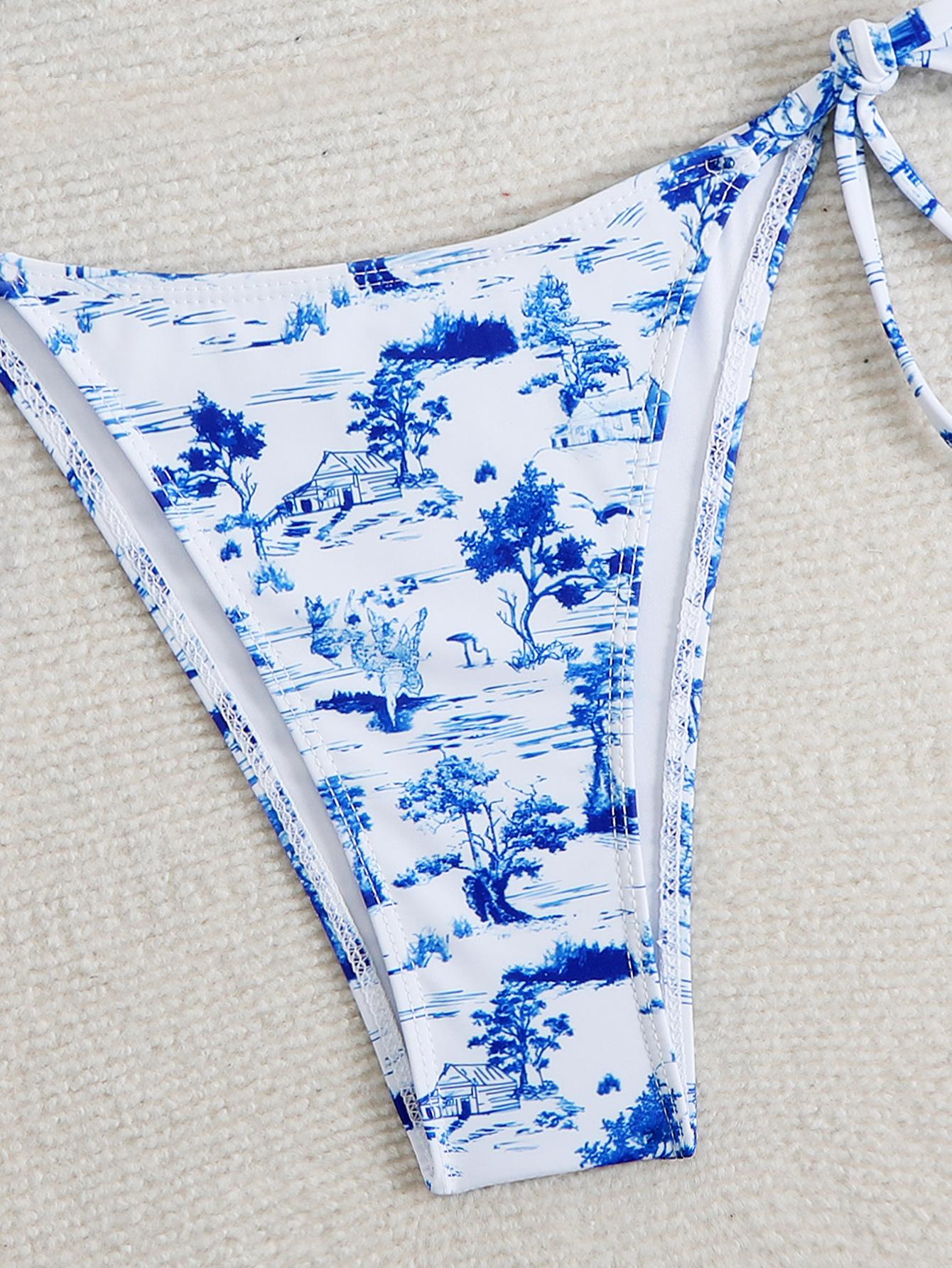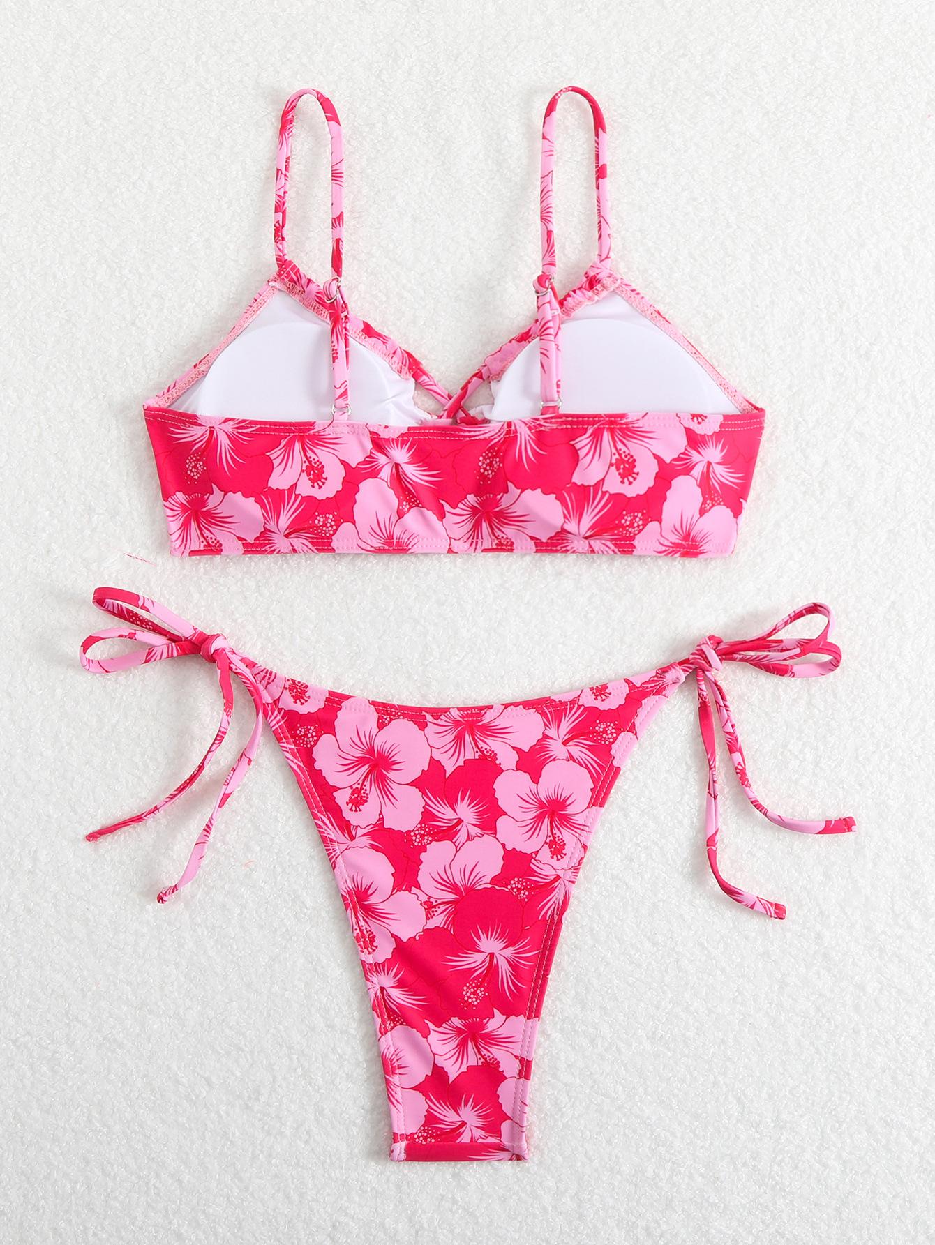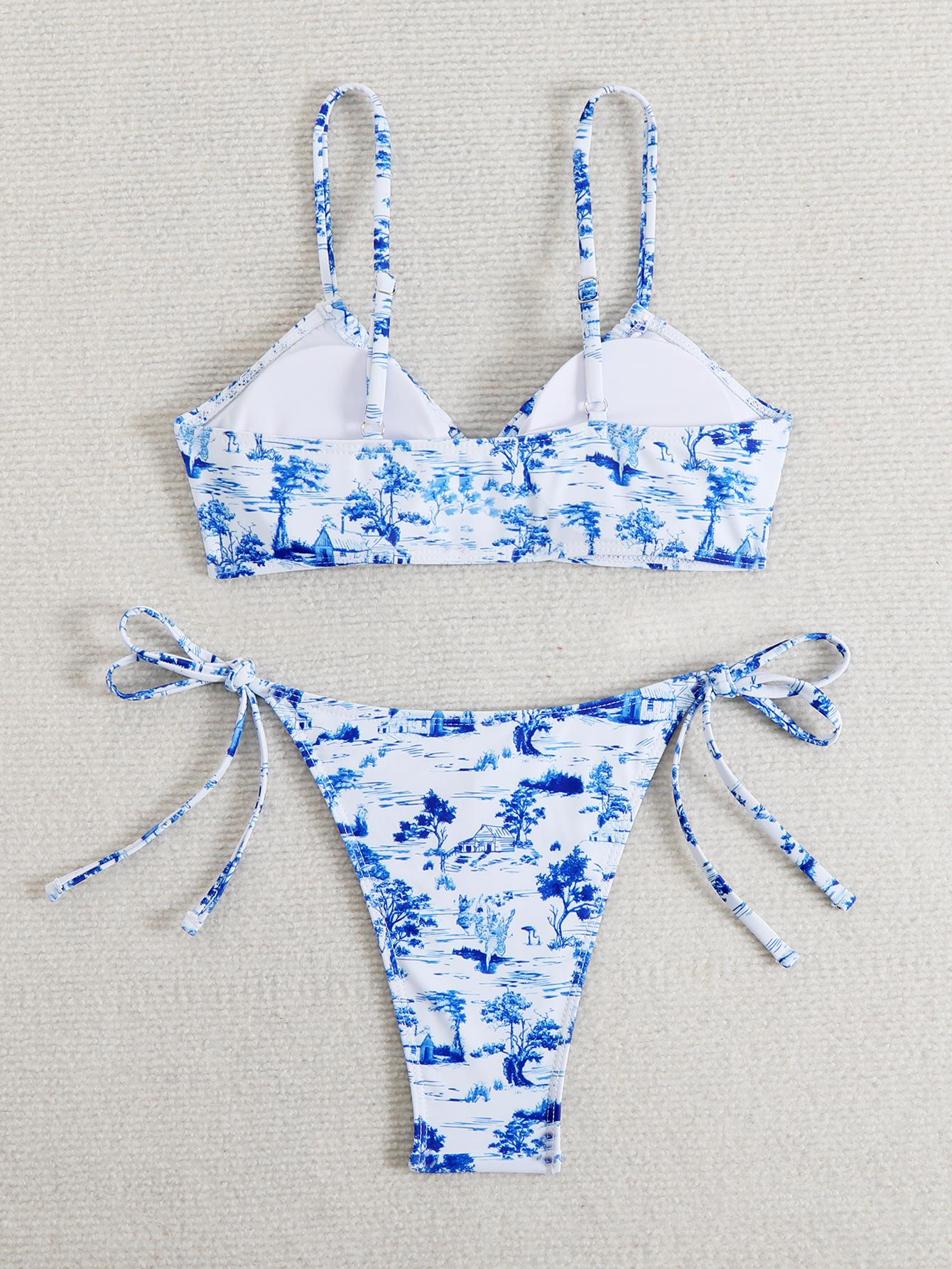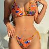 Traje de baño europeo y americano transfronterizo 2025 nuevo Traje de baño para mujer Estilo Ins Sexy con cordones Estampado Traje de baño bikini Bikini en stock