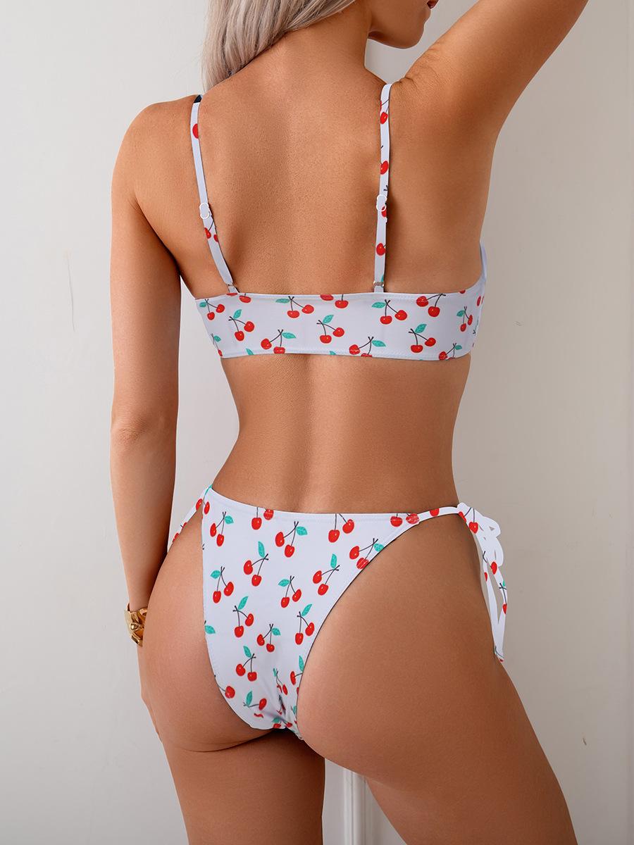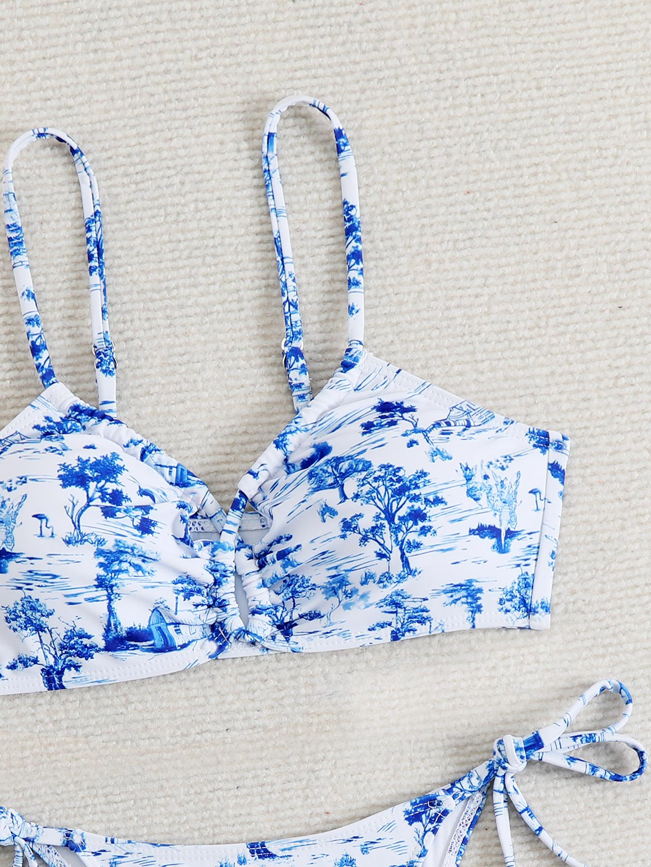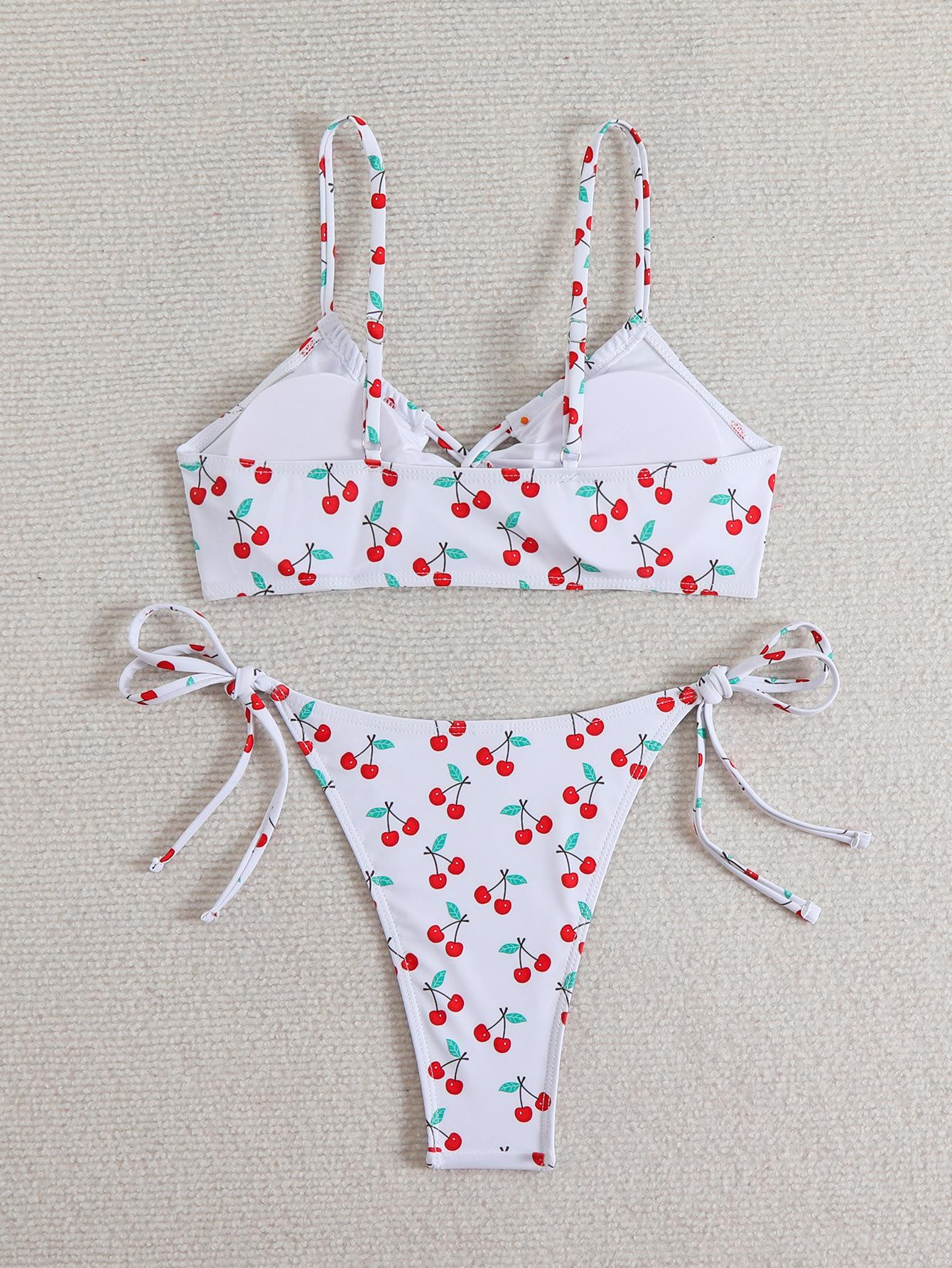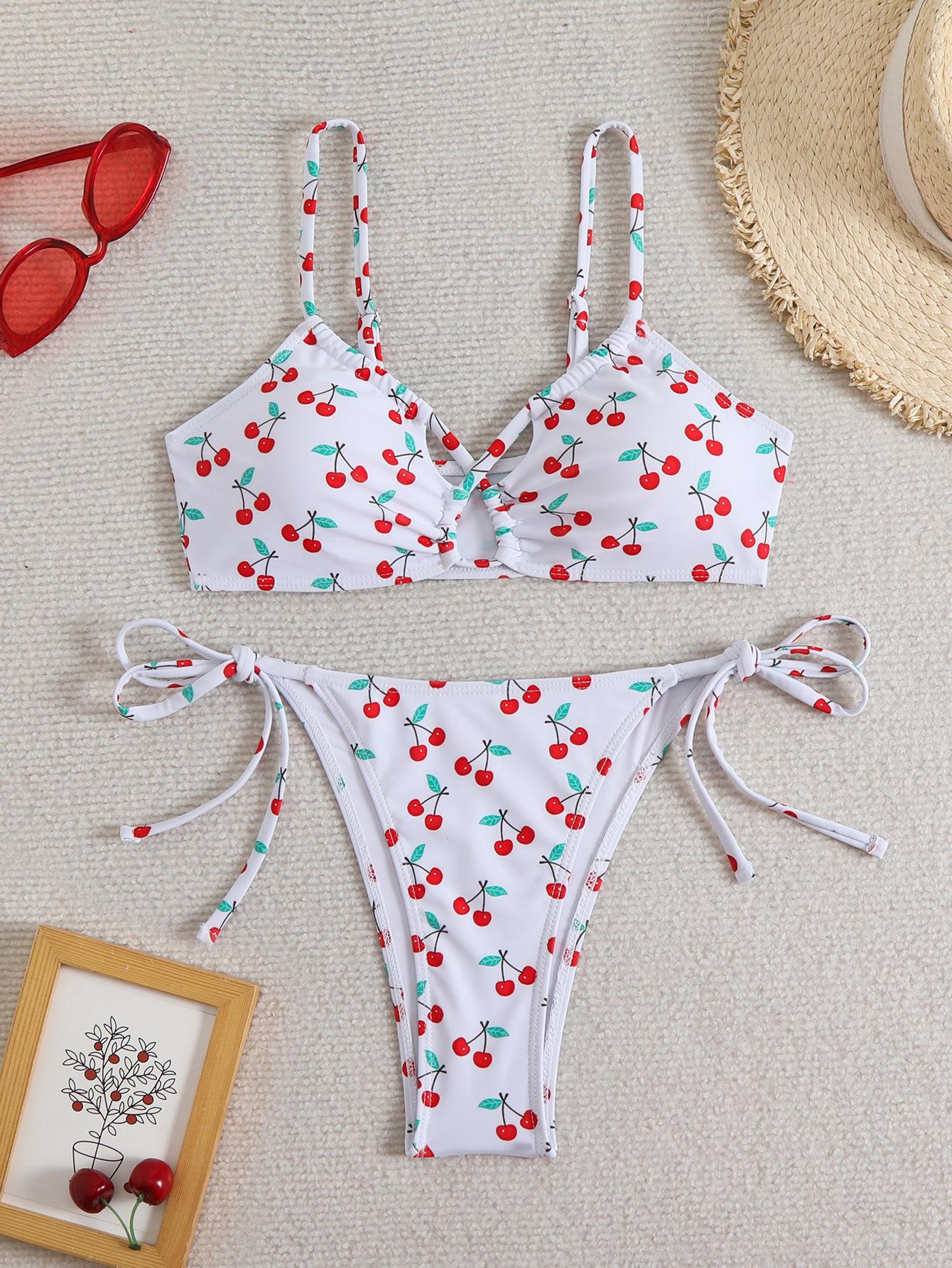 Traje de baño europeo y americano transfronterizo 2025 nuevo Traje de baño para mujer Estilo Ins Sexy con cordones Estampado Traje de baño bikini Bikini en stock