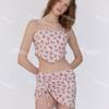 Nuevo traje de baño de tres piezas estilo americano retro a rayas, ajustado, sexy, con lazo, para playa, para mujer