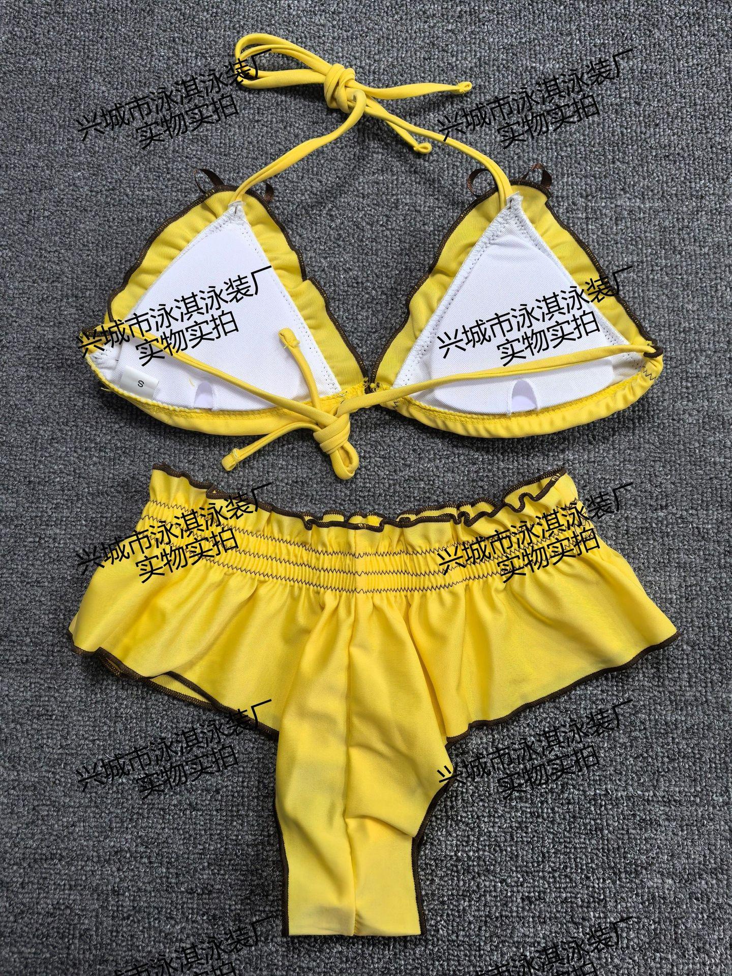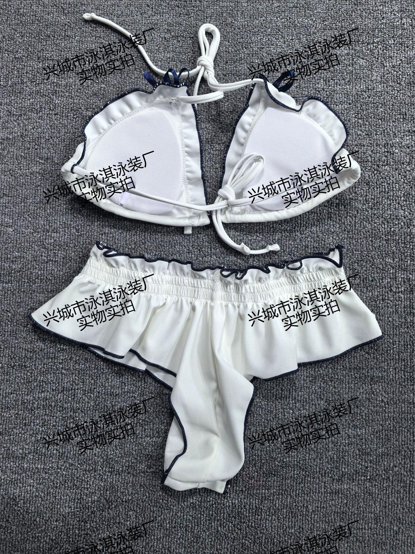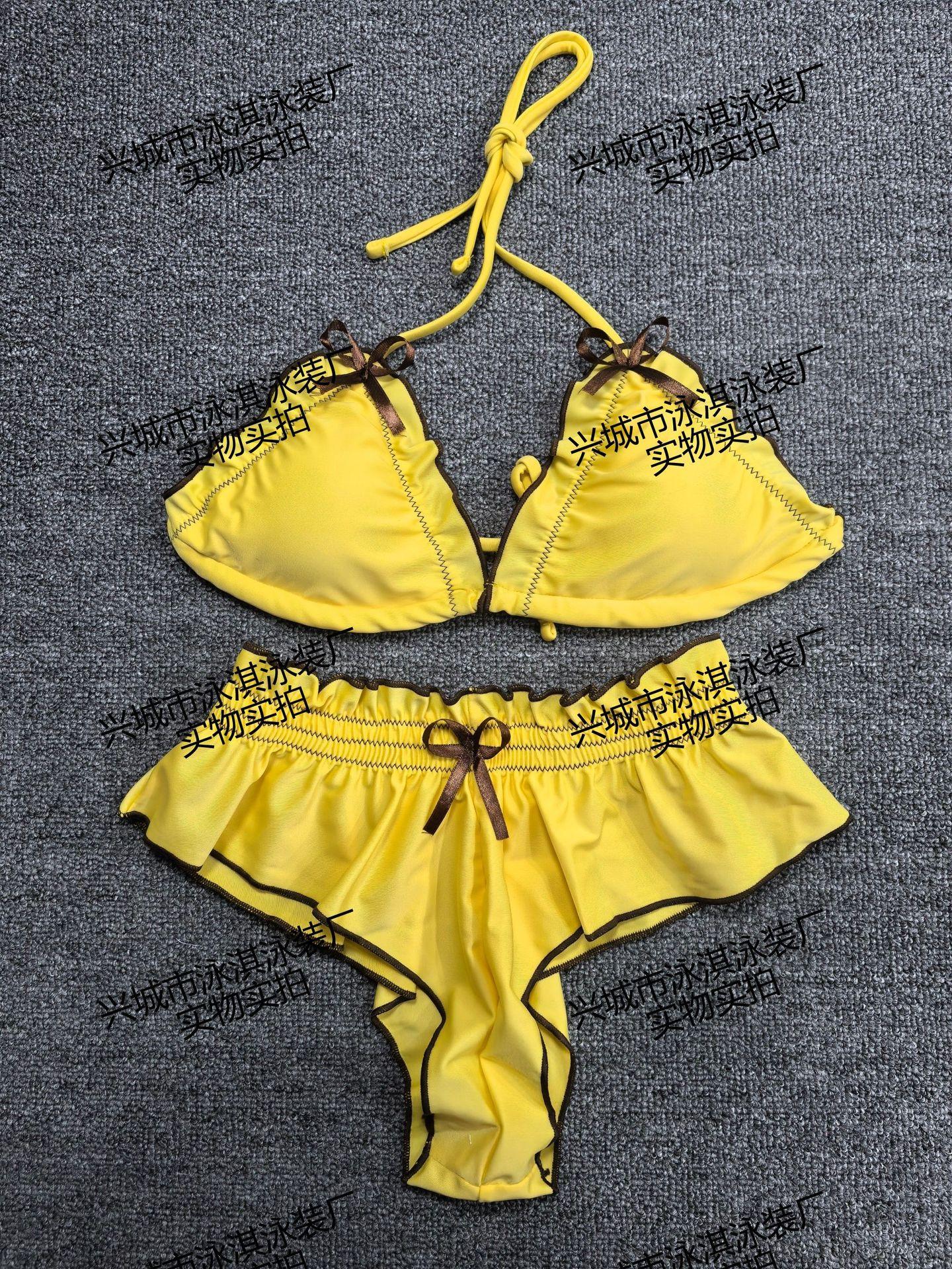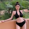 Traje de baño para mujer, nuevo, dulce y sexy, bikini de tres piezas, conjunto de traje de baño con abertura en el pecho pequeño para vacaciones en la playa, estilo aguas termales
