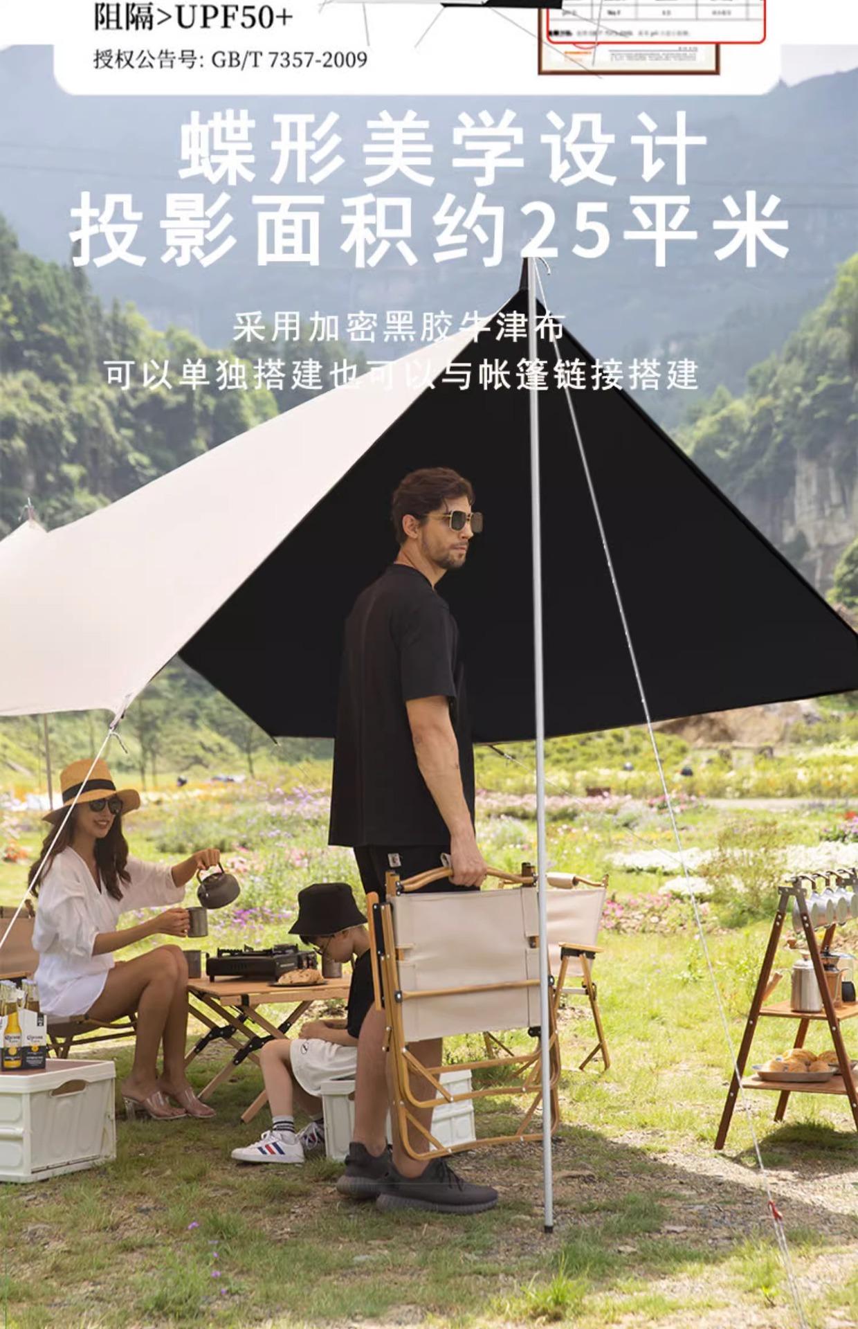 Carpa cenador de goma negra toldo para camping al aire libre portátil engrosado protección solar revestimiento impermeable cenador octogonal de mariposa