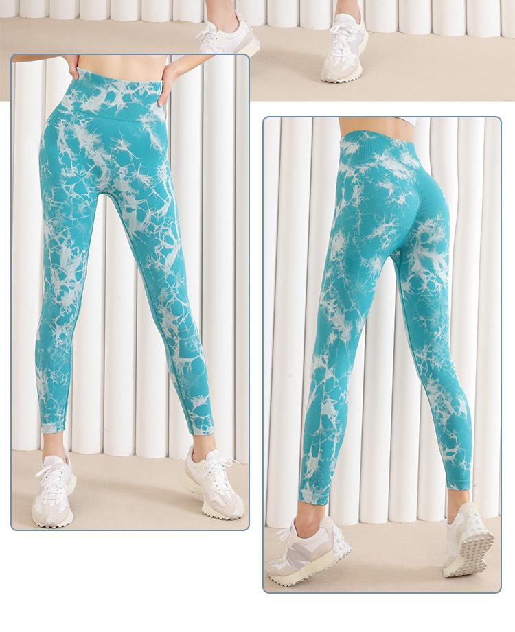 Pantalones de Yoga Transfronterizos Tie-Dye Cintura Alta Levanta Glúteos Control de Abdomen Leggings Deportivos para Correr Yoga Glúteos de Durazno Pantalones de Fitness Transpirables