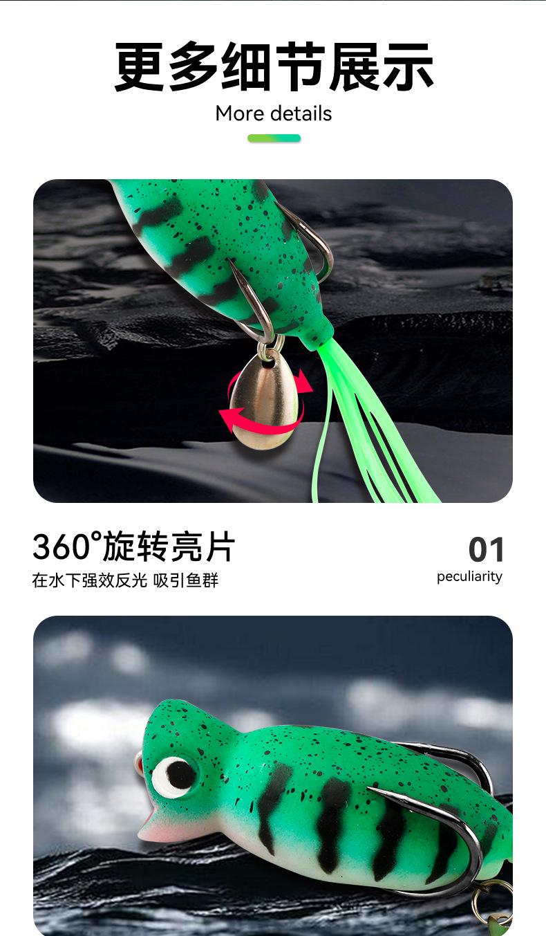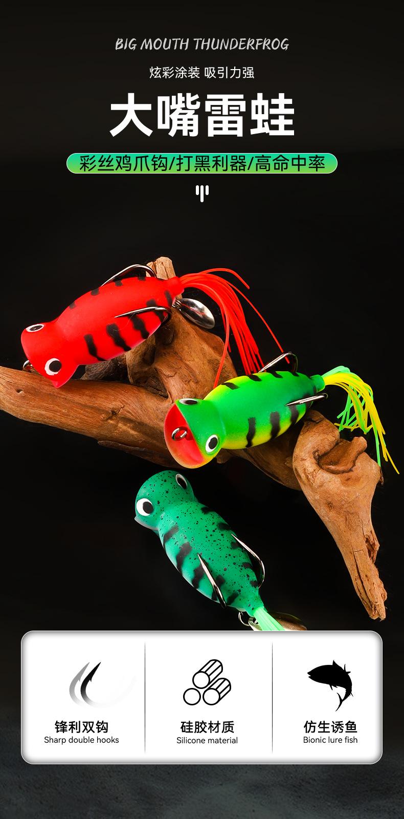 Simulación Thunderfrog Black Fish con cebo ancho, anzuelo doble, lentejuelas de reposición, Thunderfrog Black, cebo falso, rana de agua de boca grande