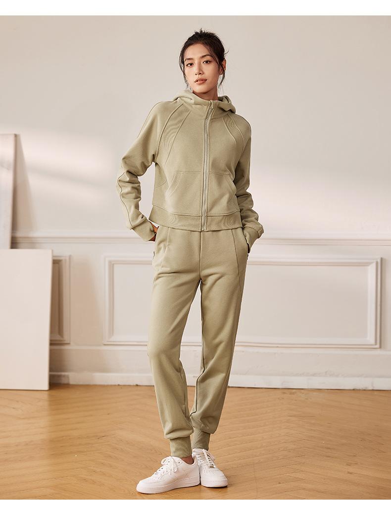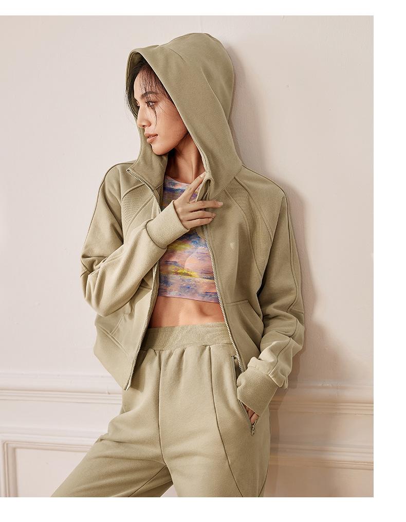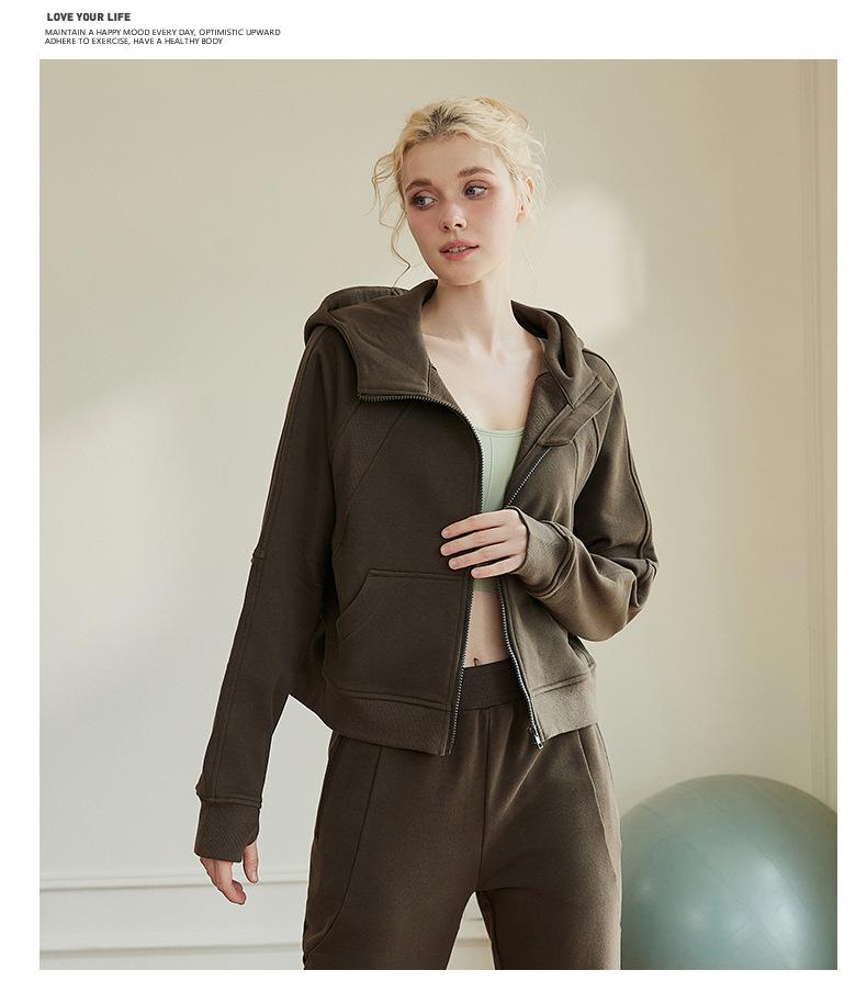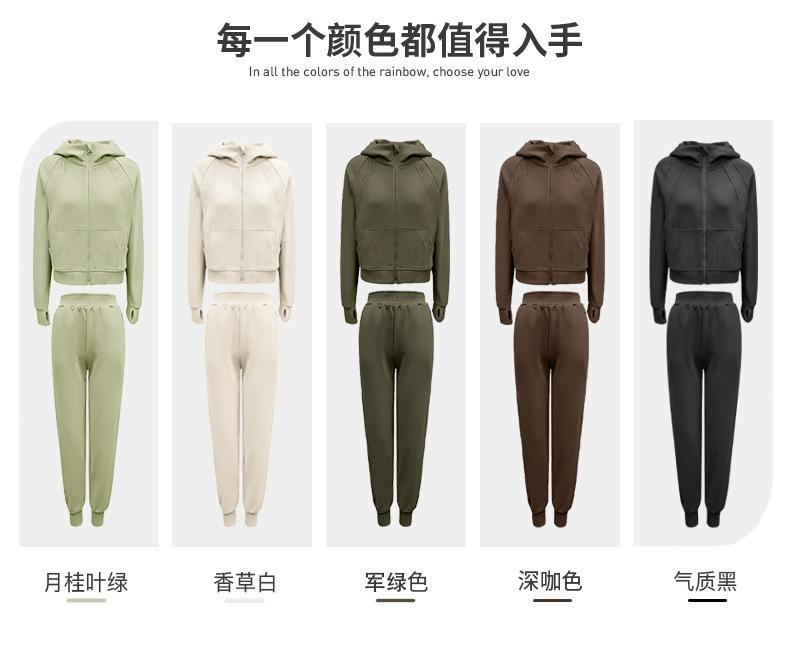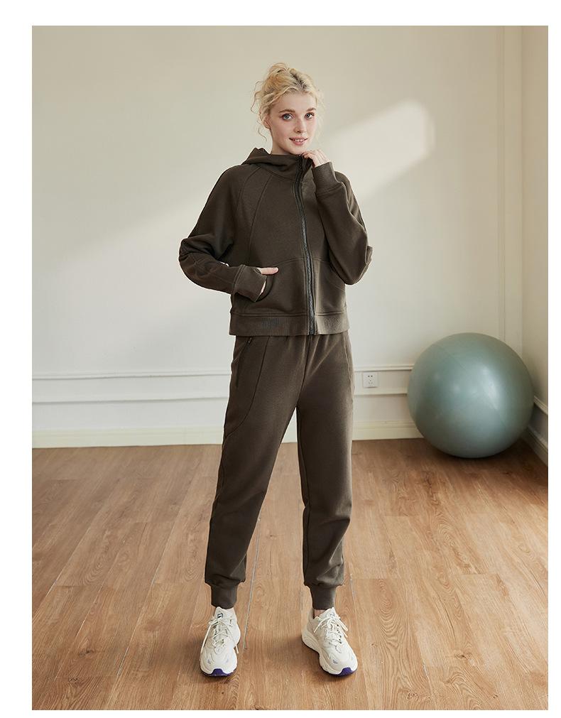Traje de Yoga para Mujer, Nuevo Estilo de Otoño e Invierno, Chaqueta Holgada con Capucha y Cremallera de Manga Larga, Pantalones Deportivos Casuales Elásticos para Fitness al Aire Libre