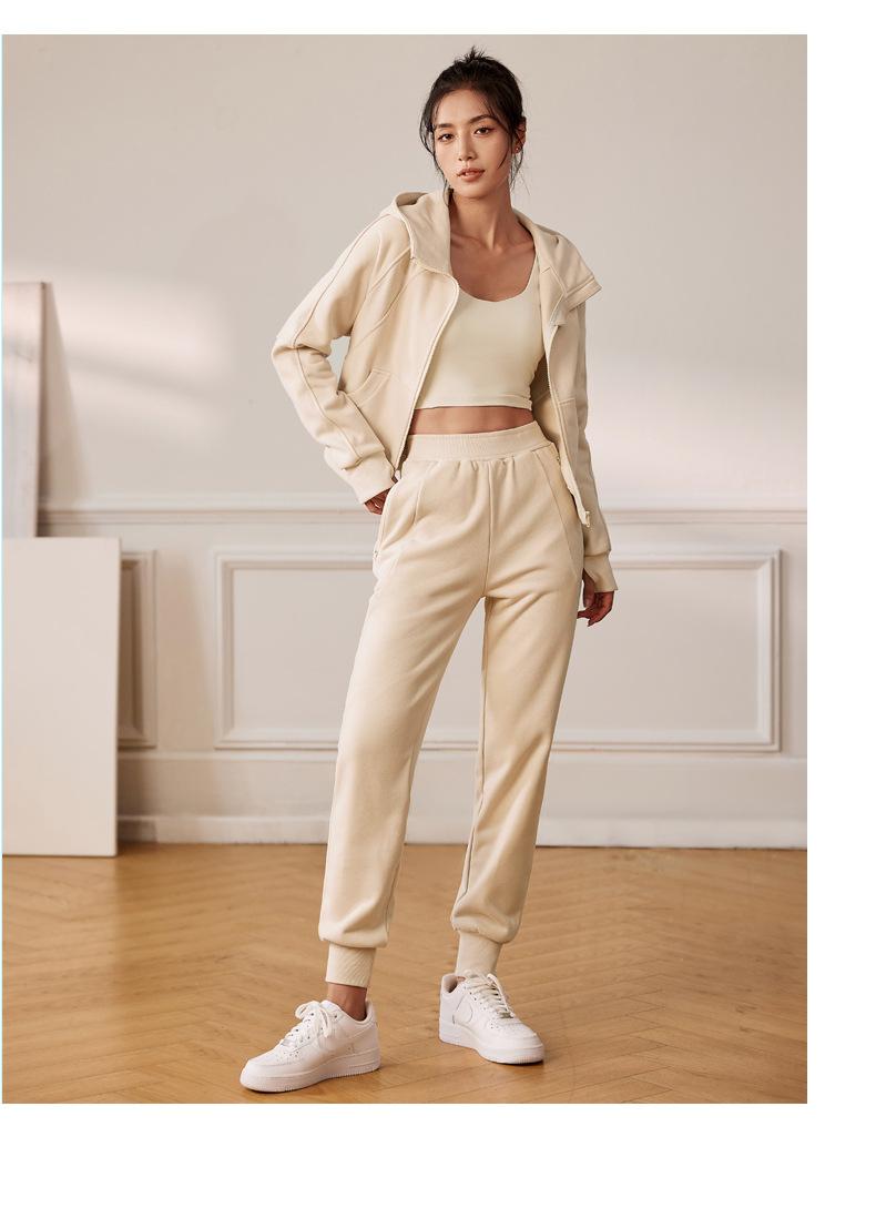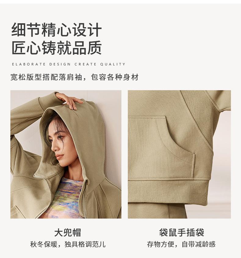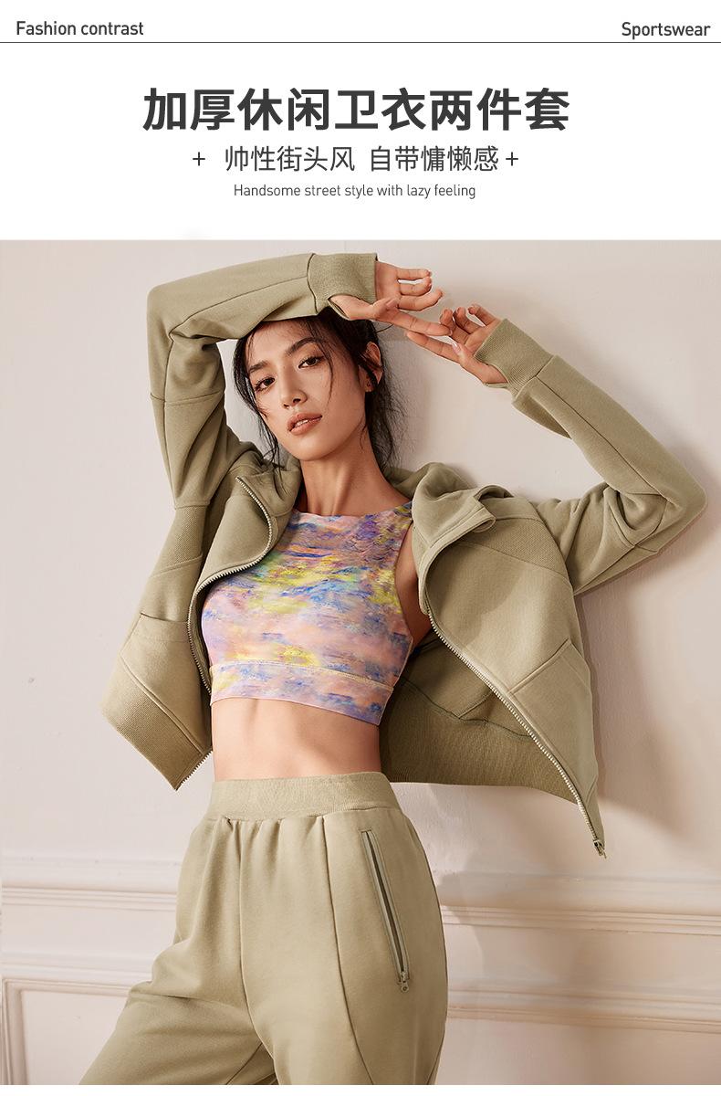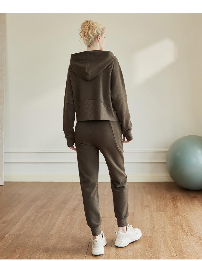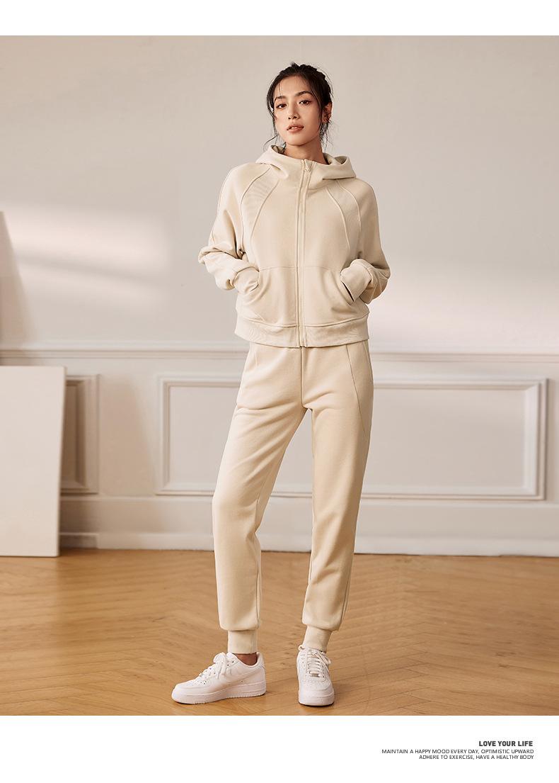 Traje de Yoga para Mujer, Nuevo Estilo de Otoño e Invierno, Chaqueta Holgada con Capucha y Cremallera de Manga Larga, Pantalones Deportivos Casuales Elásticos para Fitness al Aire Libre