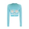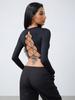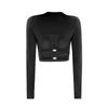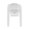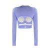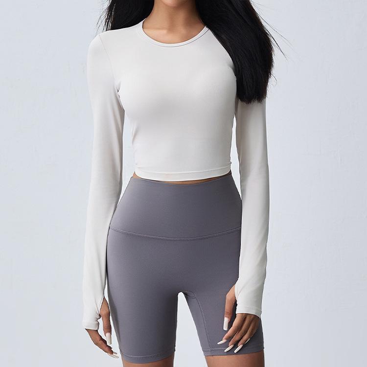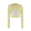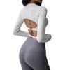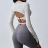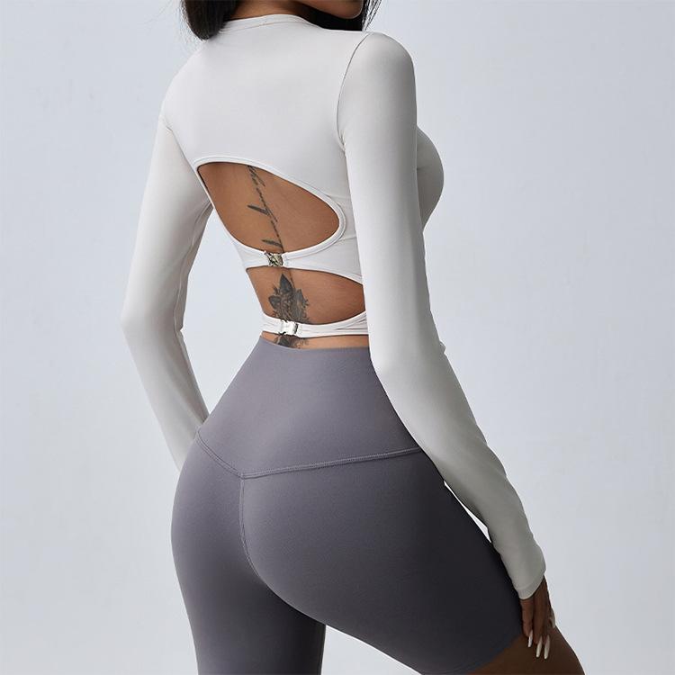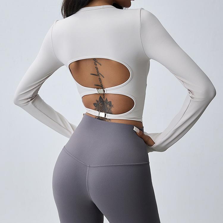 Hermoso traje de yoga de manga larga con huecos en la espalda para mujer, traje de entrenamiento ajustado, top deportivo ajustado de alta elasticidad